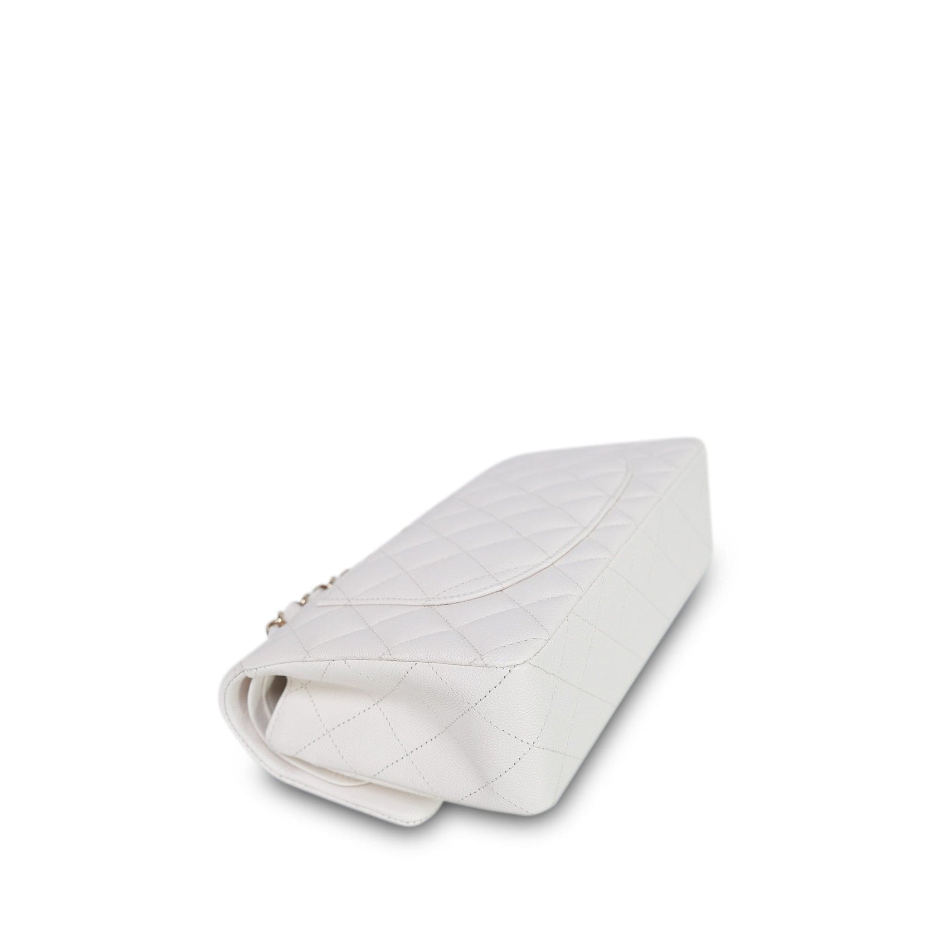 21B White Caviar Quilted Classic Flap Small Light Gold Hardware