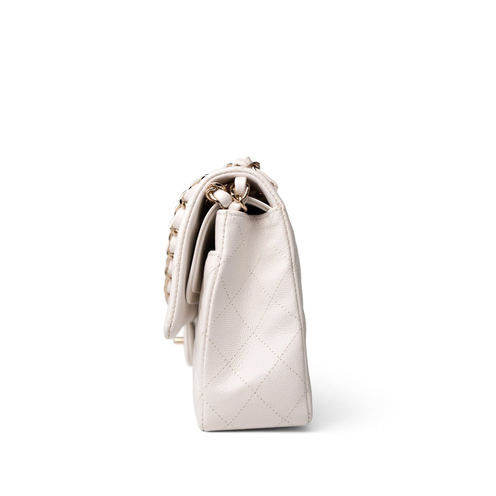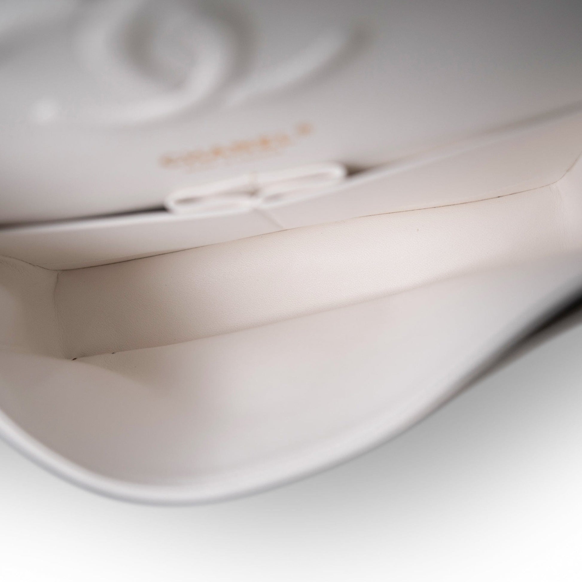 21C White Caviar Quilted Classic Flap Medium Light Gold Hardware