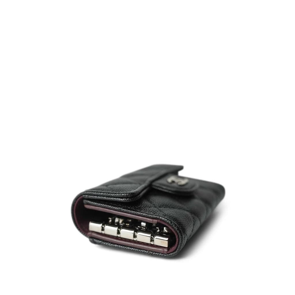 21K Black Caviar Quilted Classic Flap Key Holder Silver Hardware