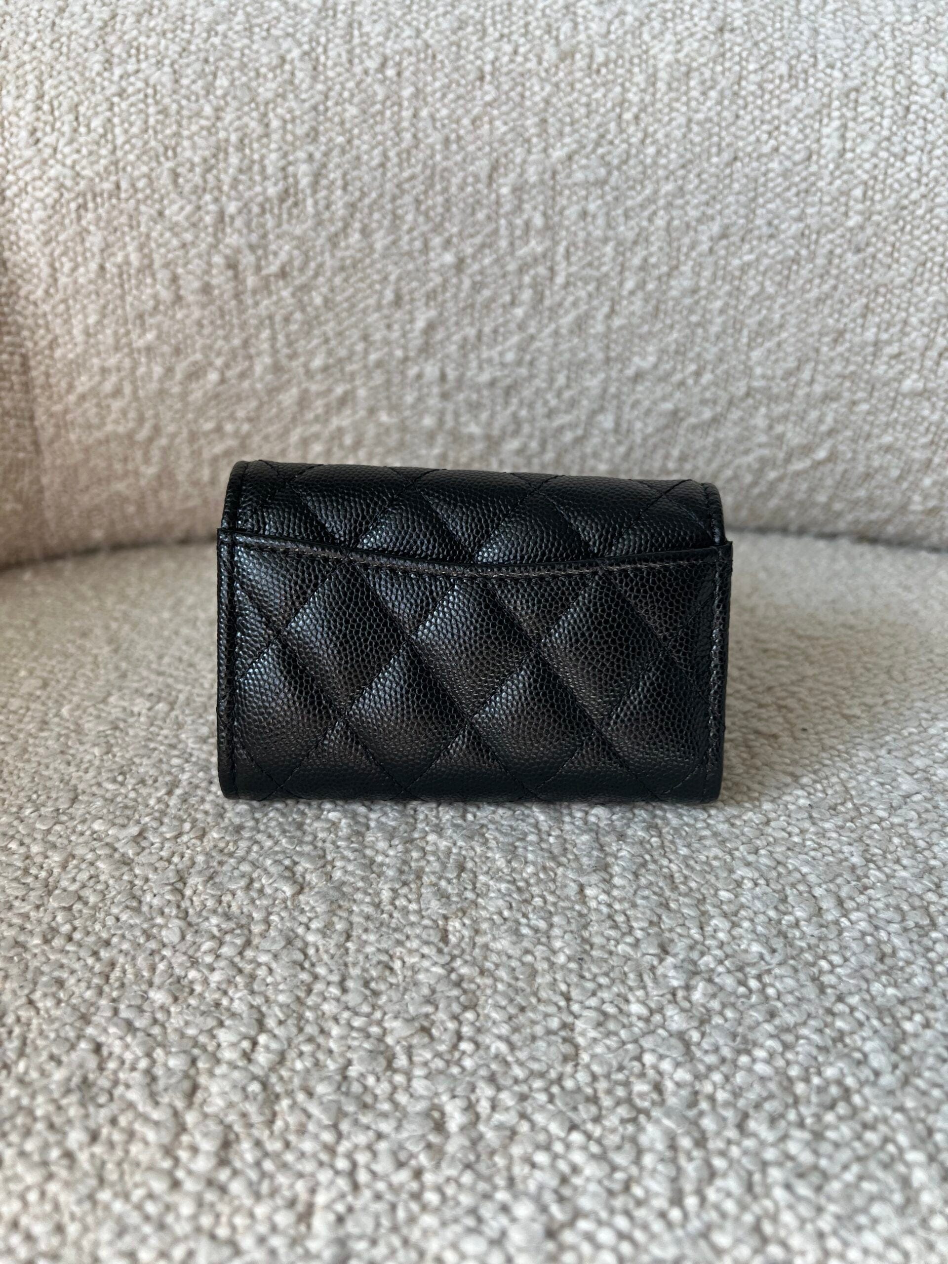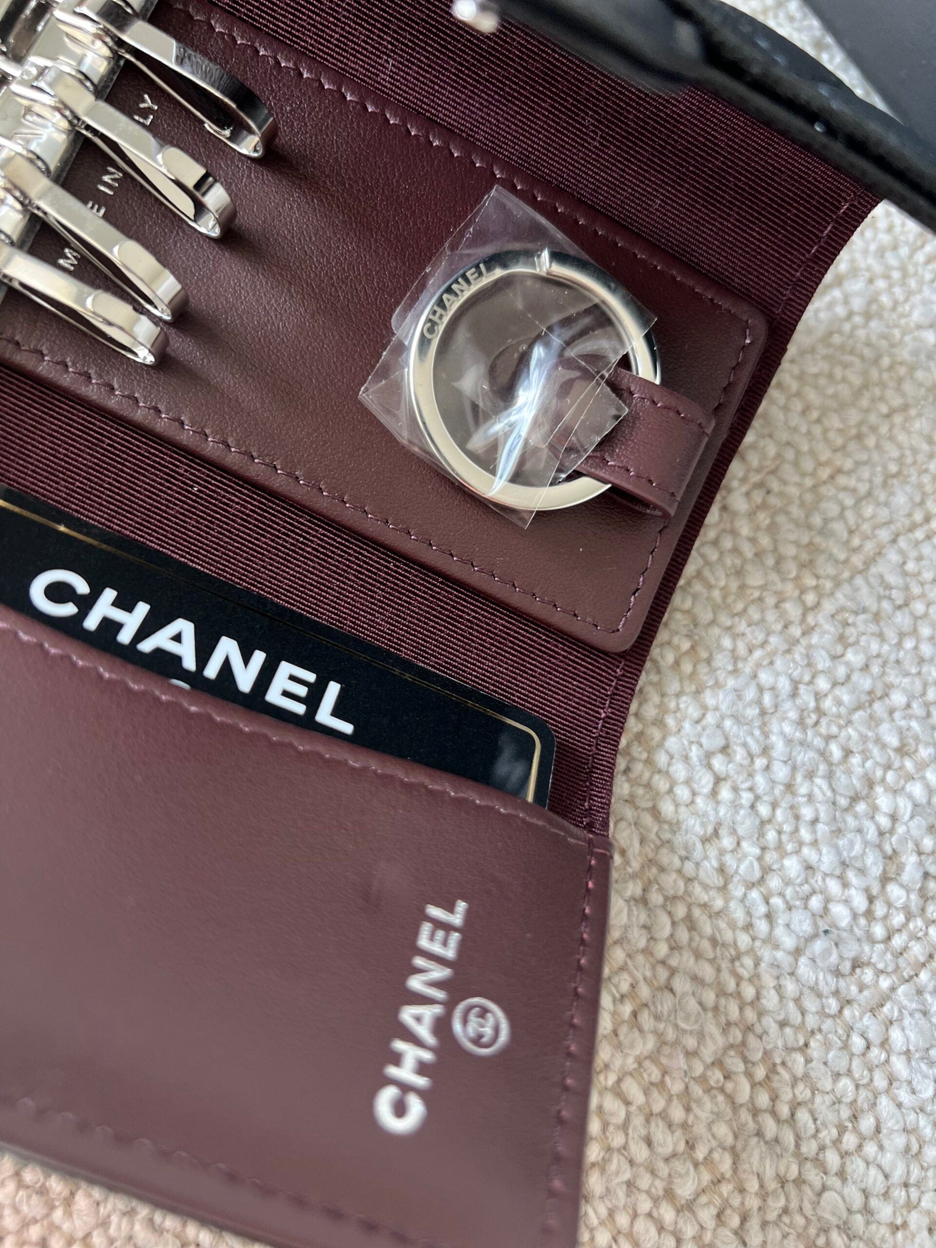 21K Black Caviar Quilted Key Holder Wallet Silver Hardware