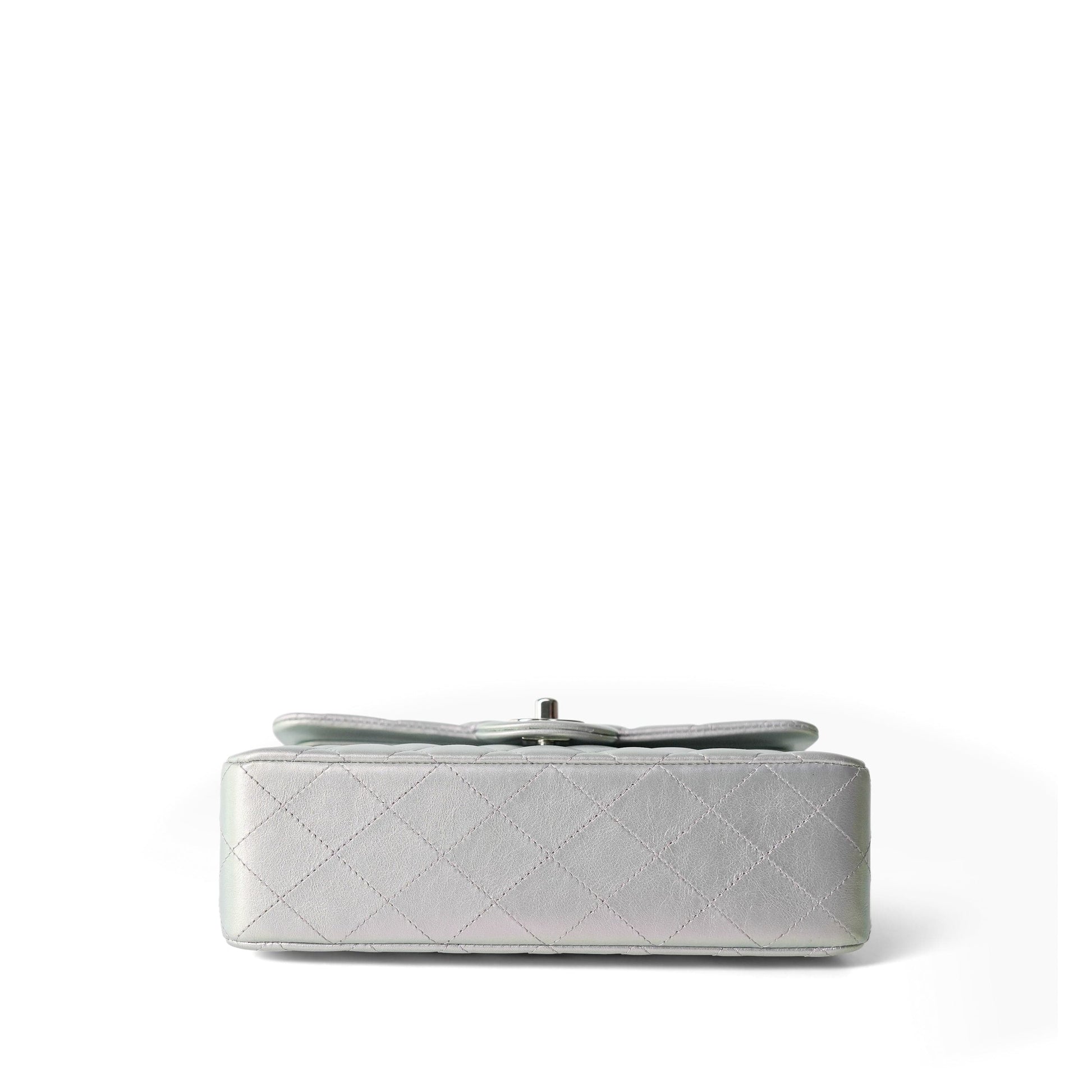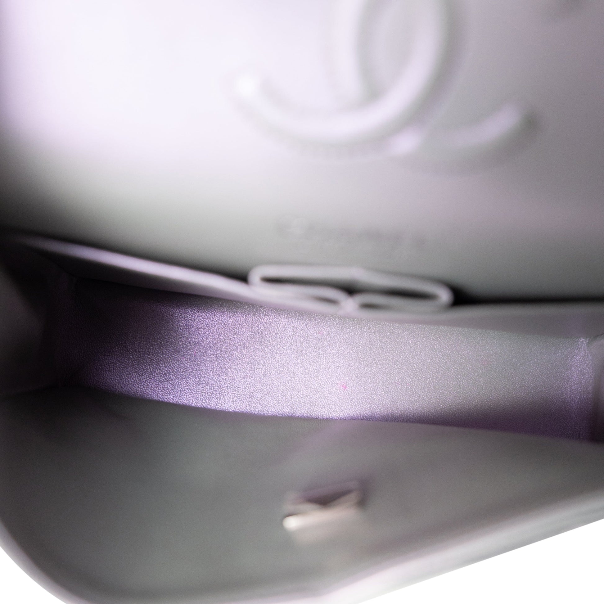 21K Iridescent Pearl Lilac Calfskin Quilted Classic Double Flap Small SHW