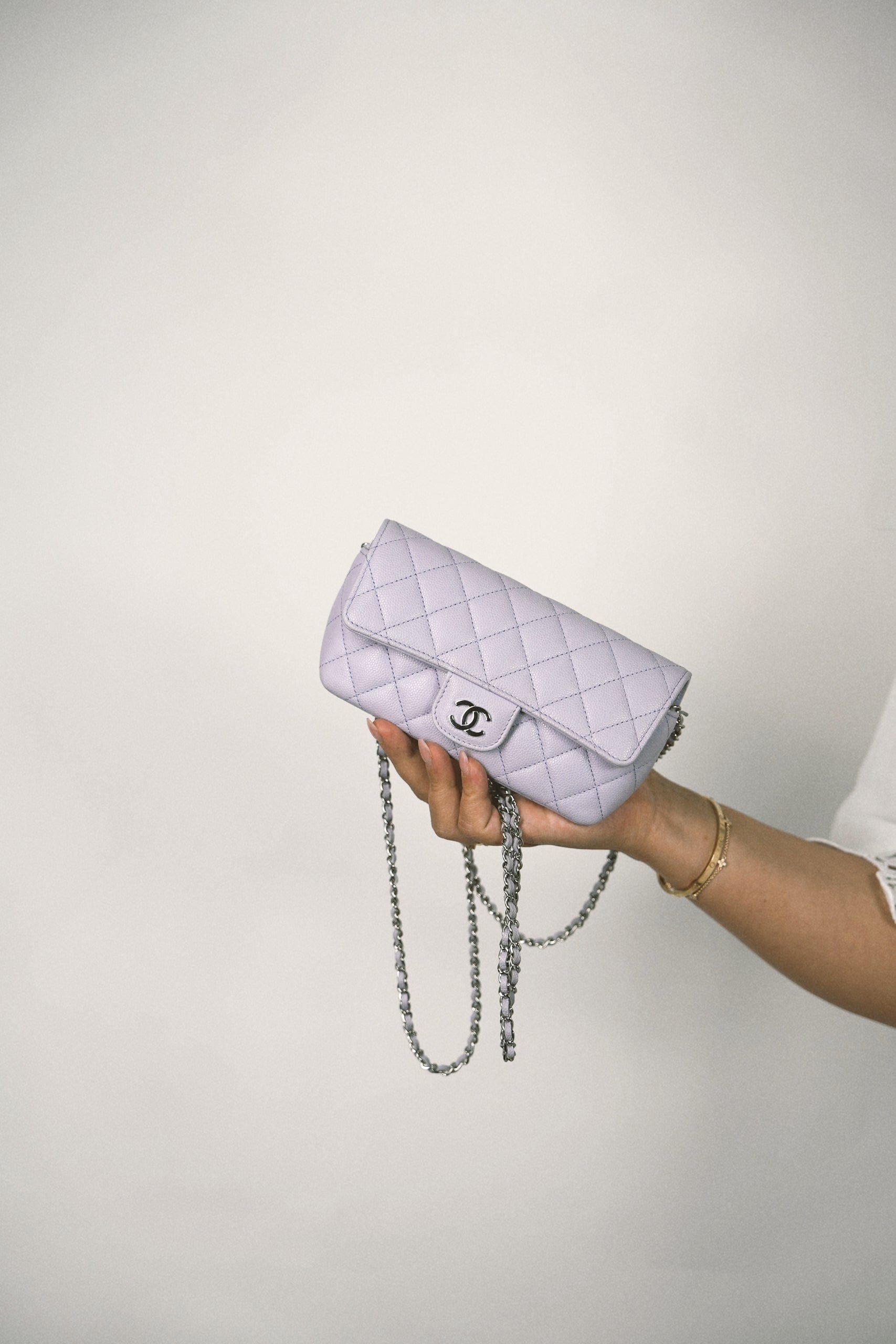 21K Lilac Caviar Quilted Classic Sunglasses Case with Chain SHW