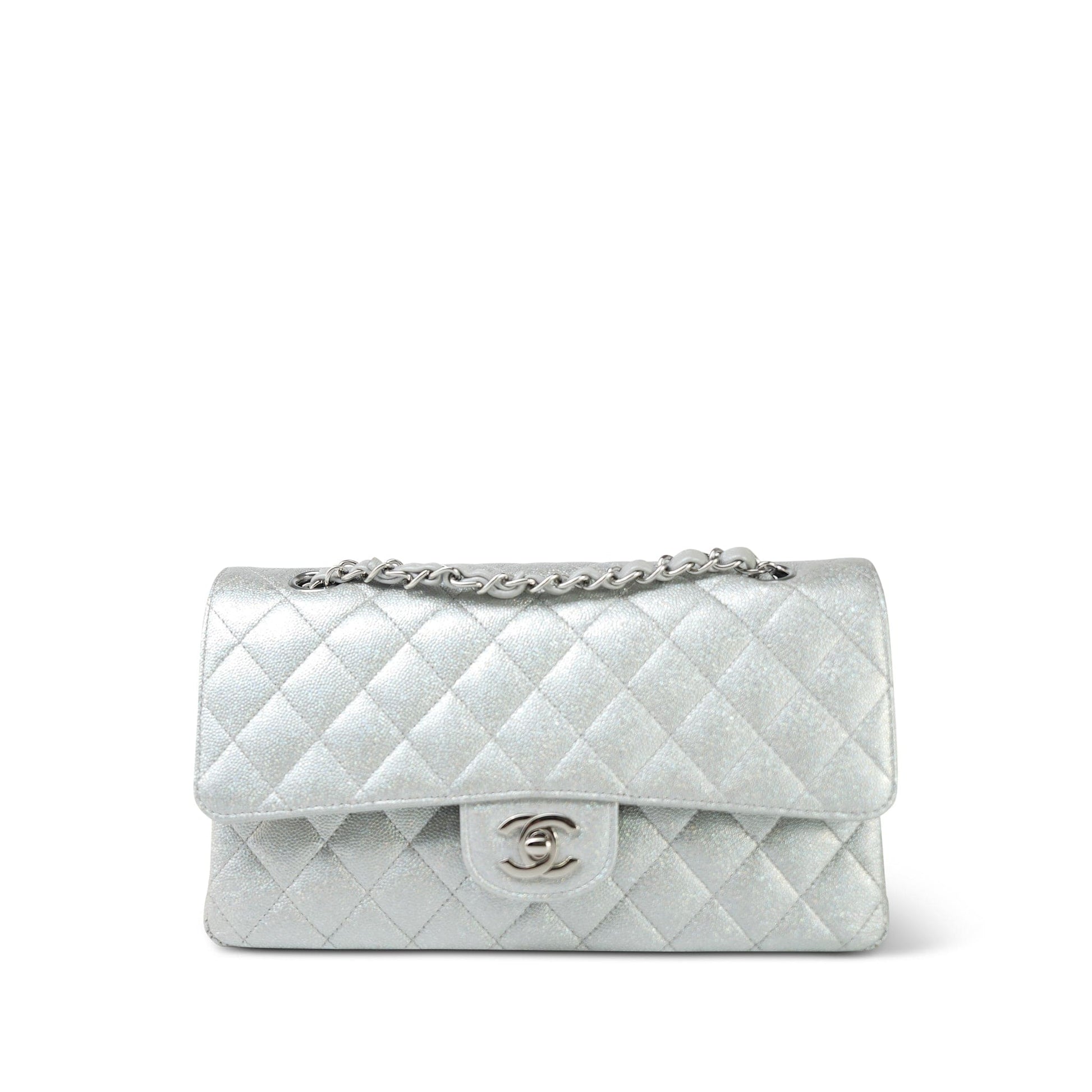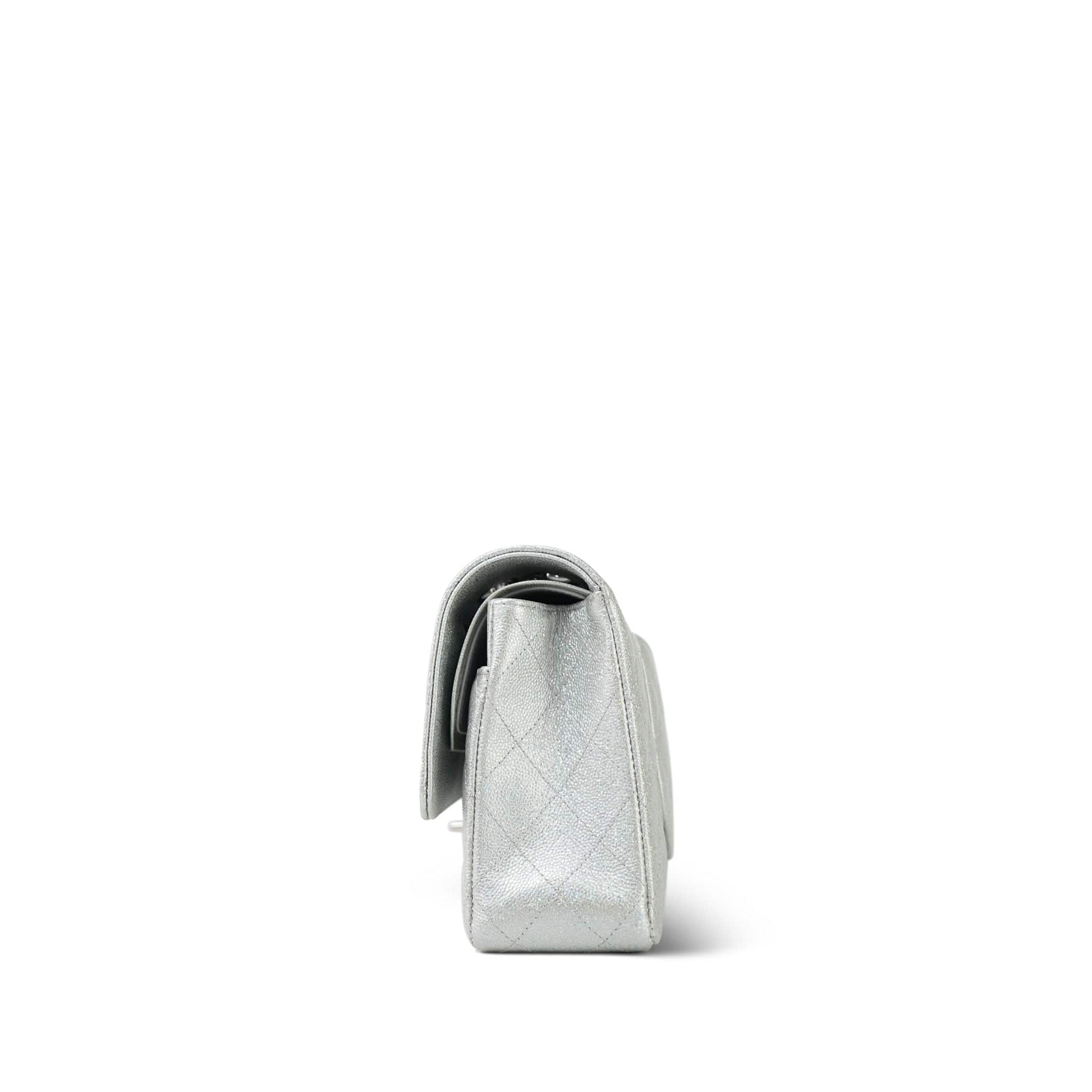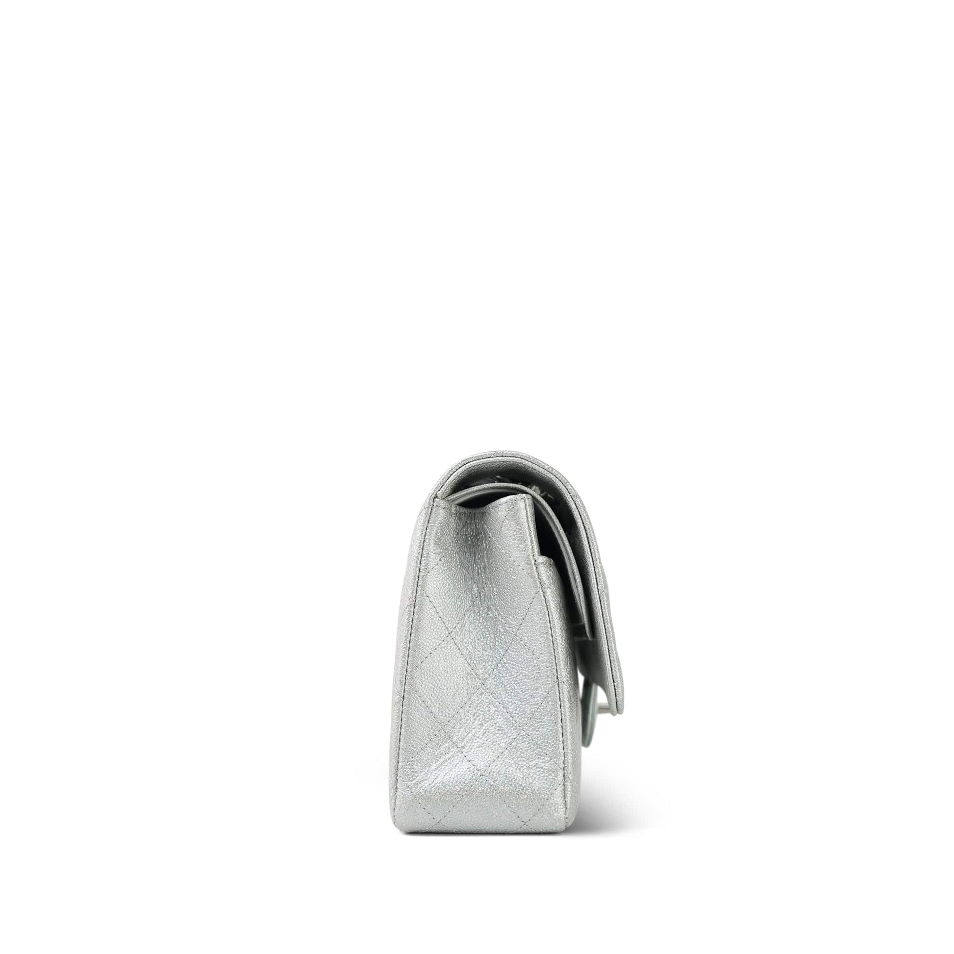 21K Silver Metallic Caviar Quilted Classic Flap Medium Silver Hardware