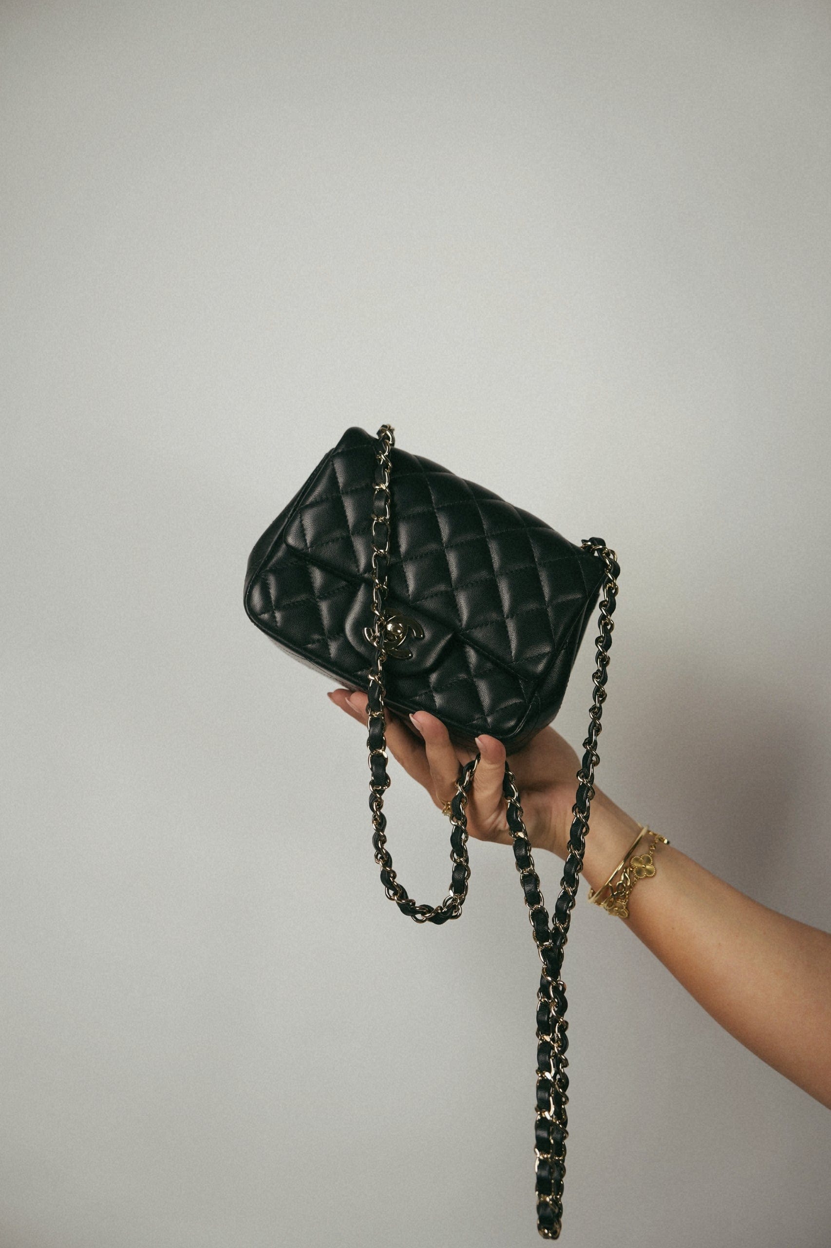 21P Black Lambskin Quilted Mini Square Flap LGHW
