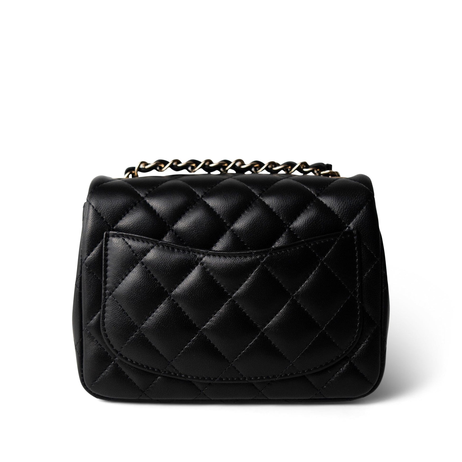 21P Black Lambskin Quilted Mini Square Flap Light Gold Hardware
