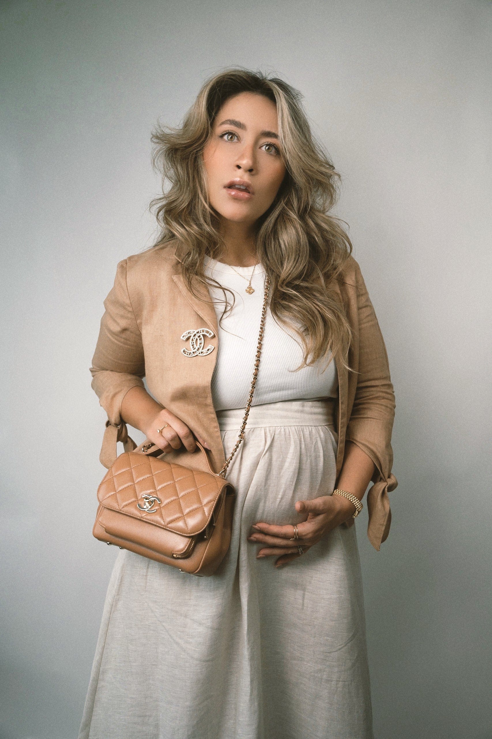 21P Caramel Beige Caviar Quilted Business Affinity Small Flap Light Gold Hardware