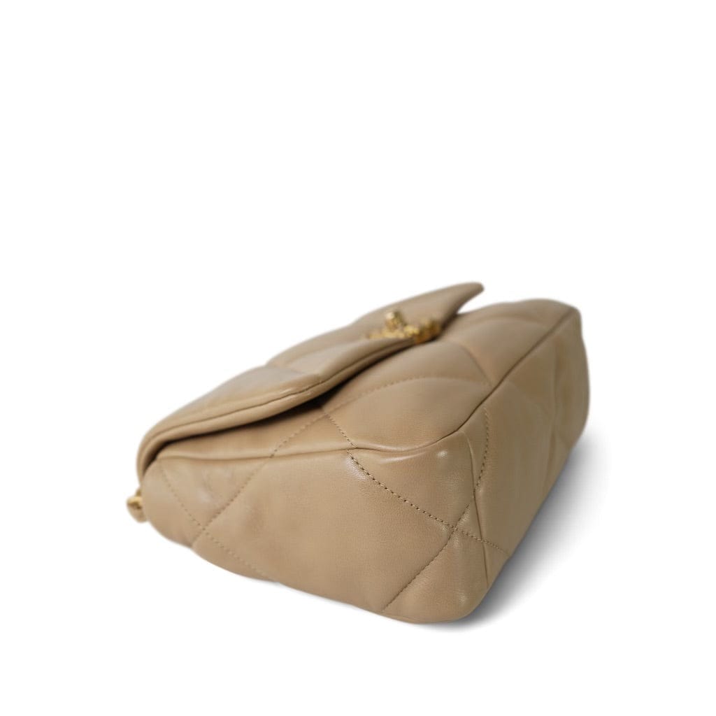 21S Beige Lambskin Quilted 19 Flap Small Mixed Hardware