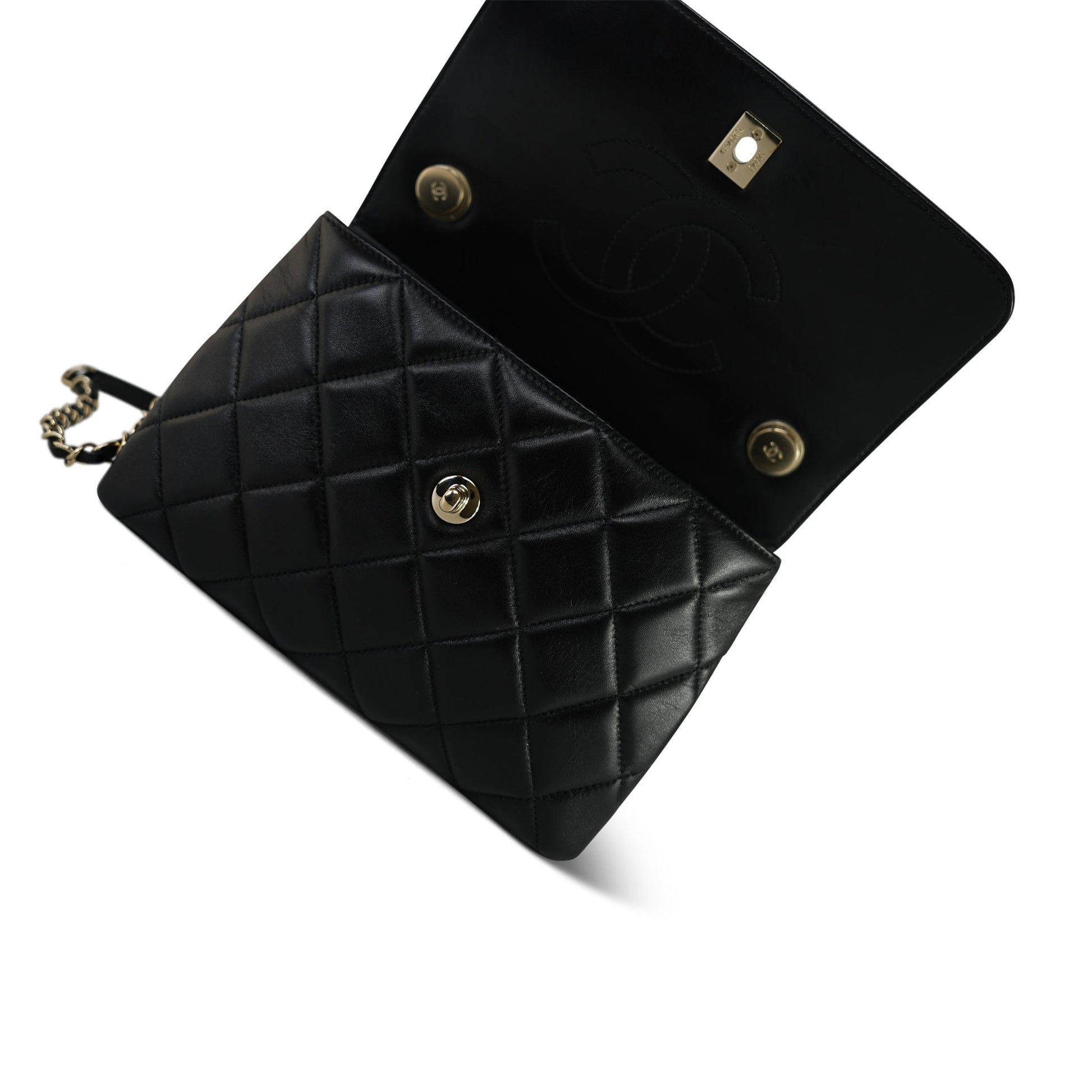 21S Black Lambskin Quilted Small Trendy CC Light Gold Hardware