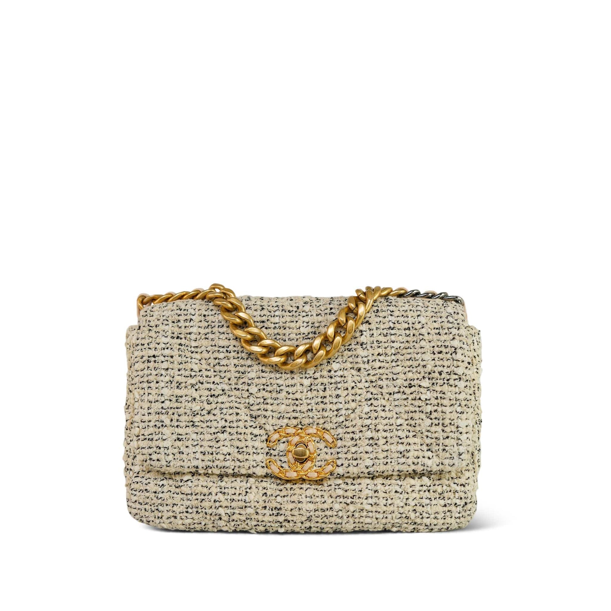 21S Ecru Black & White Tweed Quilted Small 19 Flap MHW