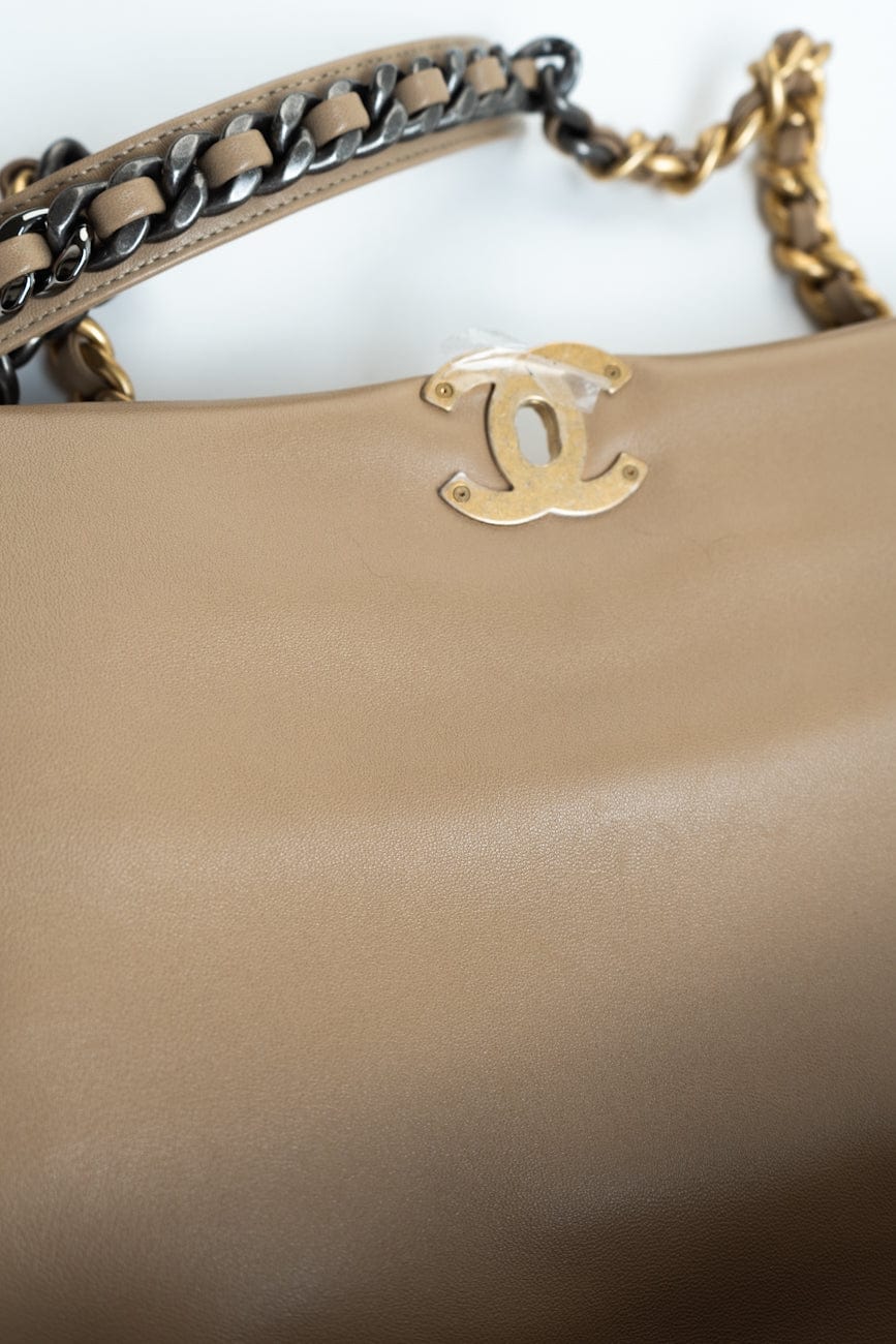 21S Large Beige/Gold Lambskin Quilted 19 Flap Mixed Hardware