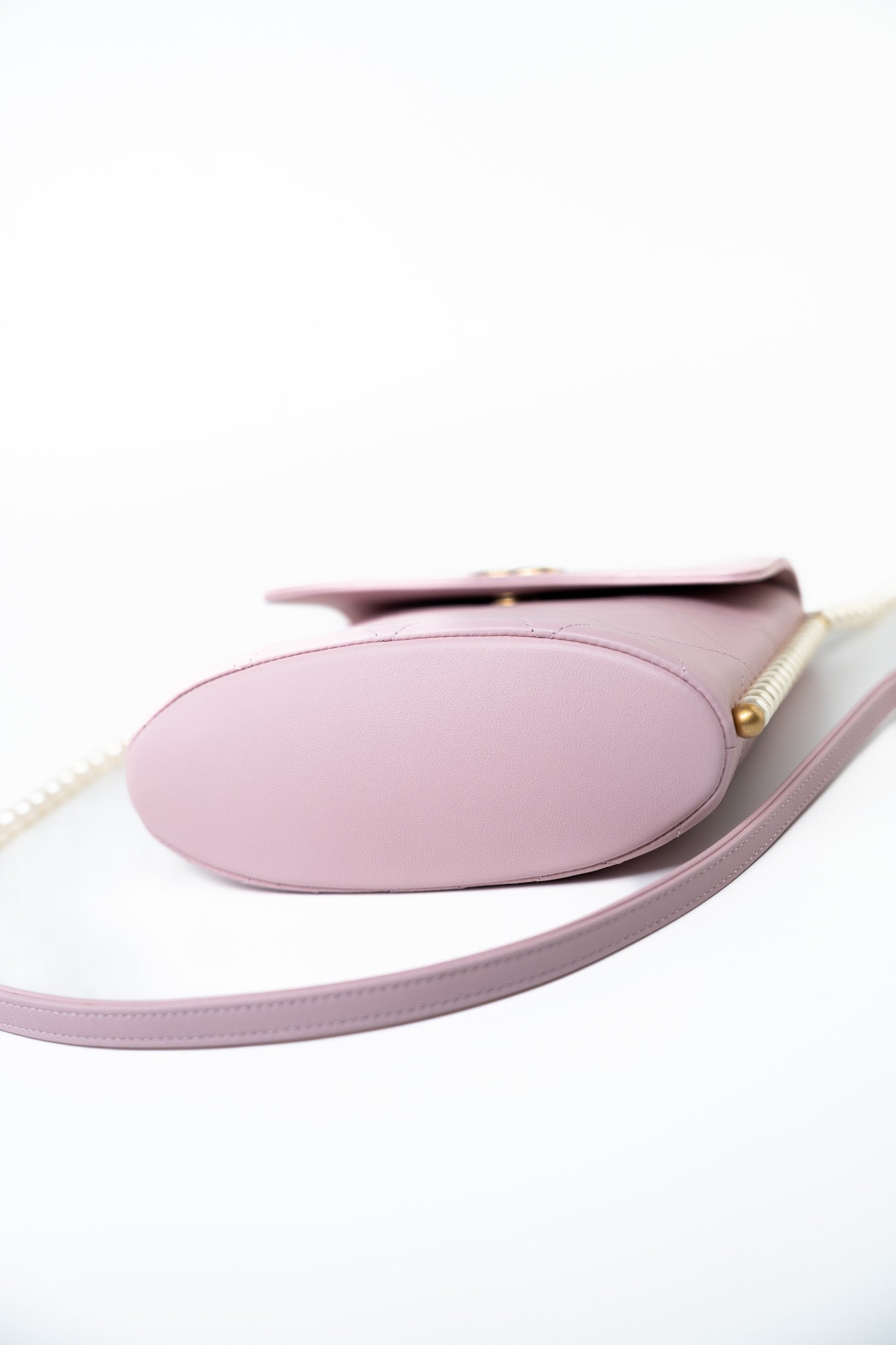 21S Light Pink / Rose Clair Calfskin Quilted All About Pearls Small Hobo Bag