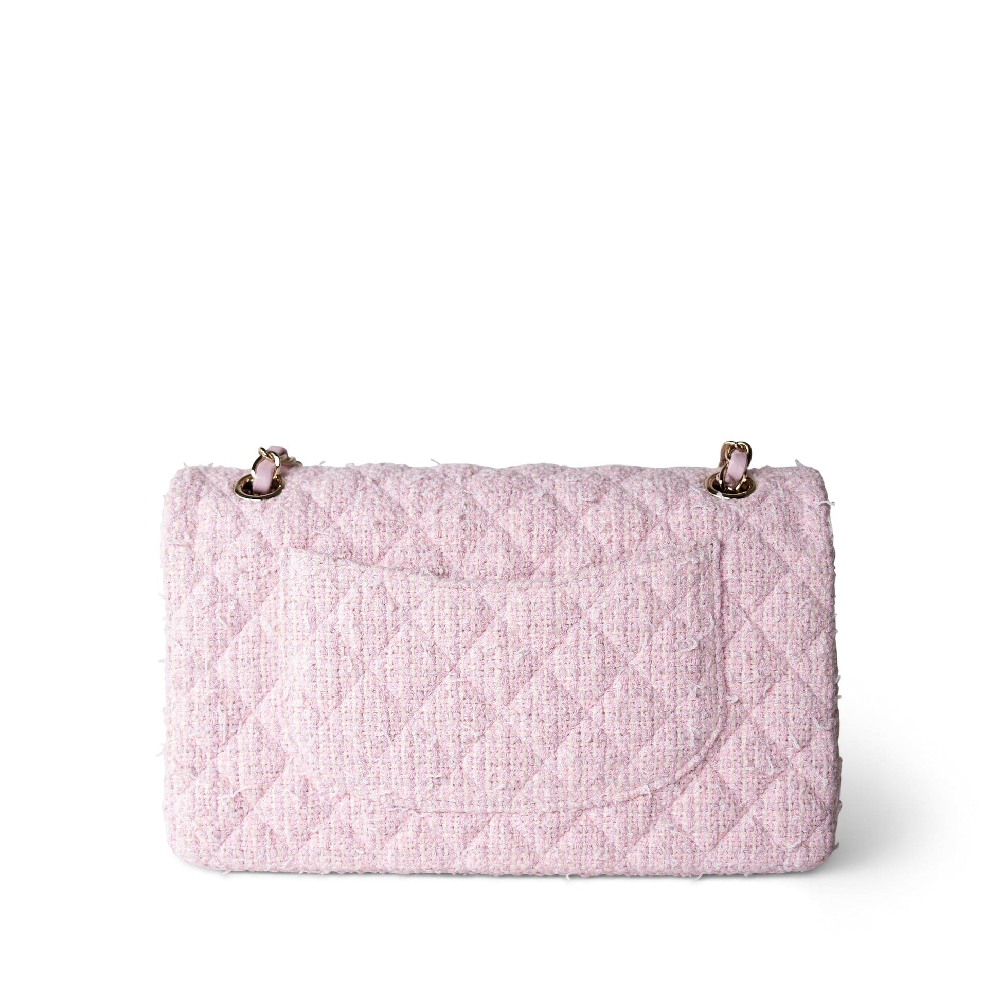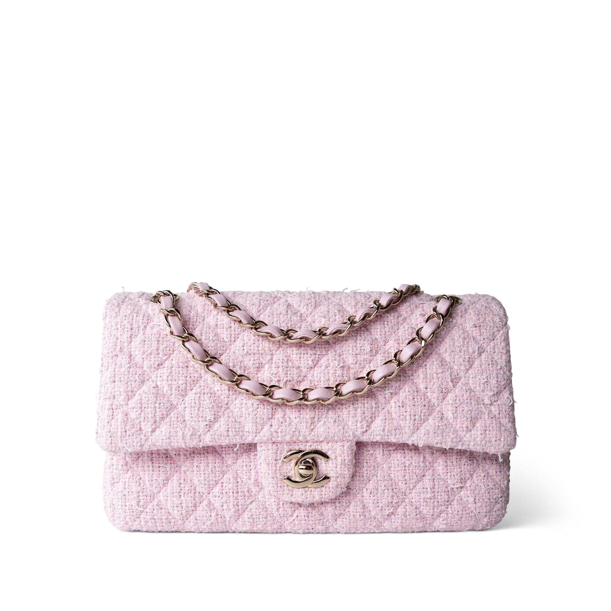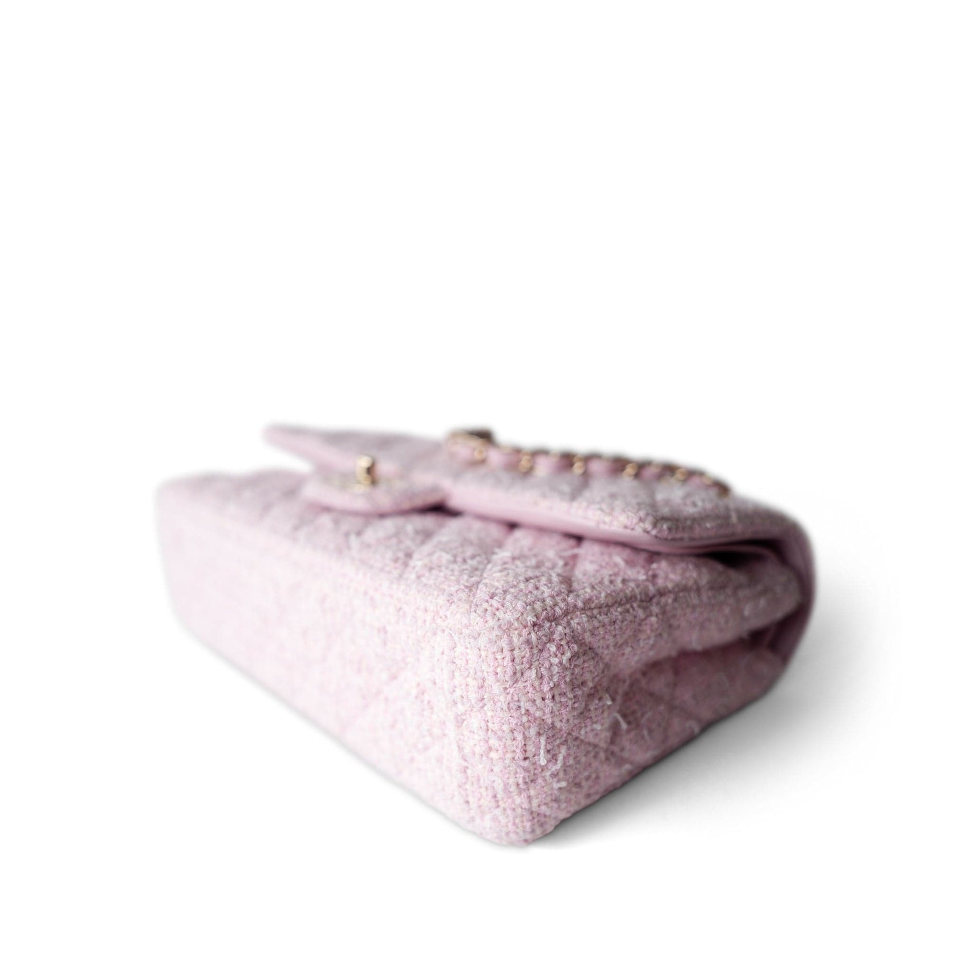 21S Pink Tweed Quilted Classic Flap Medium Light Gold Hardware