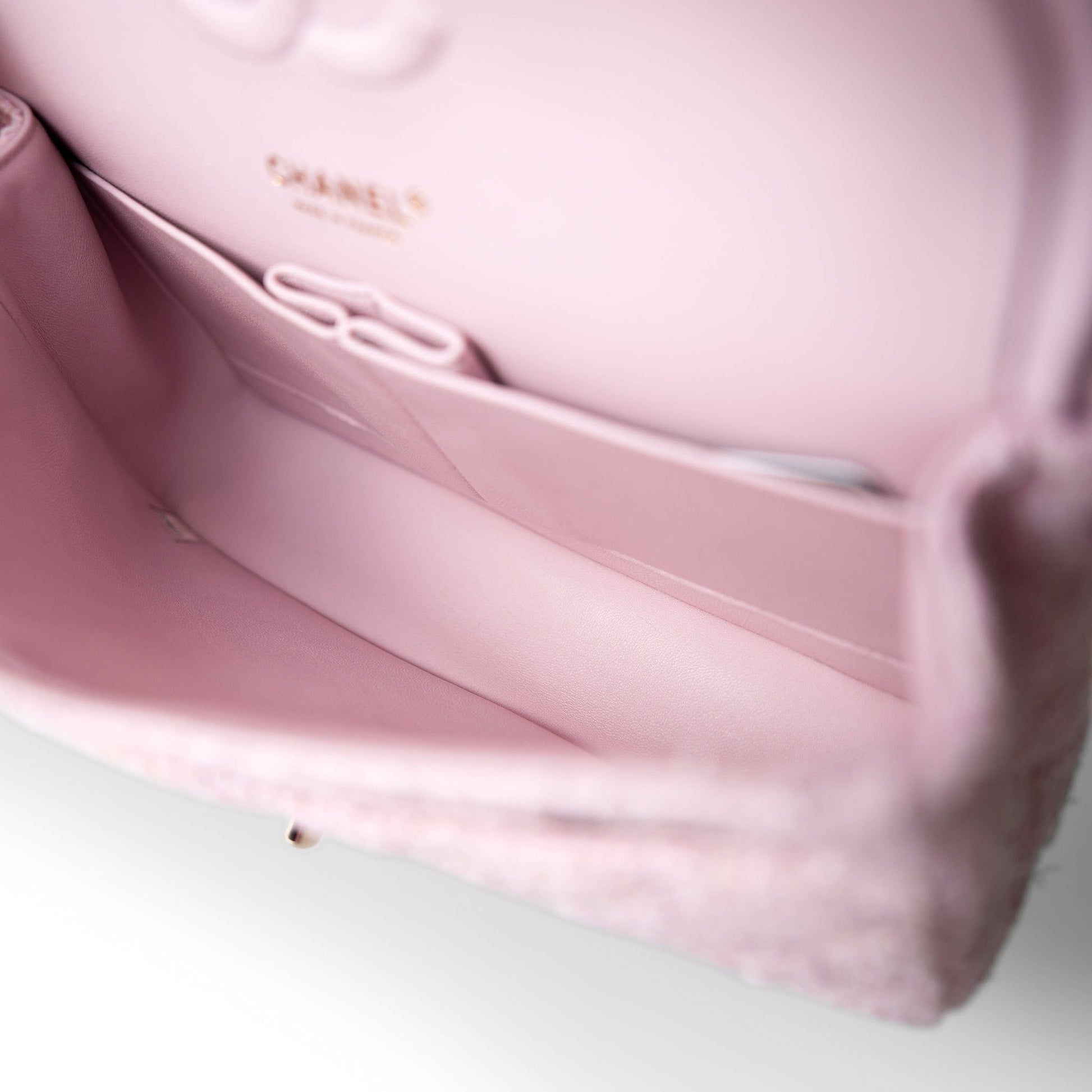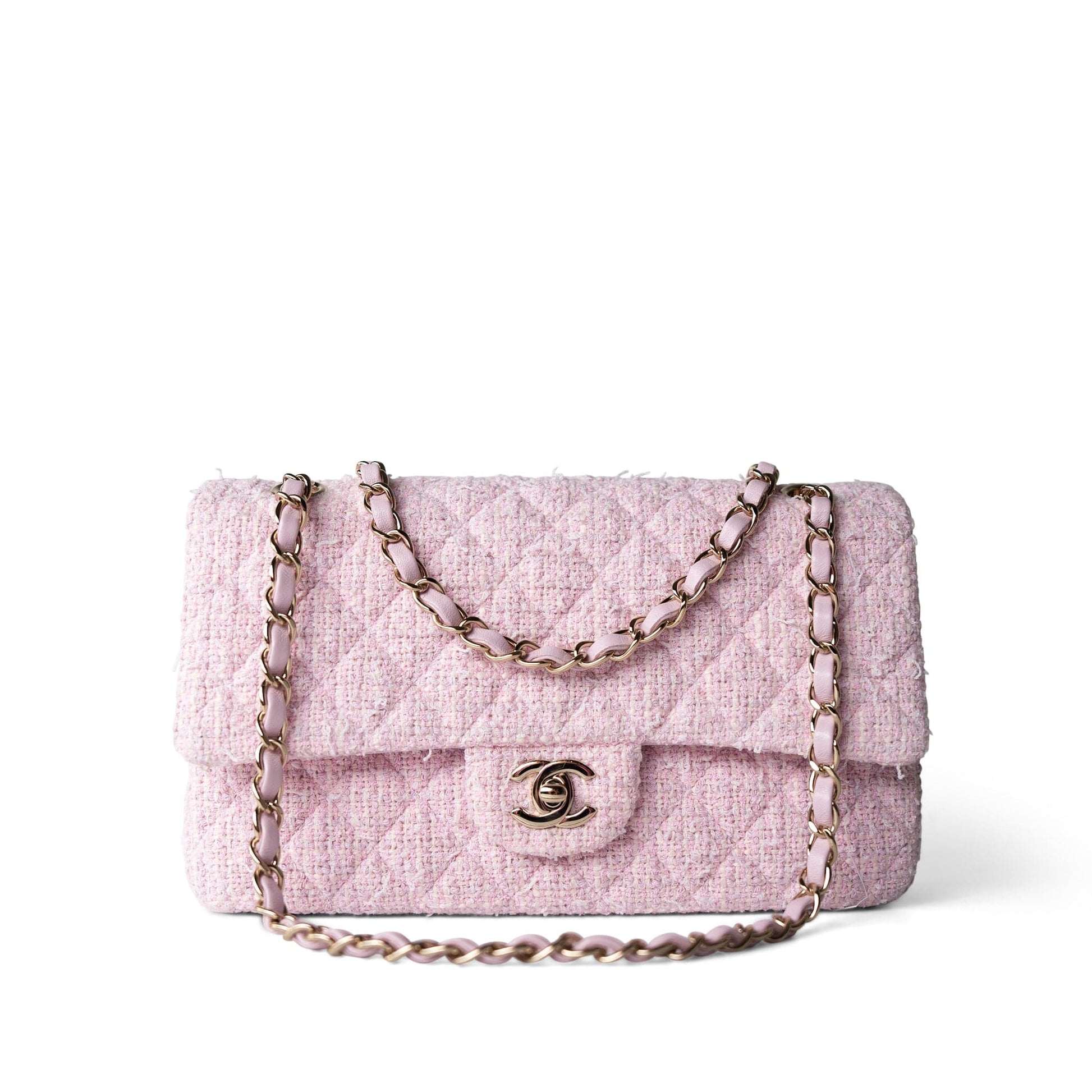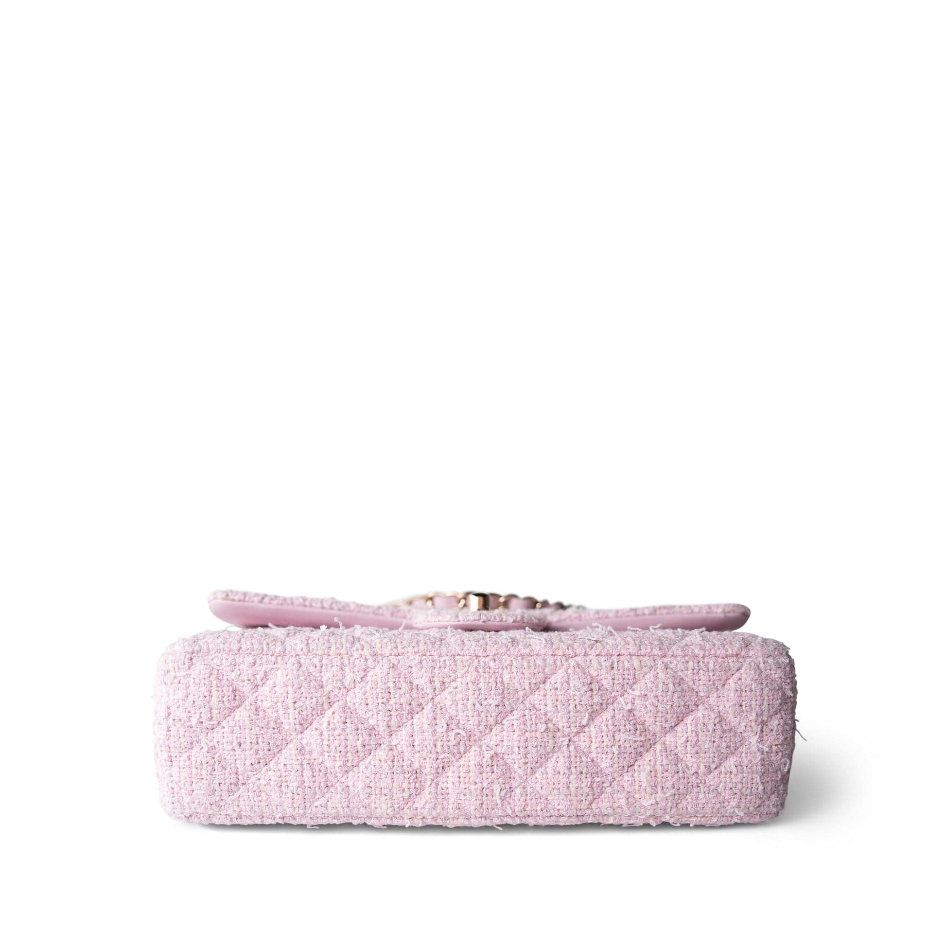 21S Pink Tweed Quilted Classic Flap Medium Light Gold Hardware