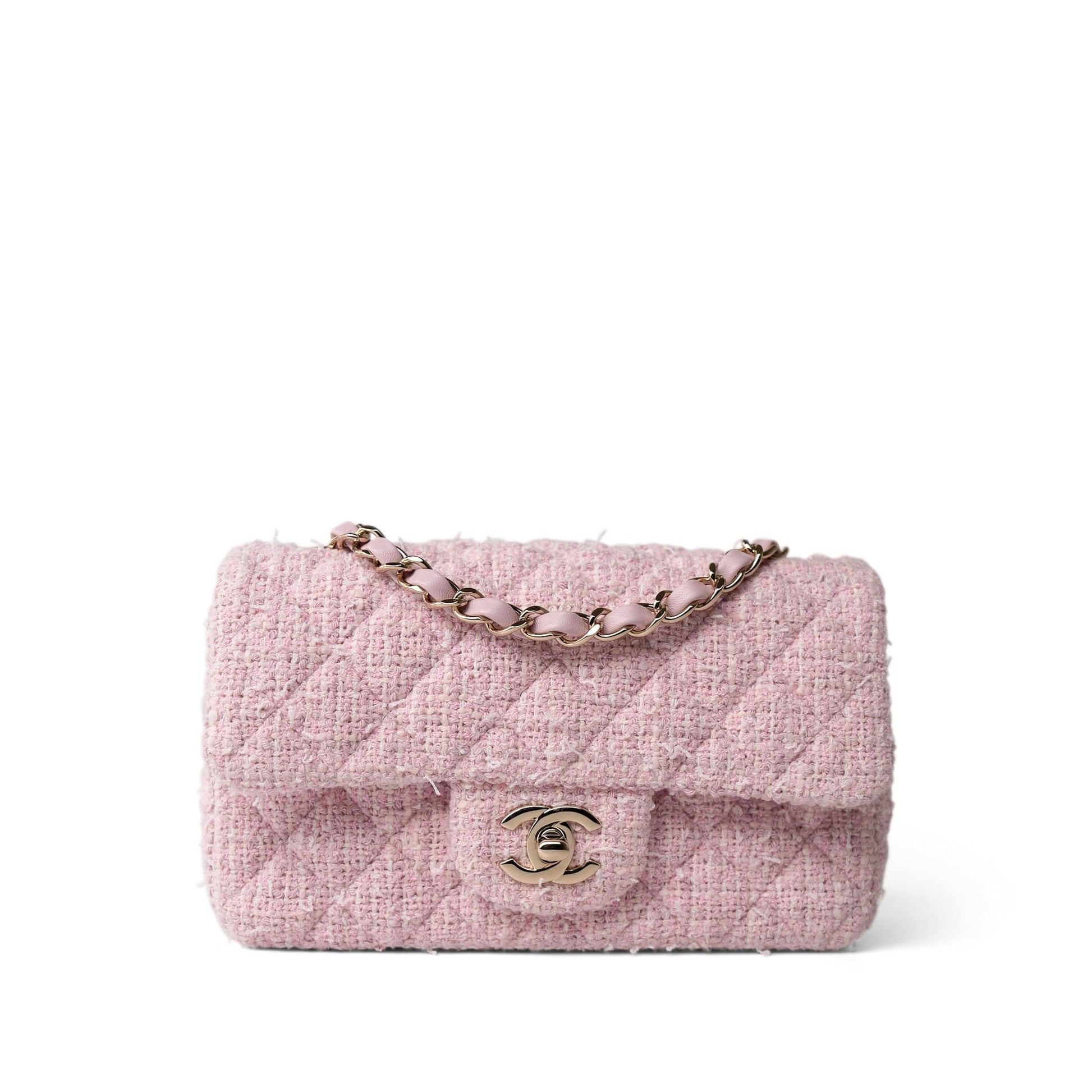 21S Pink White Tweed Quilted Mini Rectangular Flap Light Gold Hardware