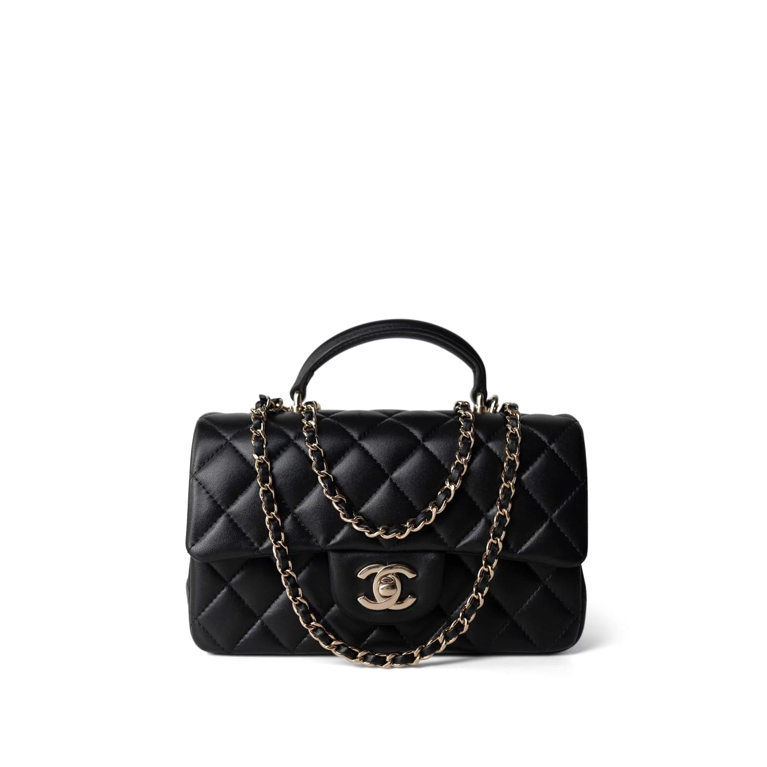 22A Black Lambskin Mini Top Handle Light Gold Hardware
