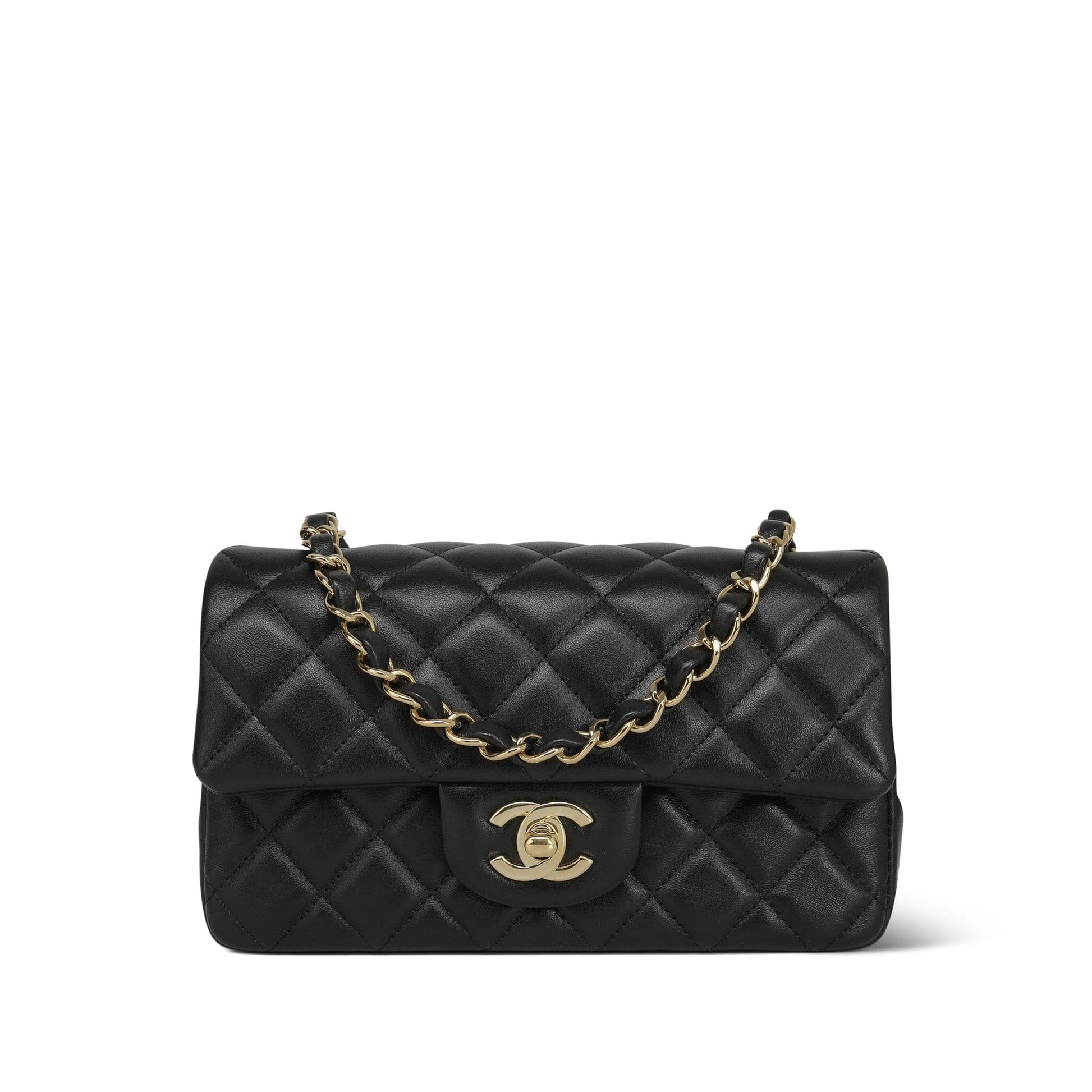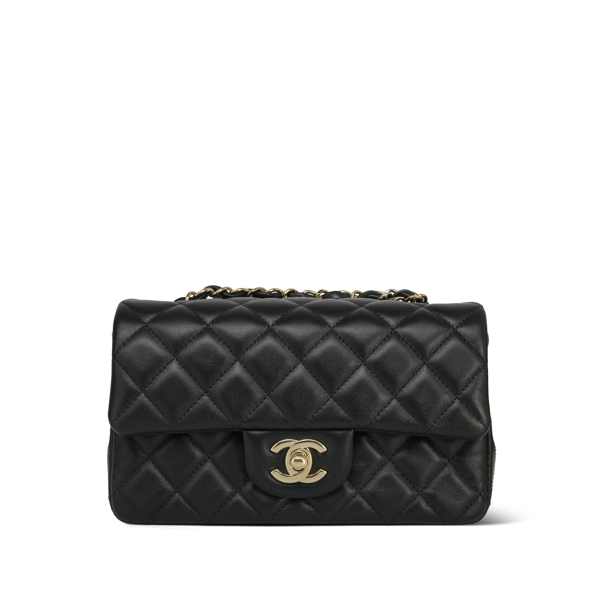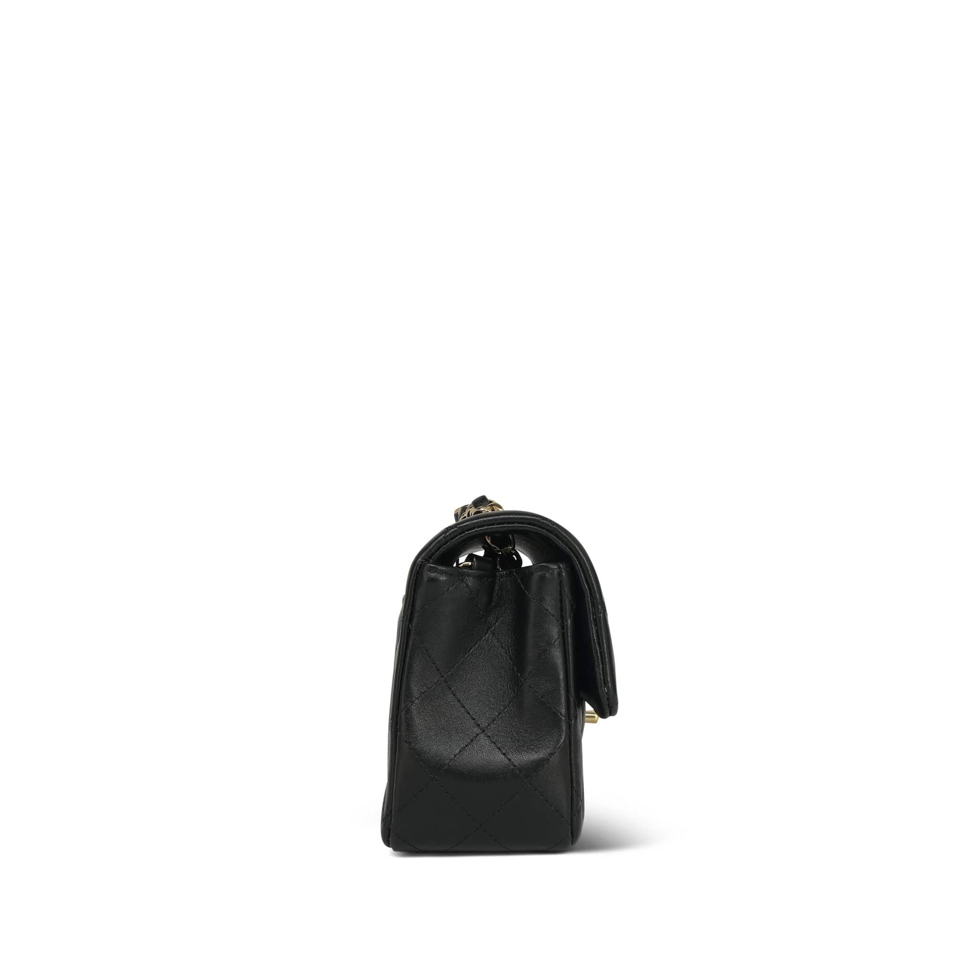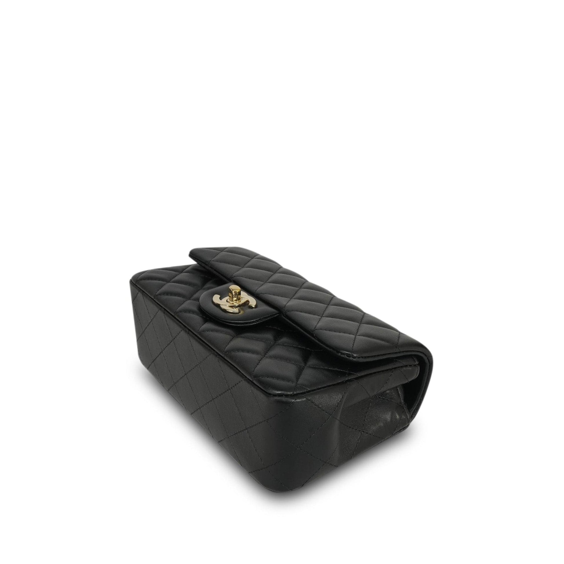 22A Black Lambskin Quilted Mini Rectangular Flap LGHW