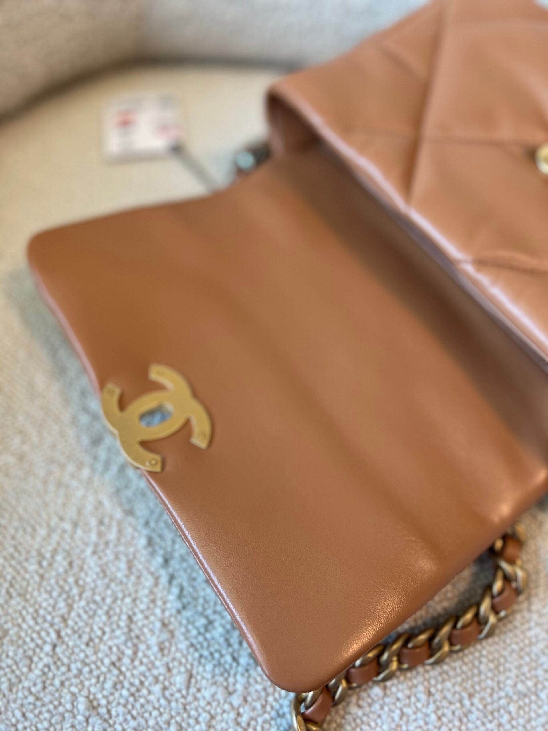 22A Caramel/Light Brown Lambskin Quilted 19 Flap Small Mixed Hardware