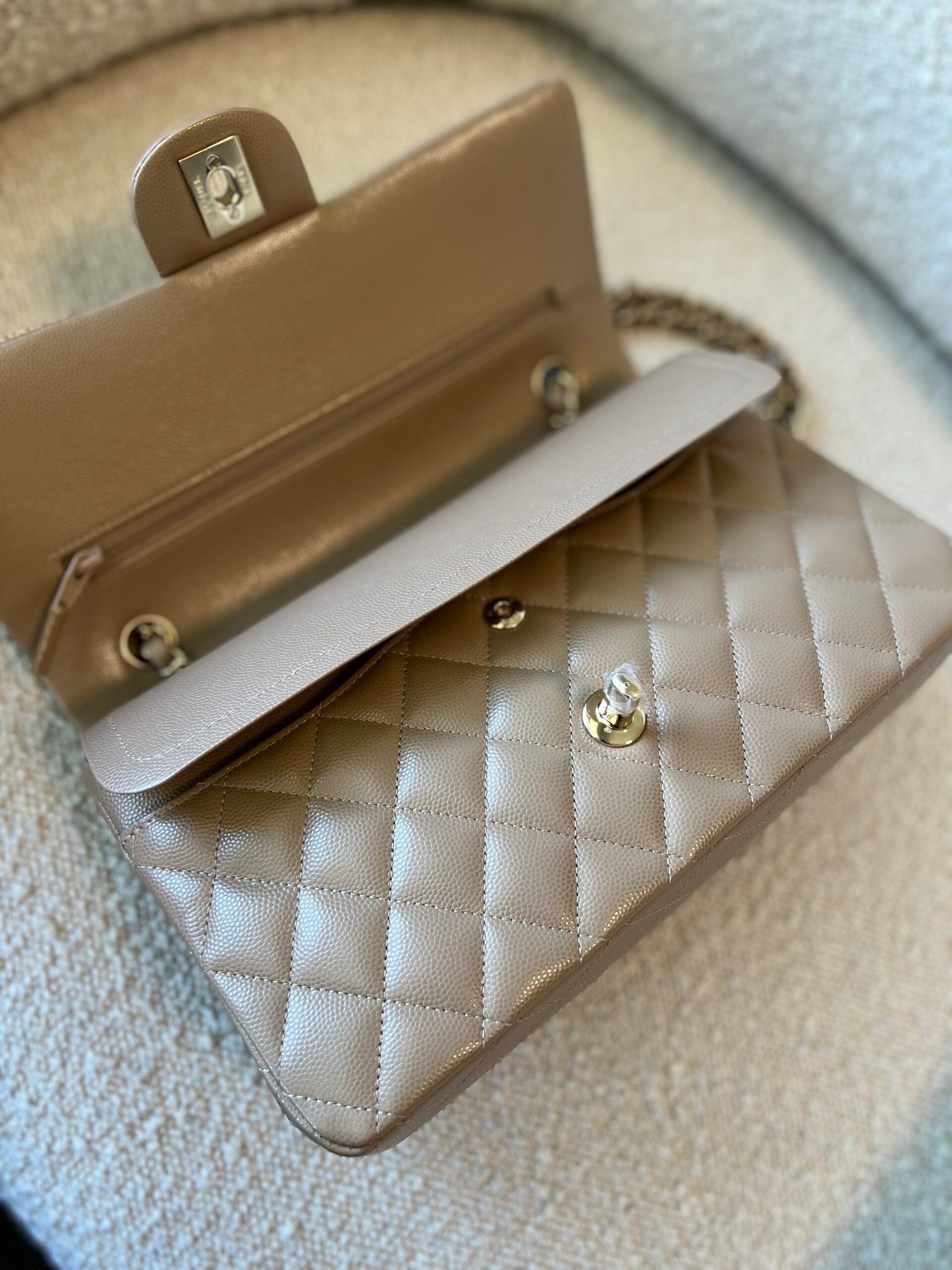 22A Dark Beige Caviar Quilted Classic Flap Medium LGHW