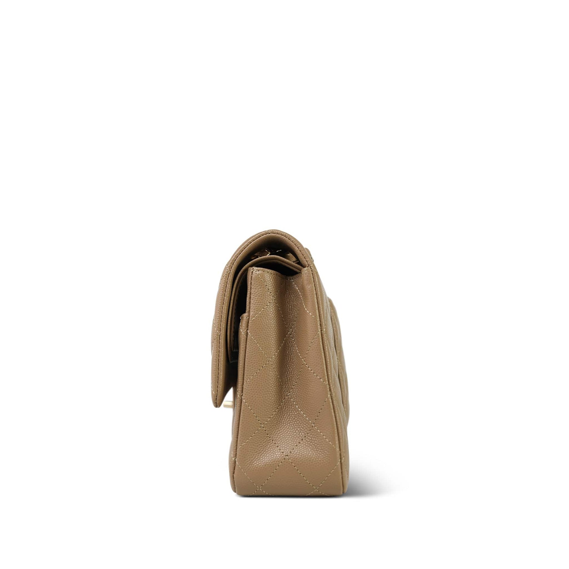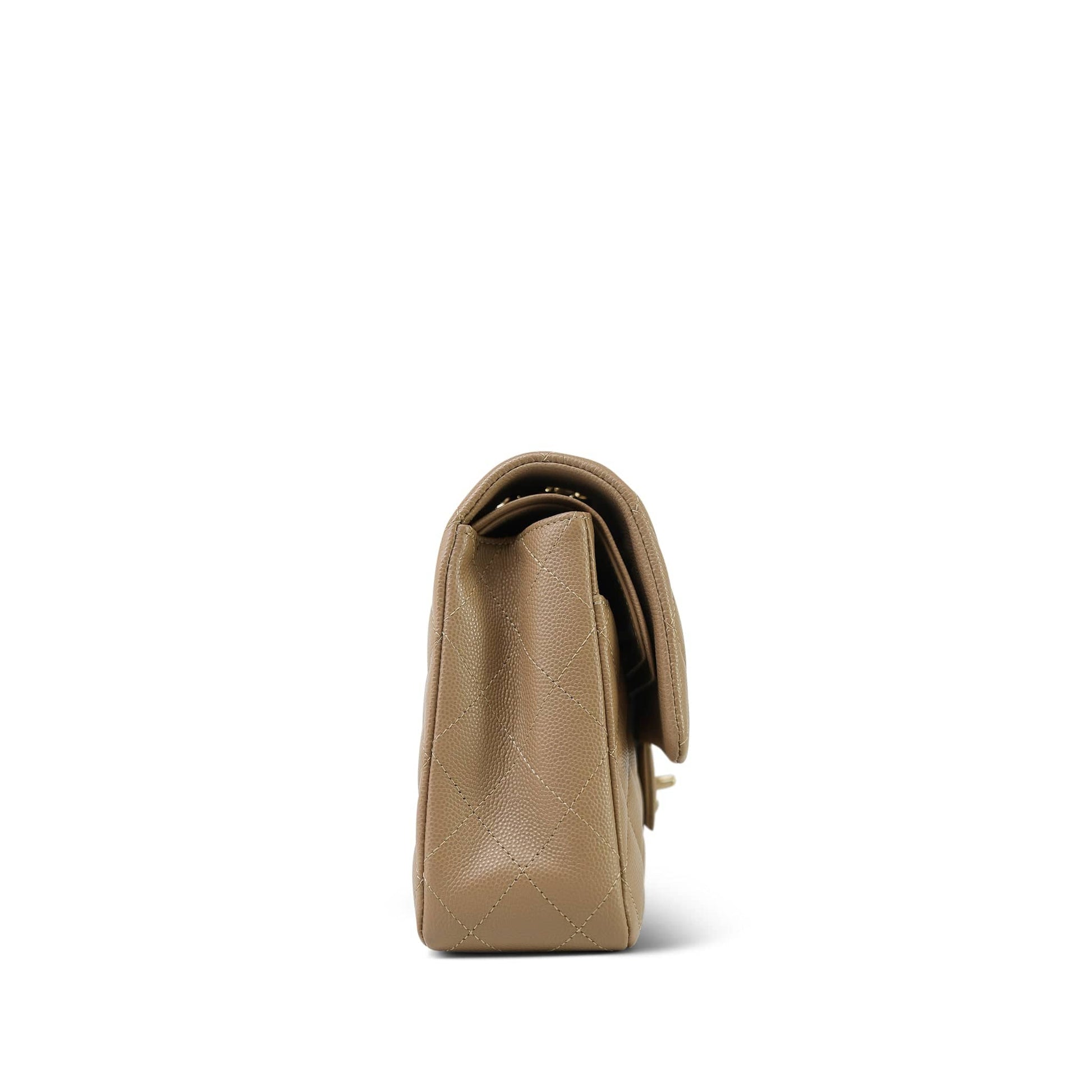22A Dark Beige Caviar Quilted Medium Classic Flap Light Gold Hardware