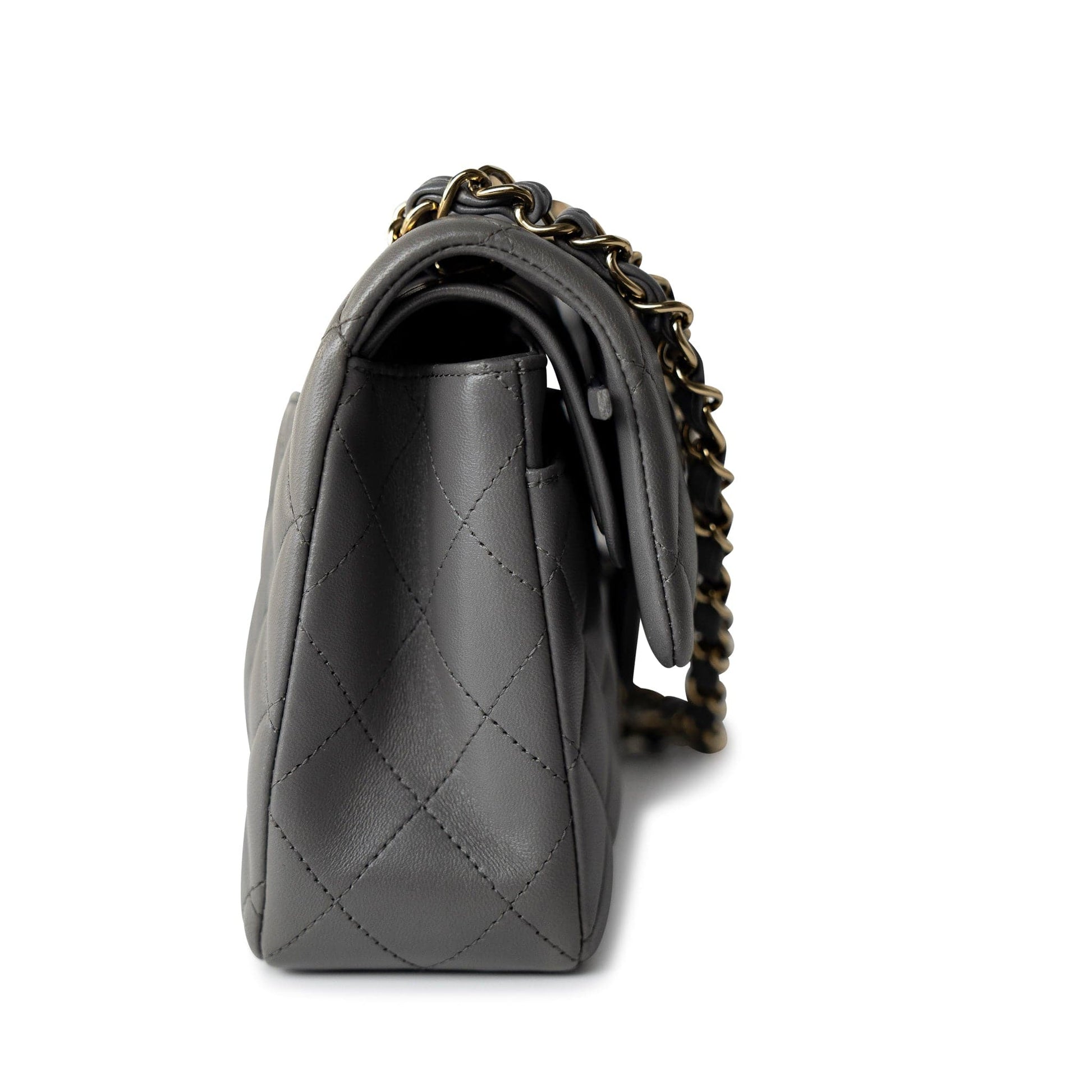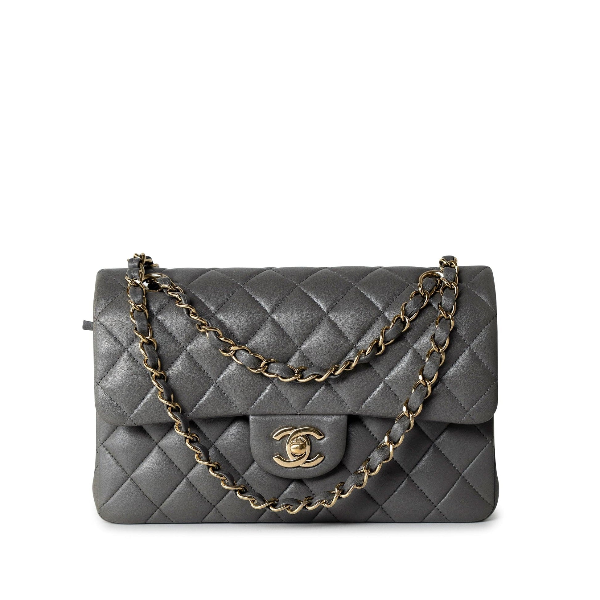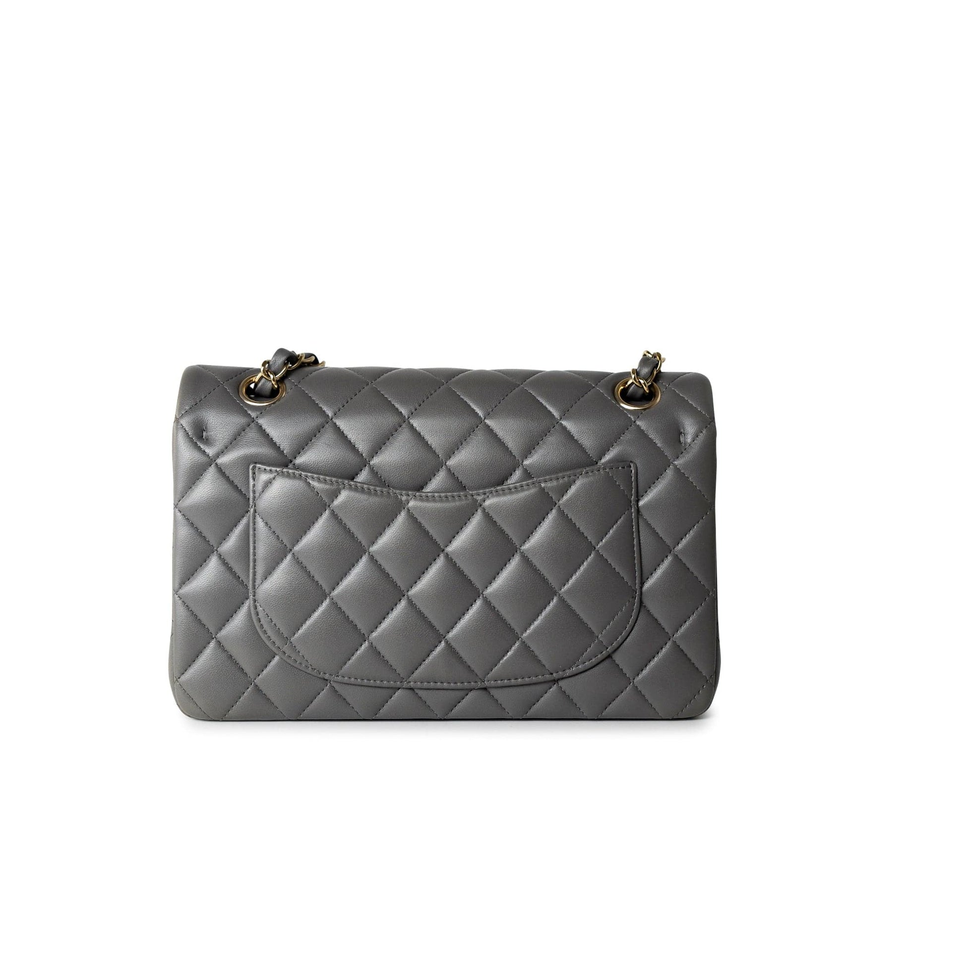 22A Grey Lambskin Quilted Small Classic Flap Light Gold Hardware
