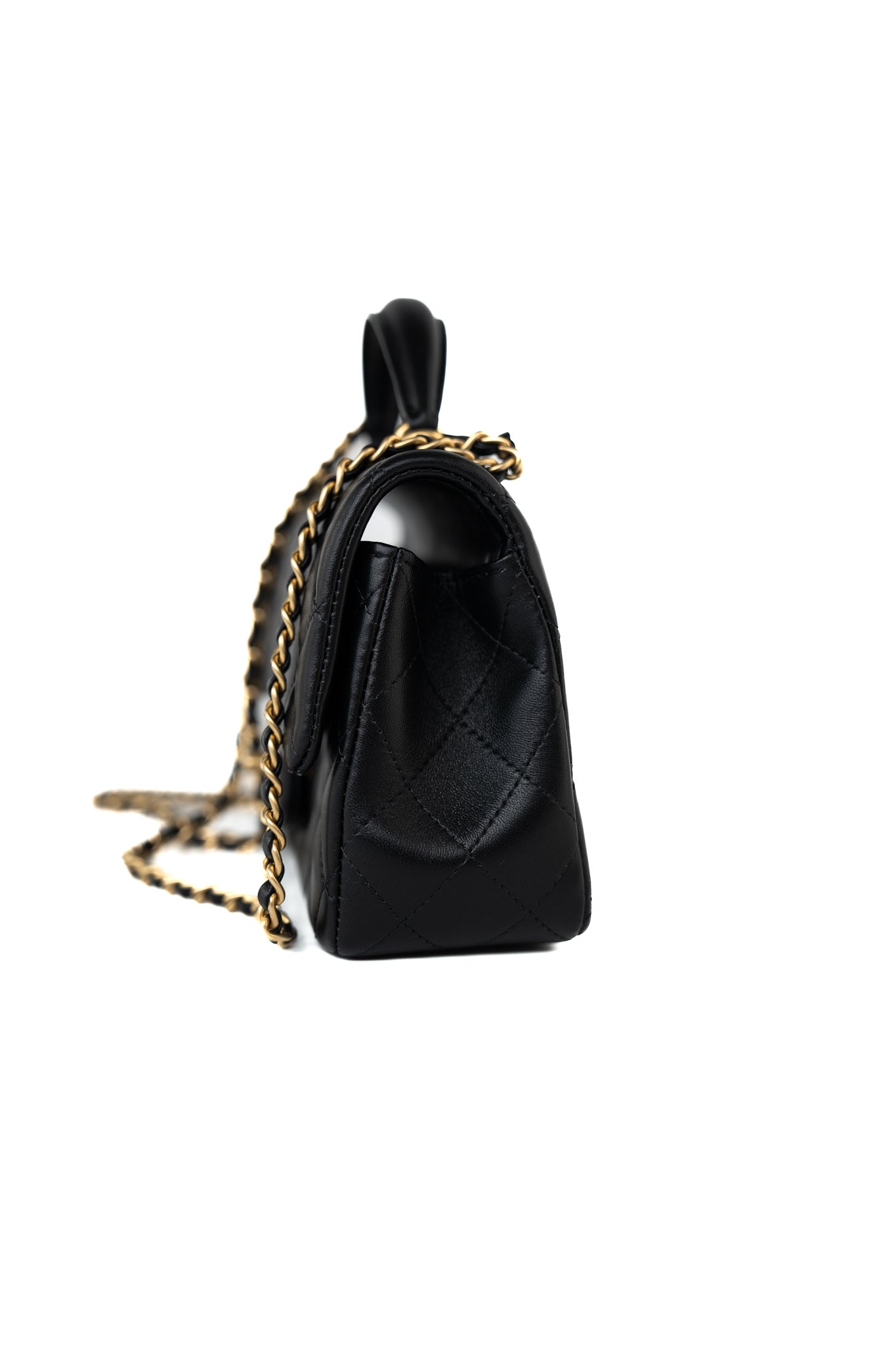 21A Black Lambskin Quilted Mini Top Handle Antique Gold Hardware