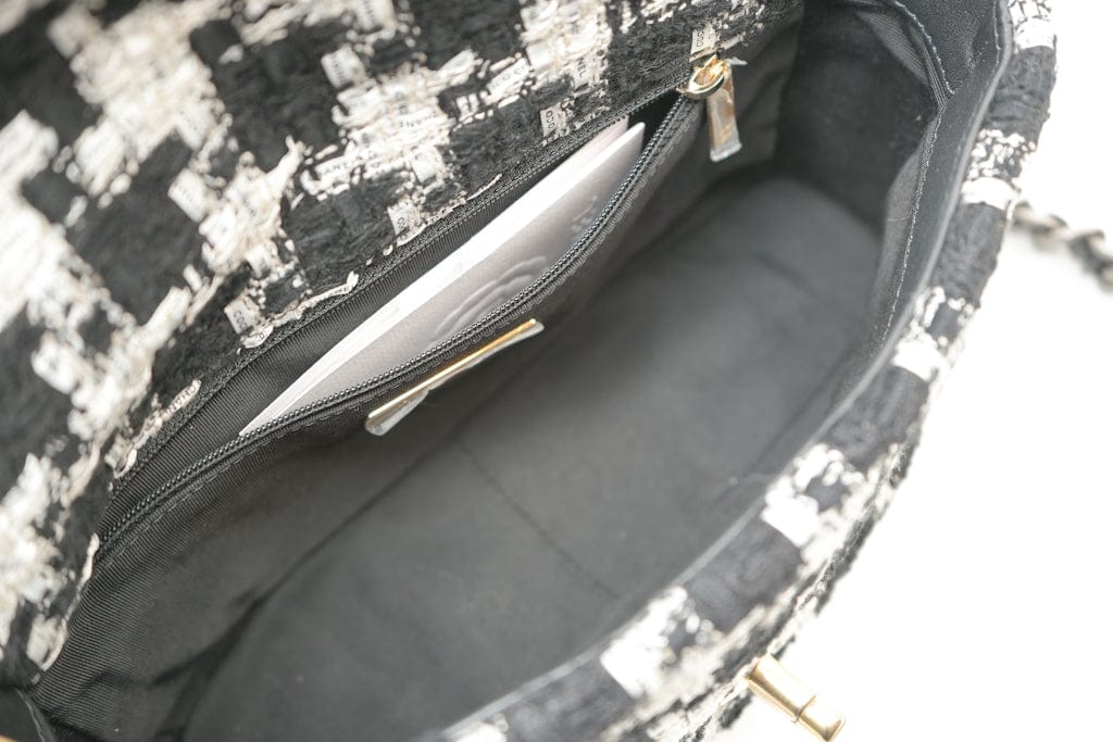 20S Ecru Black & White Tweed Quilted 19 Flap Small Mixed Hardware