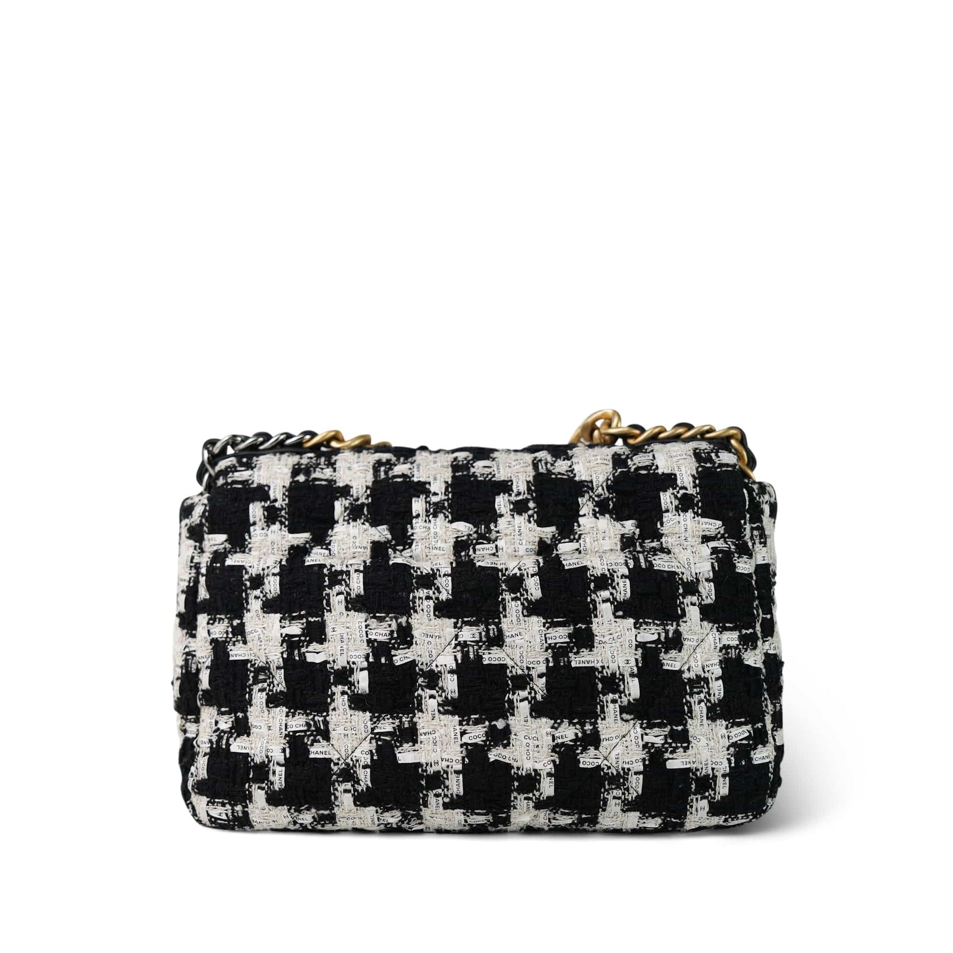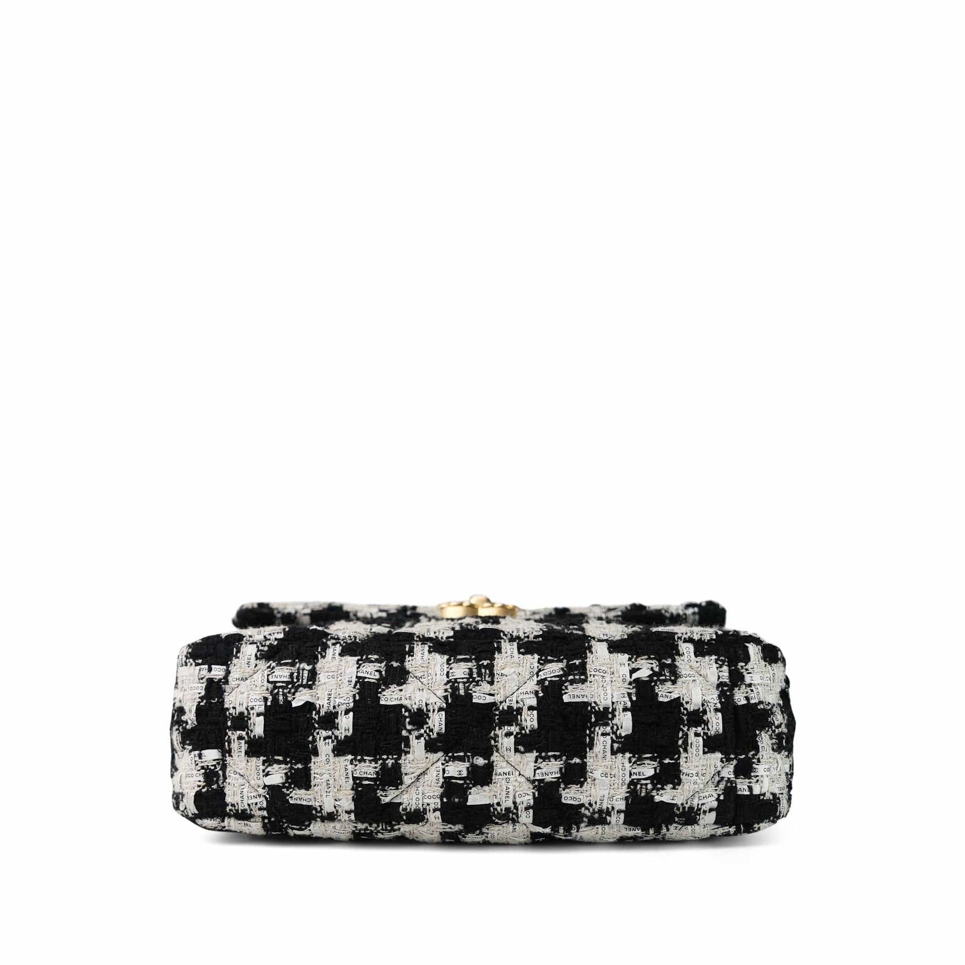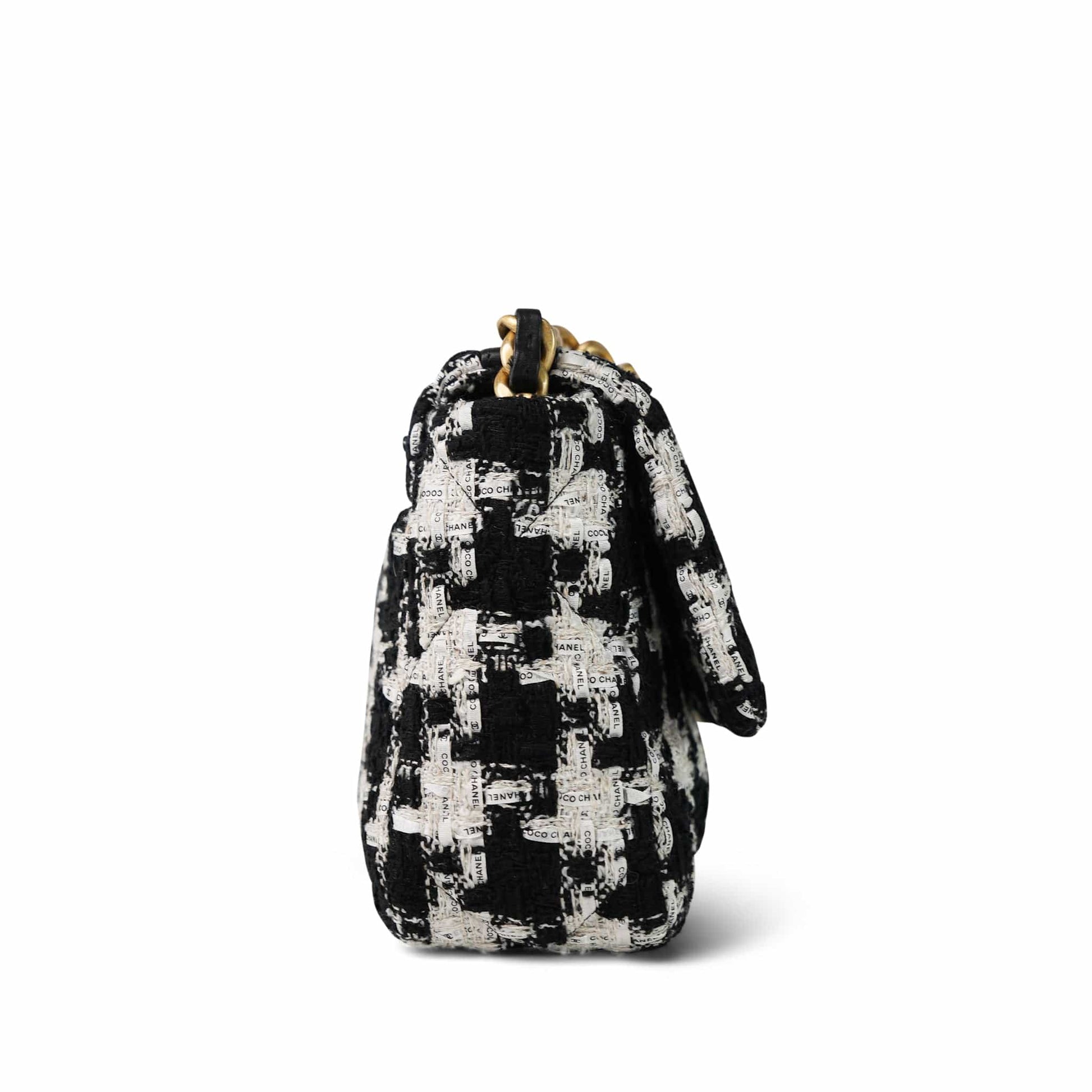 20S Ecru Black & White Ribbon Tweed Quilted 19 Flap Small Mixed Hardware
