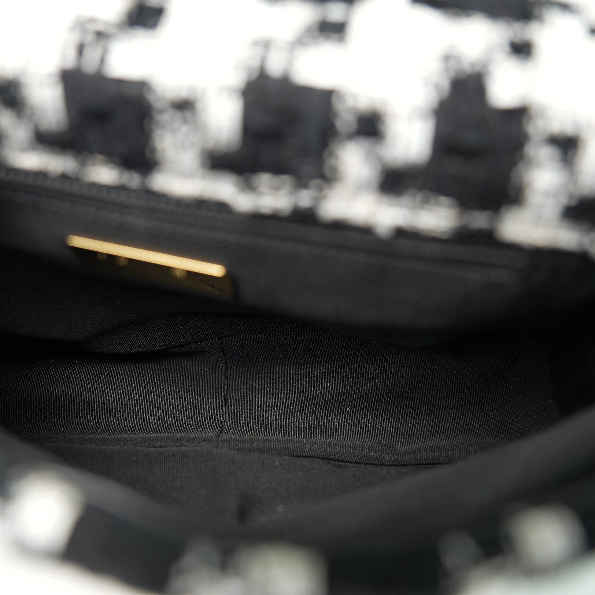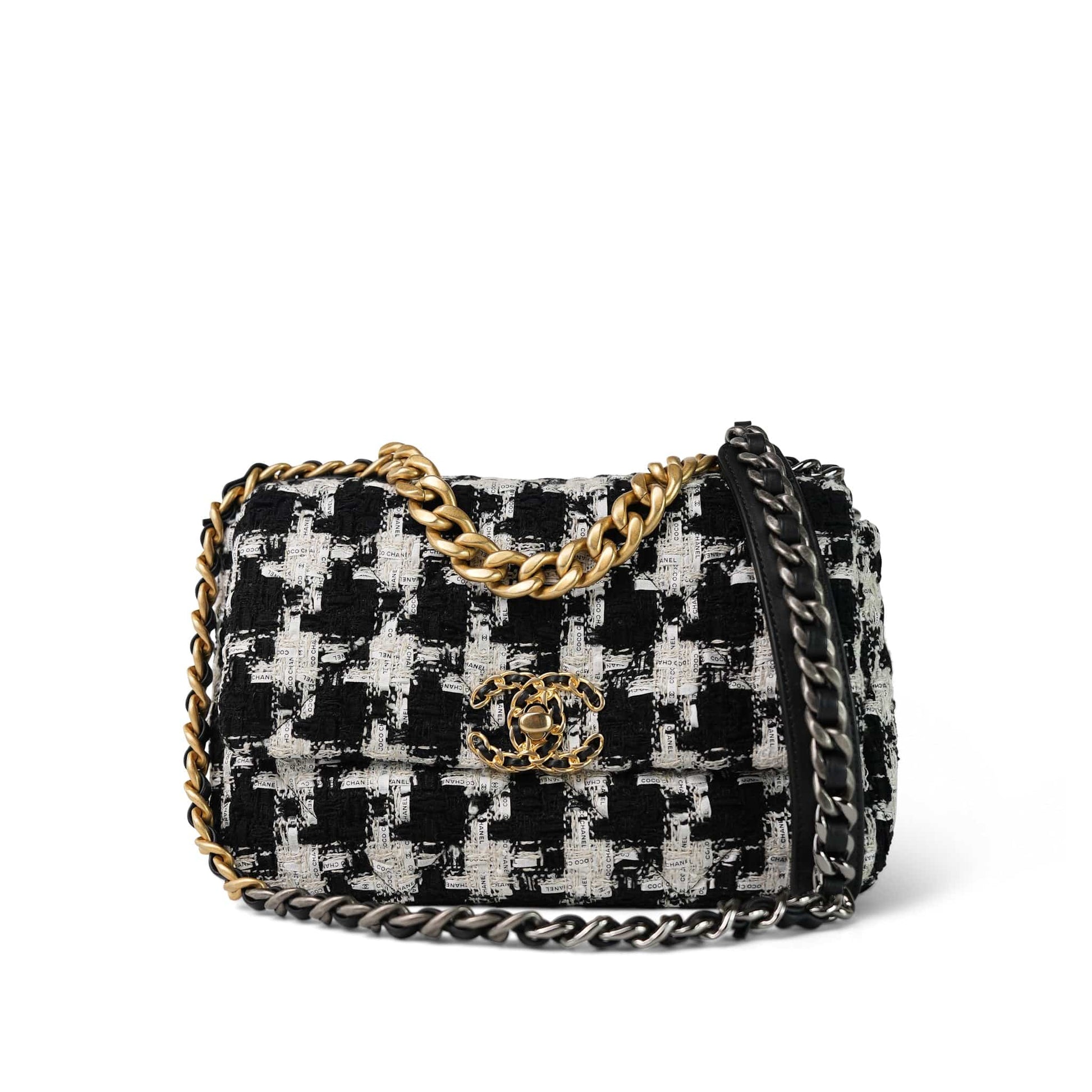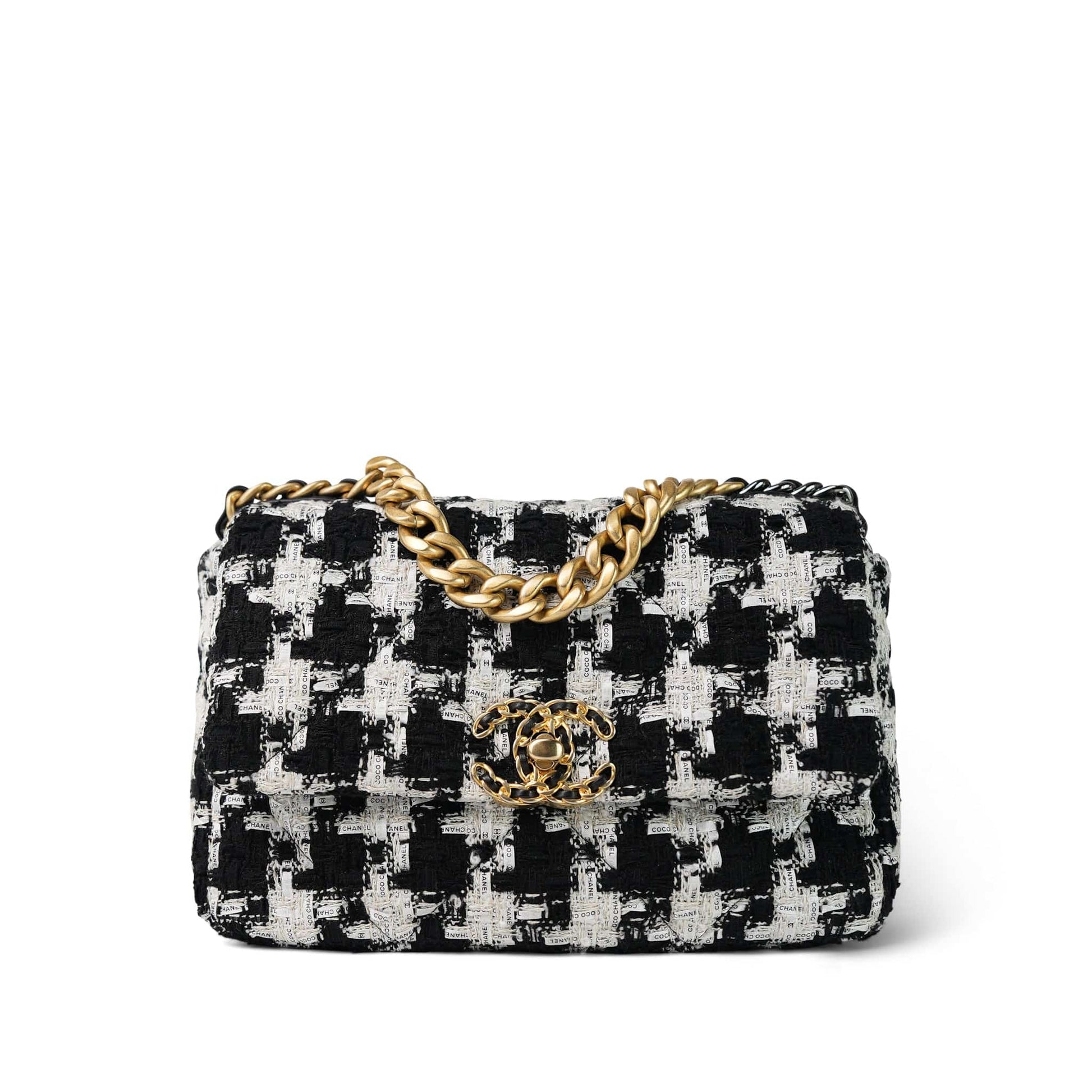 20S Ecru Black & White Ribbon Tweed Quilted 19 Flap Small Mixed Hardware