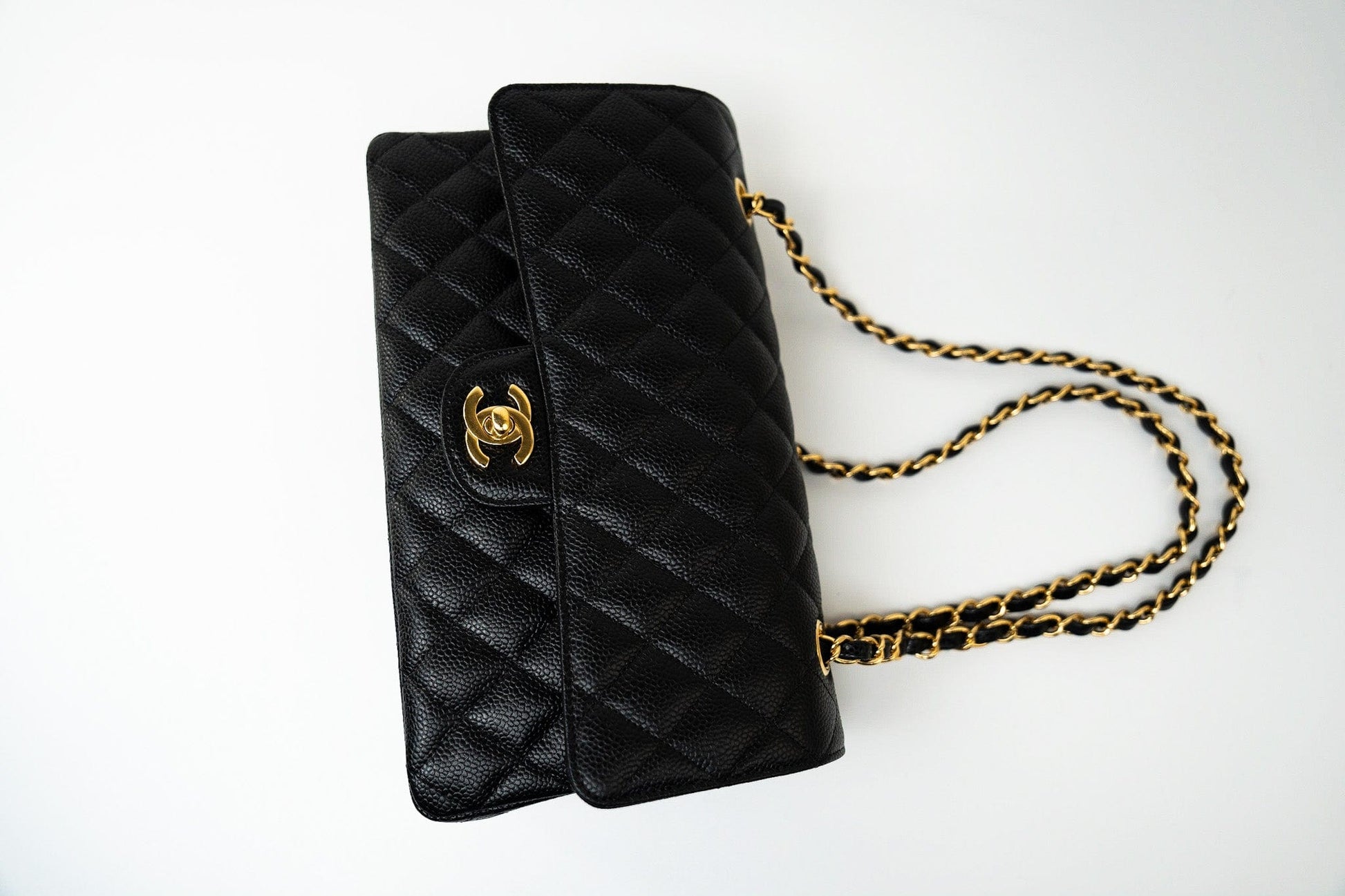 (Rev) Medium Black Caviar Quilted Classic Flap Gold Hardware