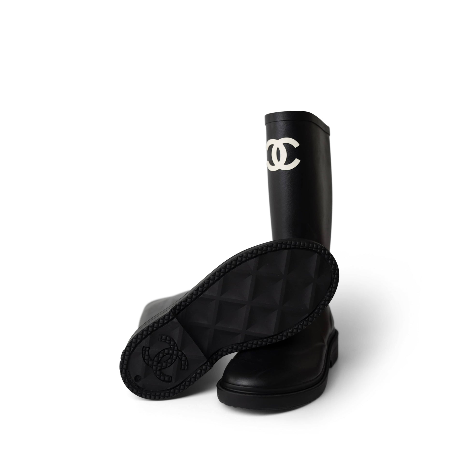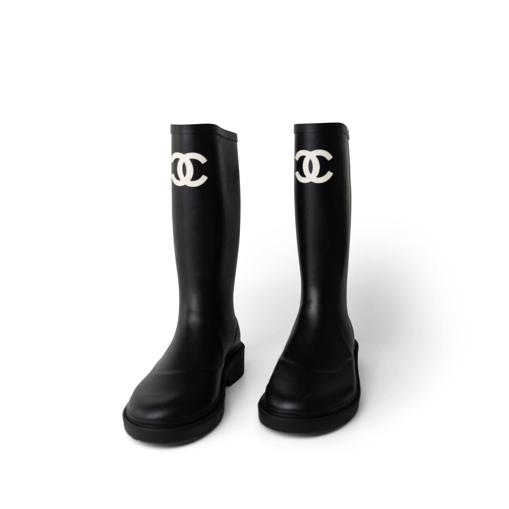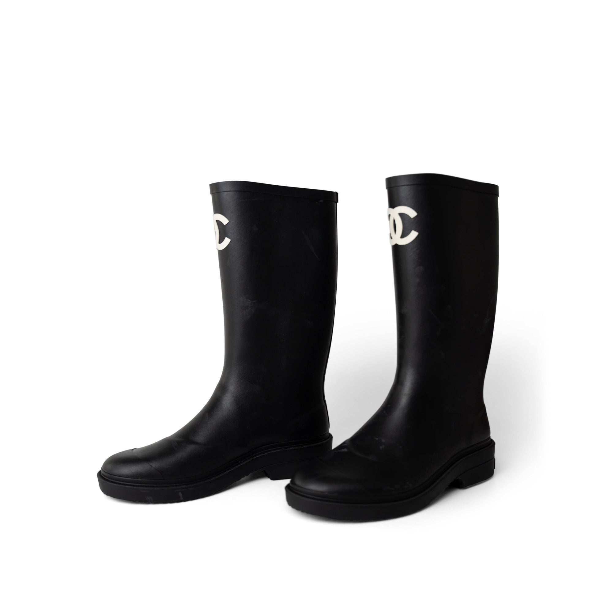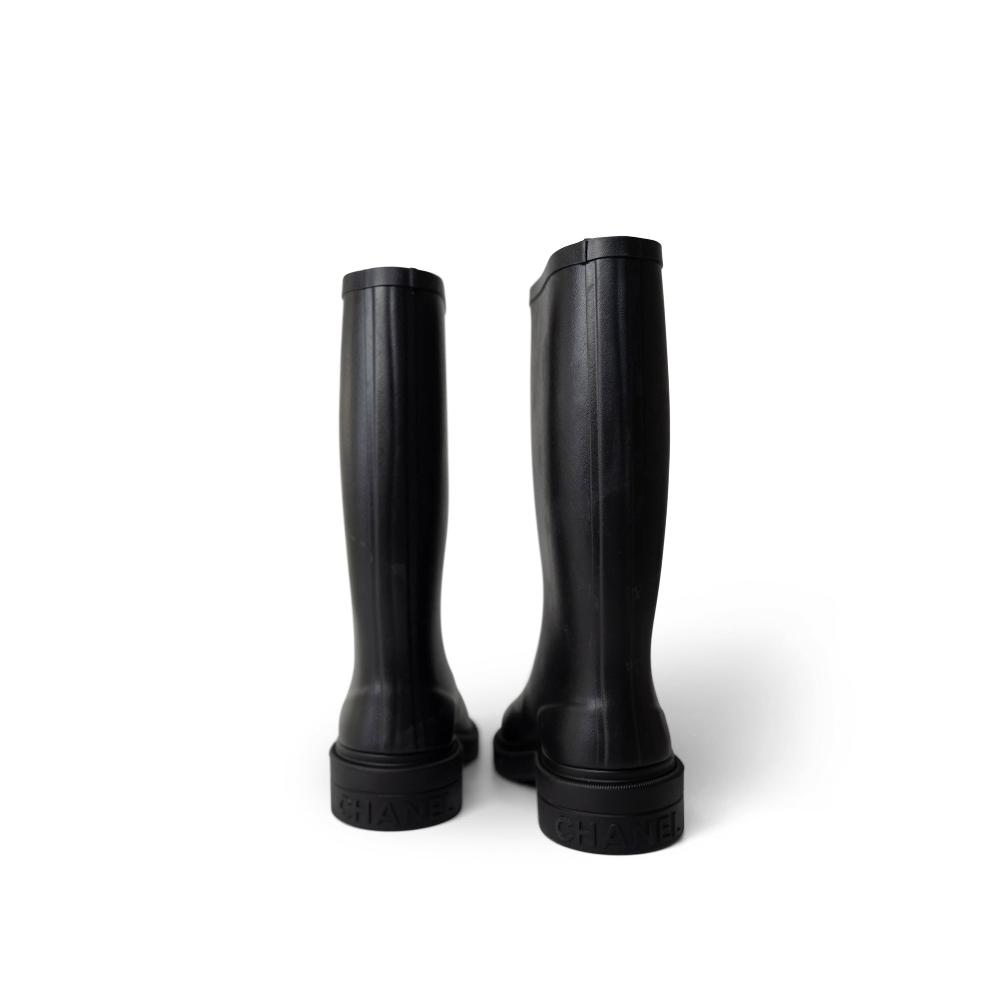 22A Black Caoutchouk CC High Boots 38 / 8 US