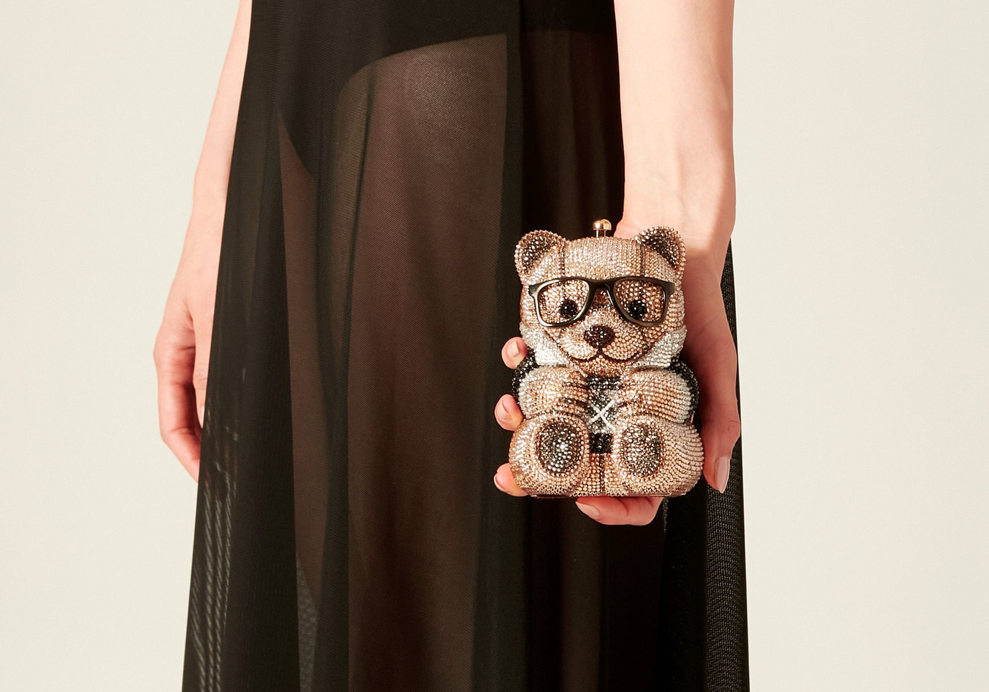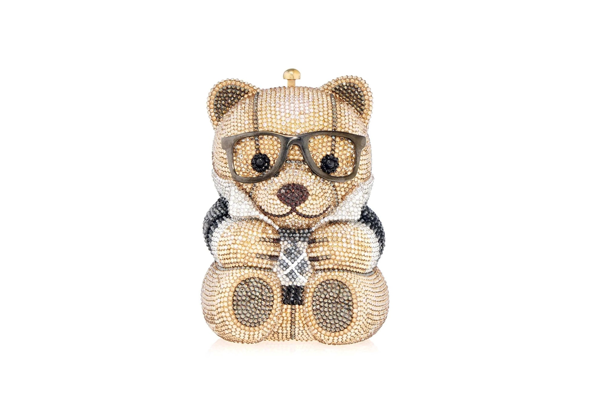 Distinguished in oversized glasses and an argyle sweater, our Spencer Teddy Bear crystal clutch is a fun piece to add to your Leiber collection. This one-of-a-kind accessory is the perfect companion for stylish days or nights out. Carry it with you for a touch of vintage charm that adds extra personality to any ensemble.