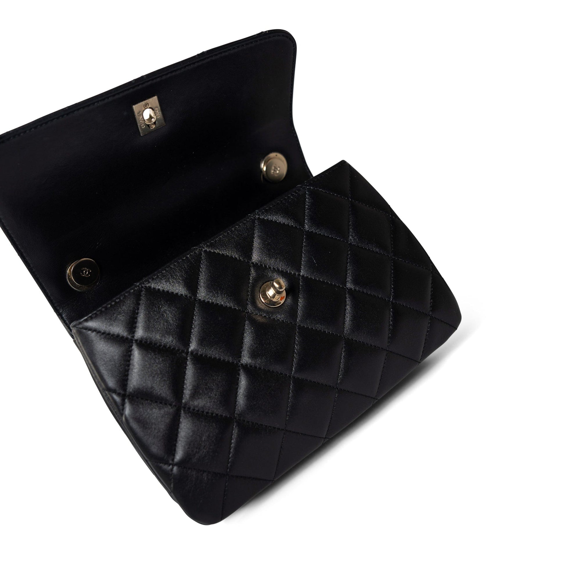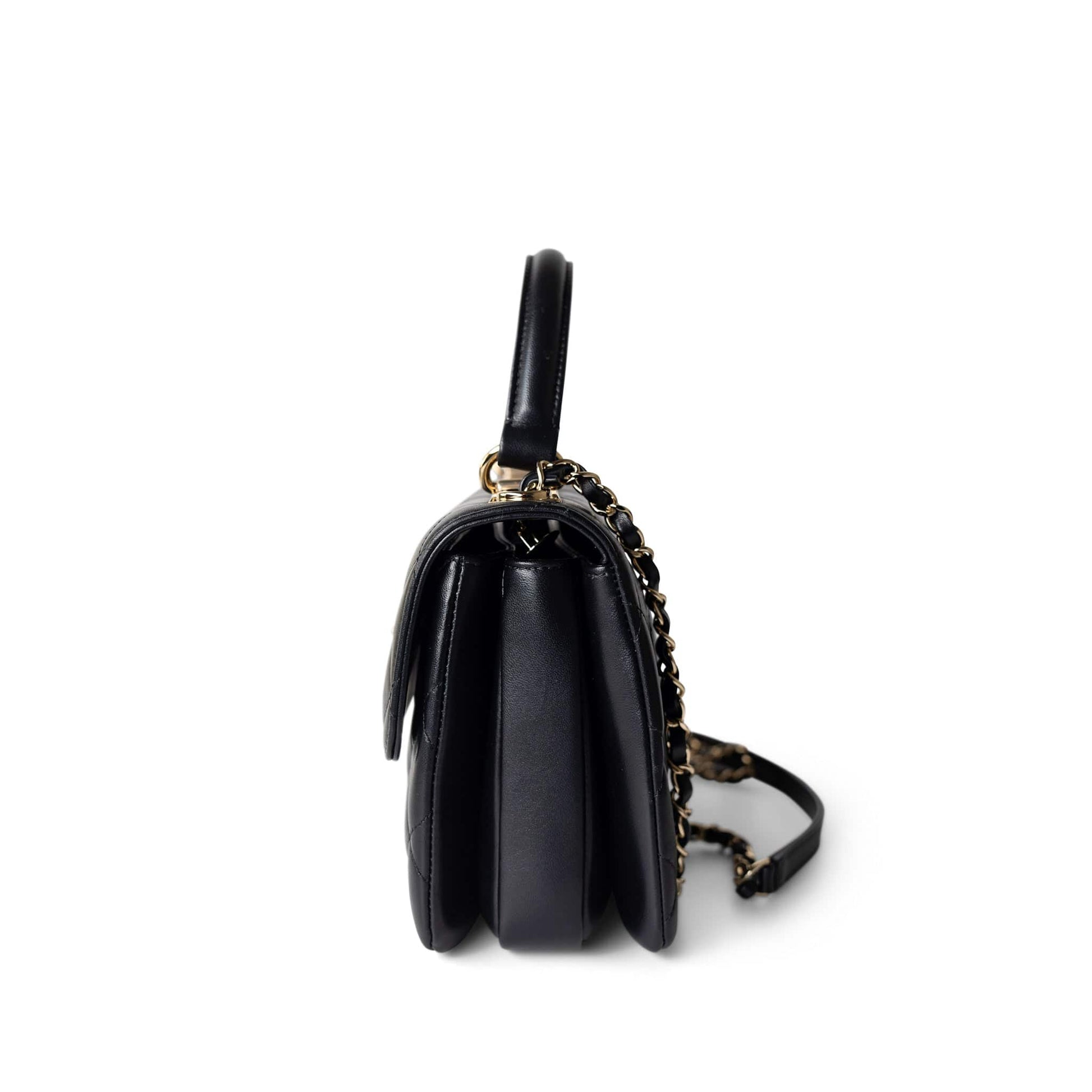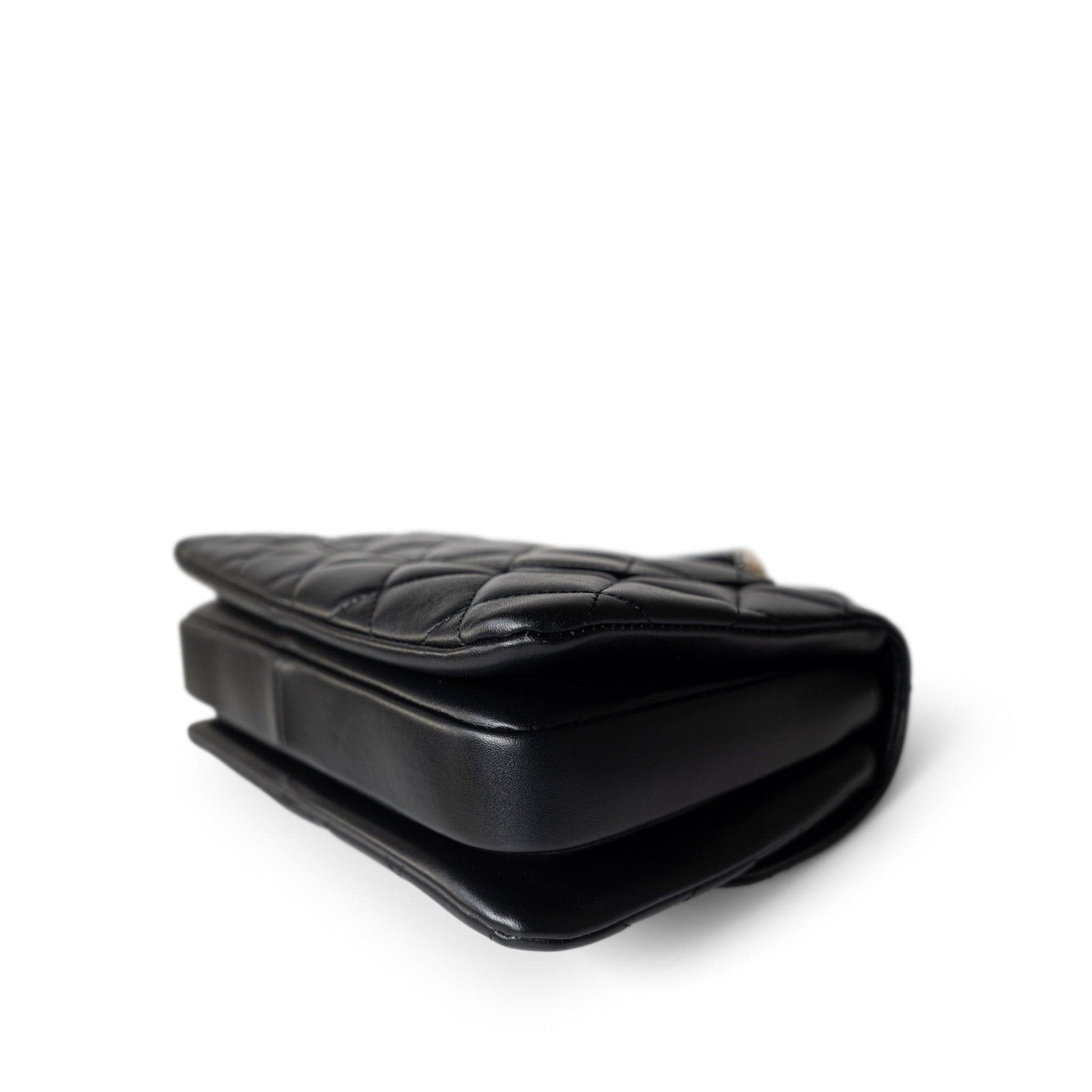 Trendy CC Black Lambskin Quilted Small Light Gold Hardware
