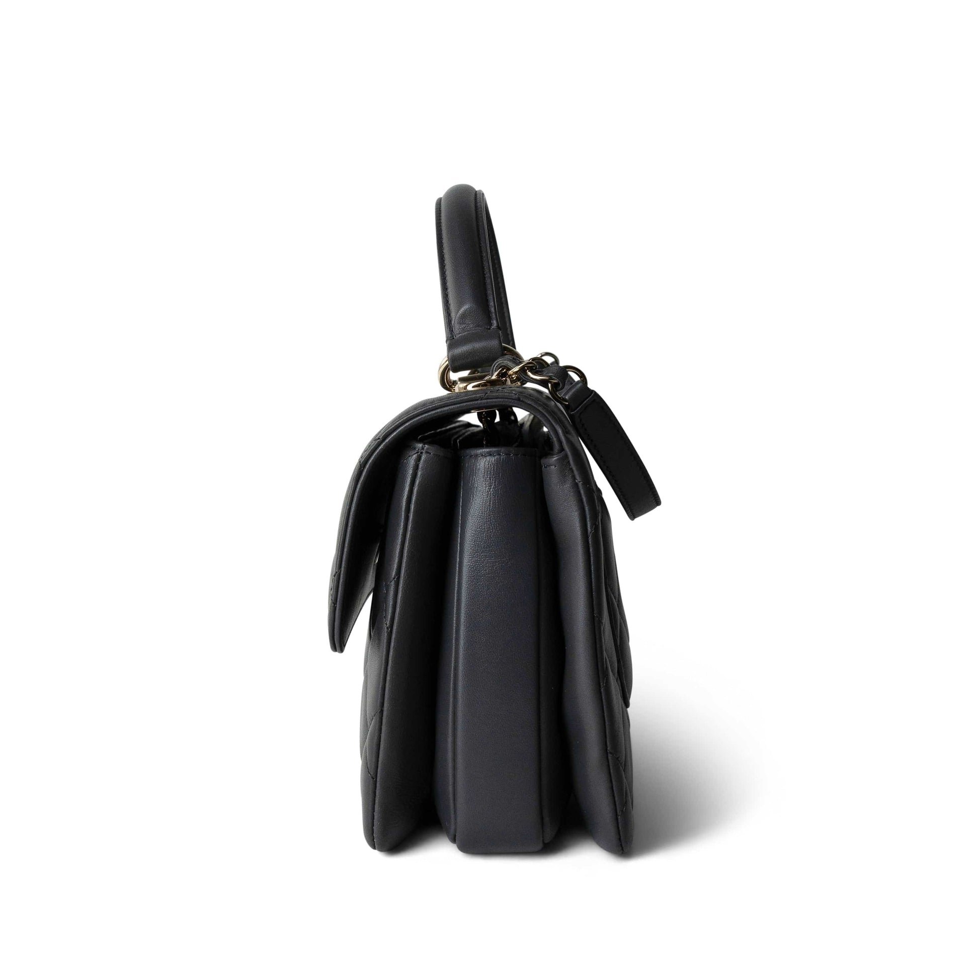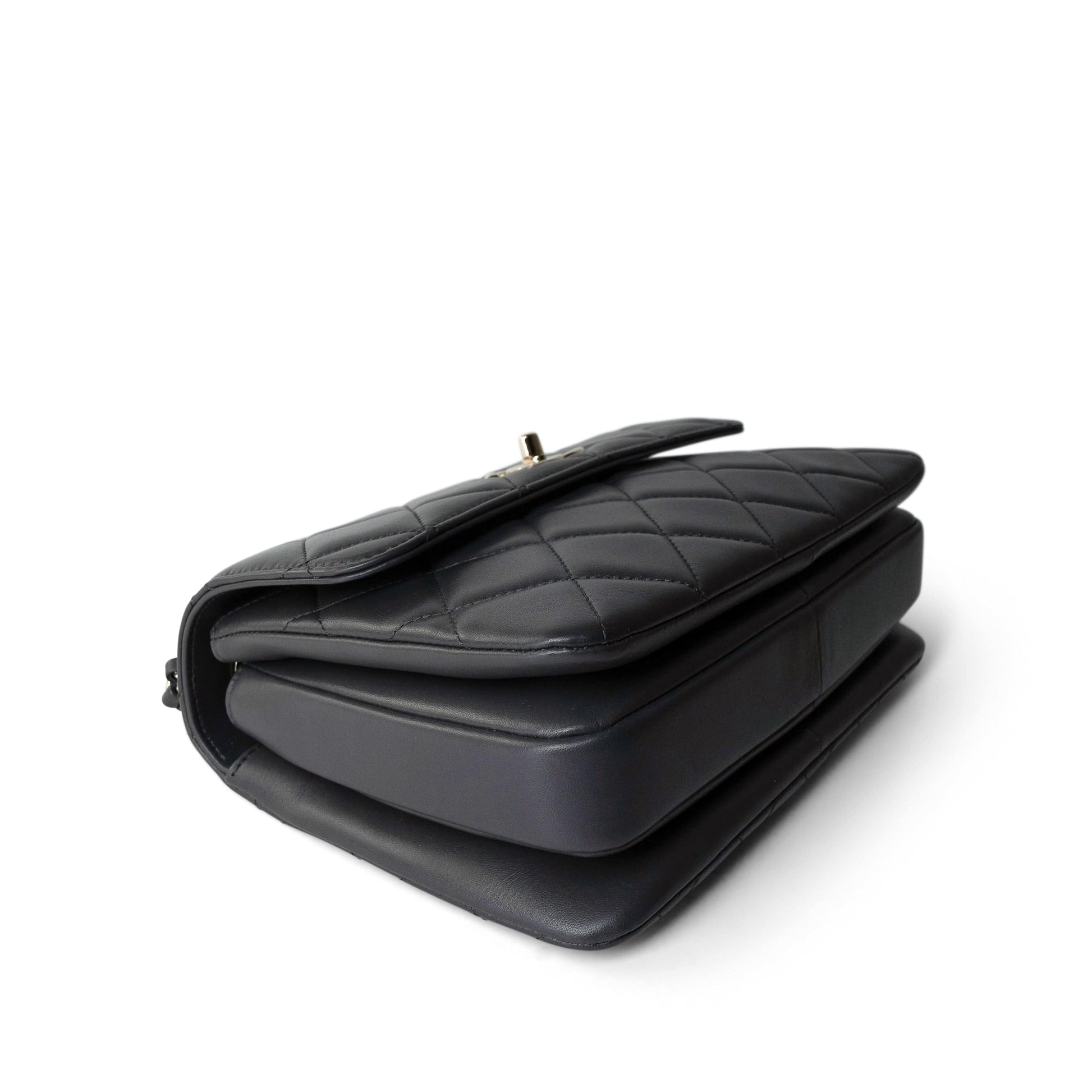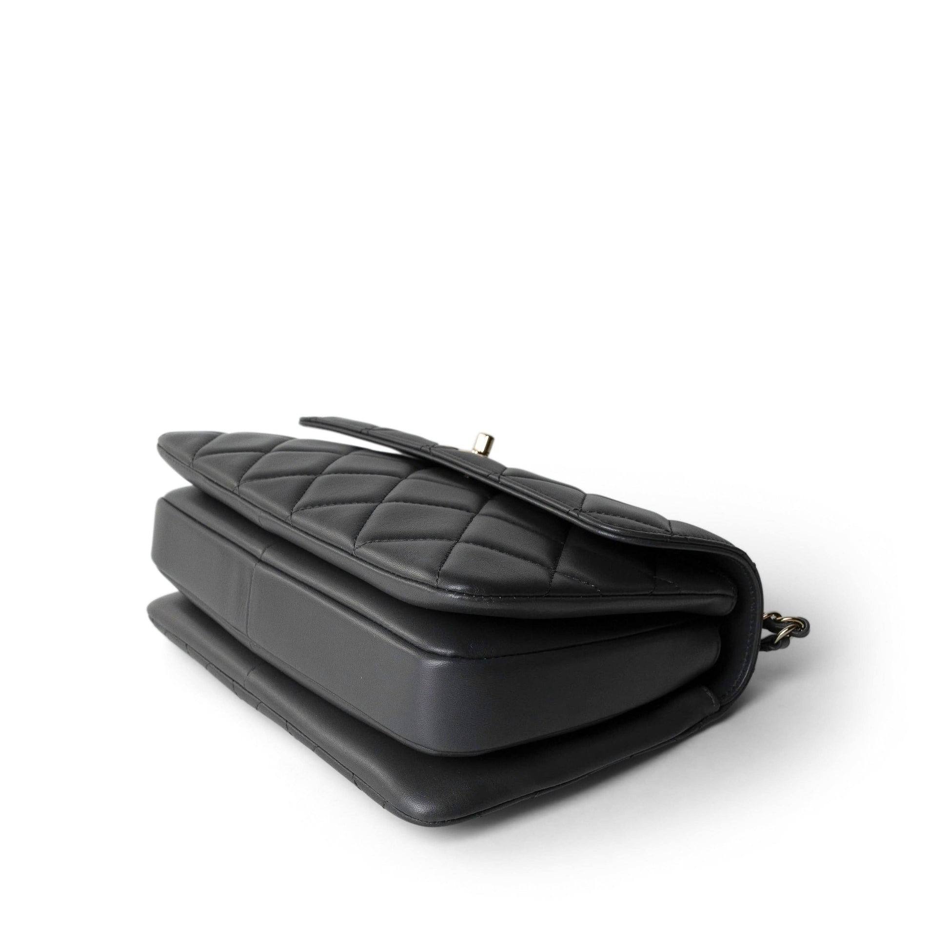 Trendy CC Grey Lambskin Quilted Small Light Gold Hardware