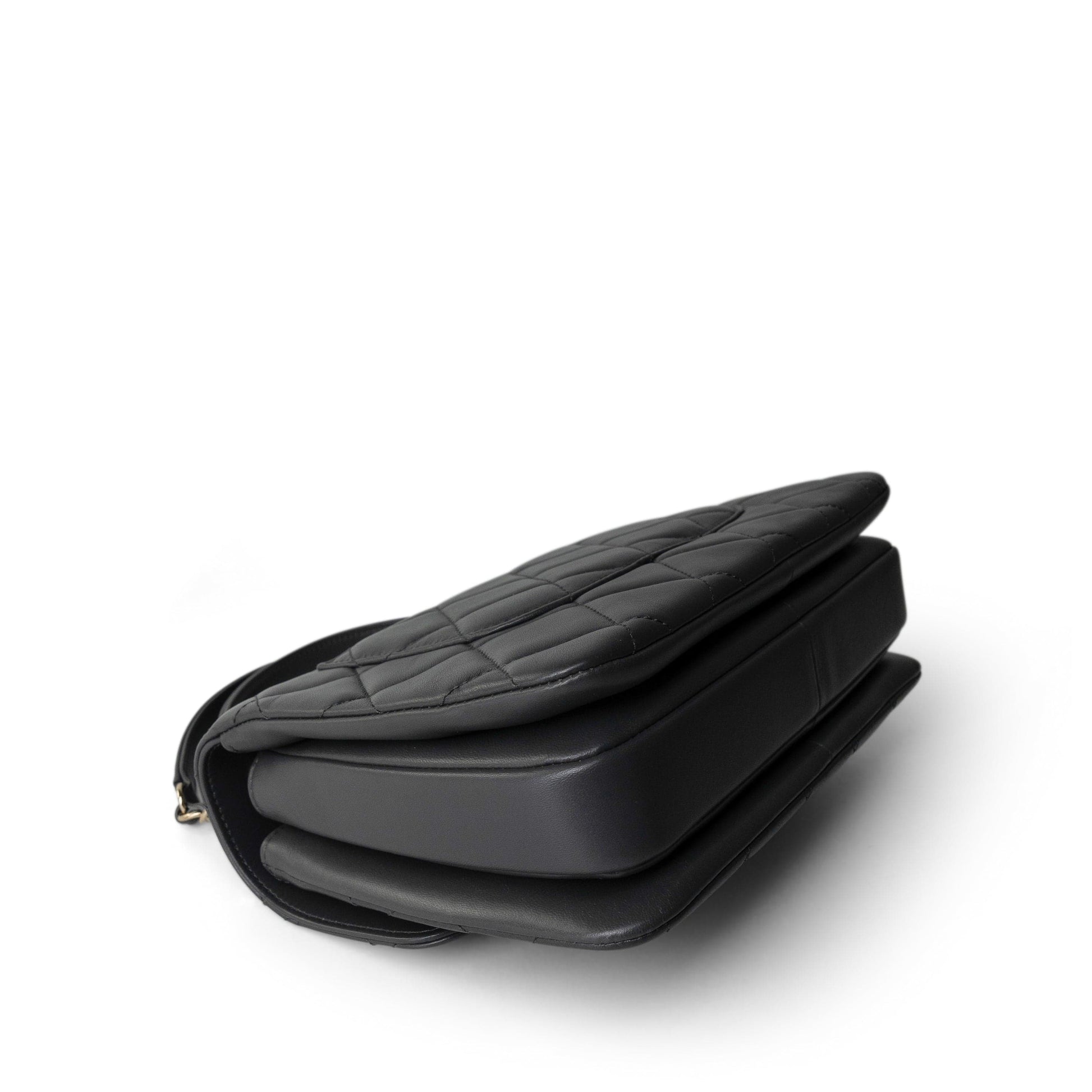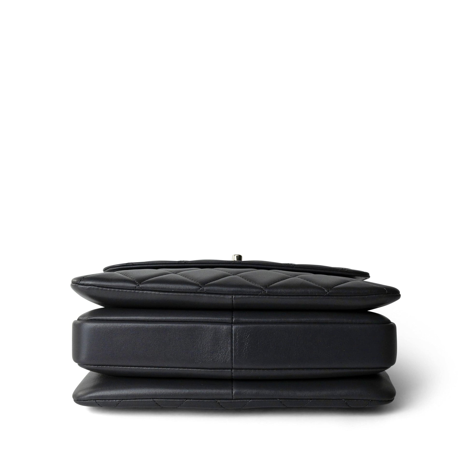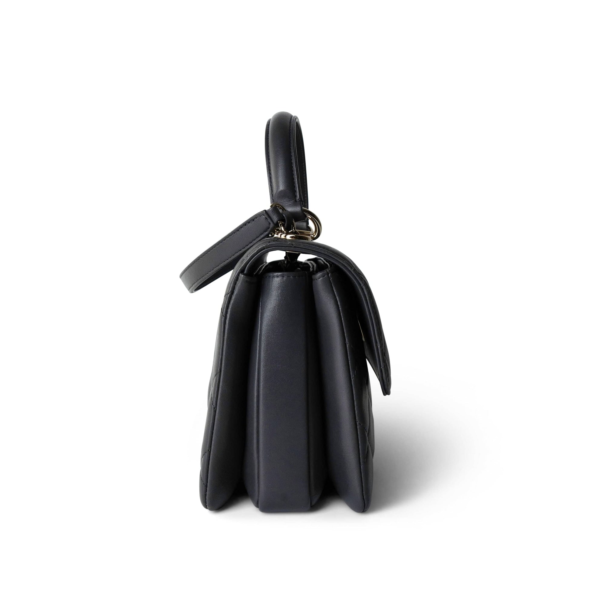 Trendy CC Grey Lambskin Quilted Small Light Gold Hardware