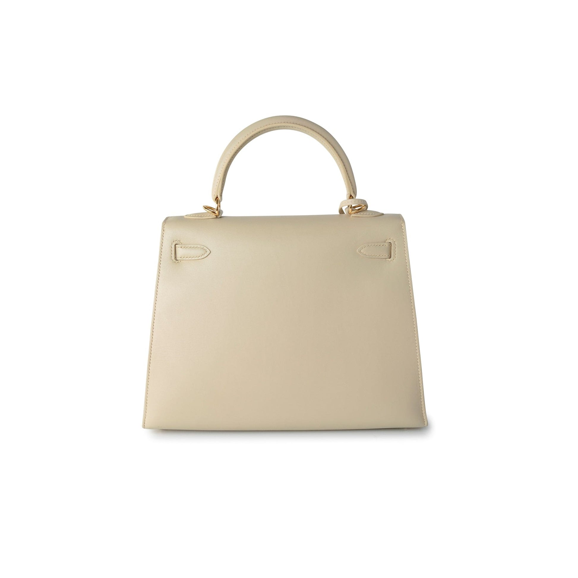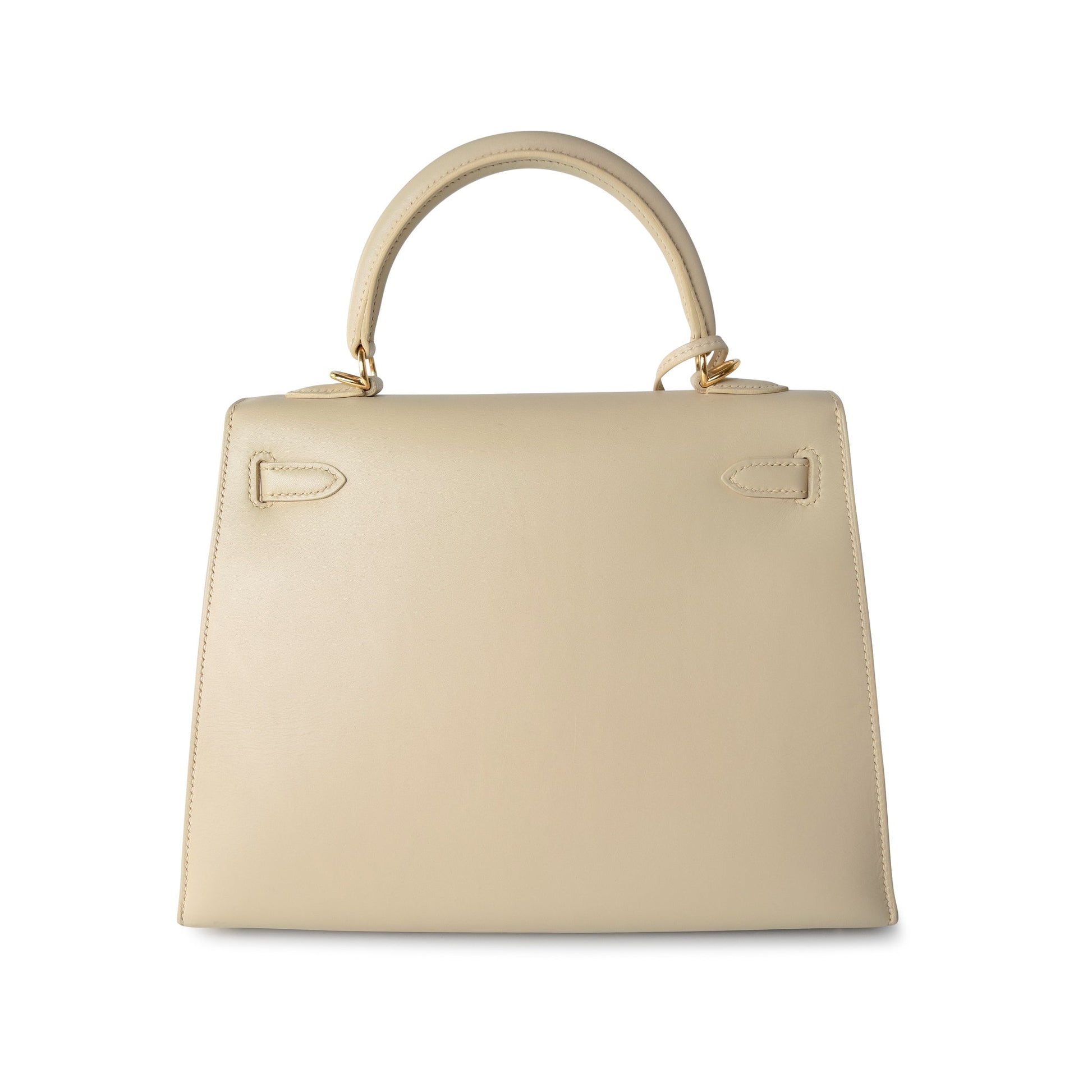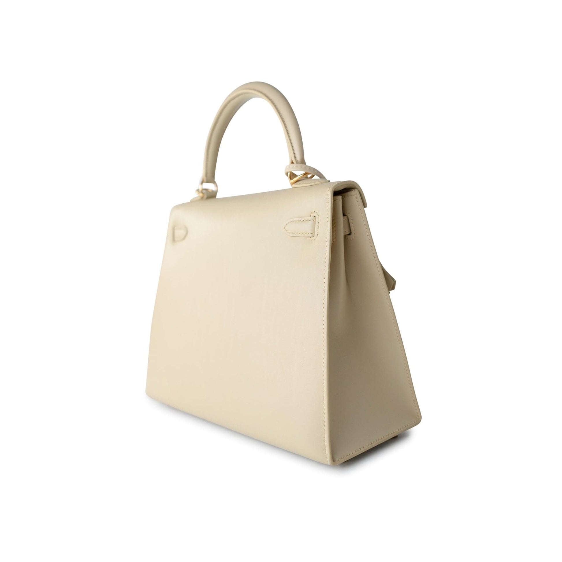 Vintage Kelly 25 Sellier Parchemin / Light Beige Box Calfksin E Square Stamp