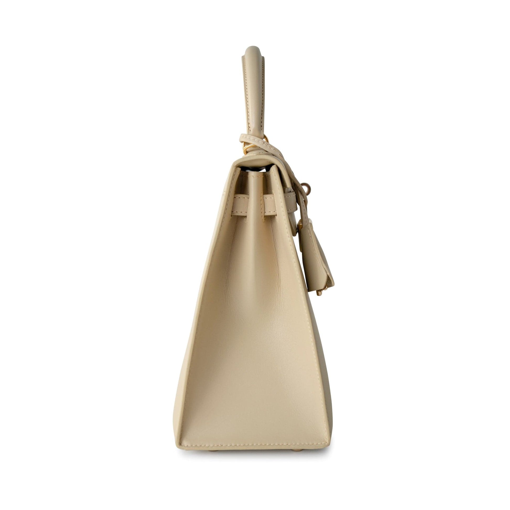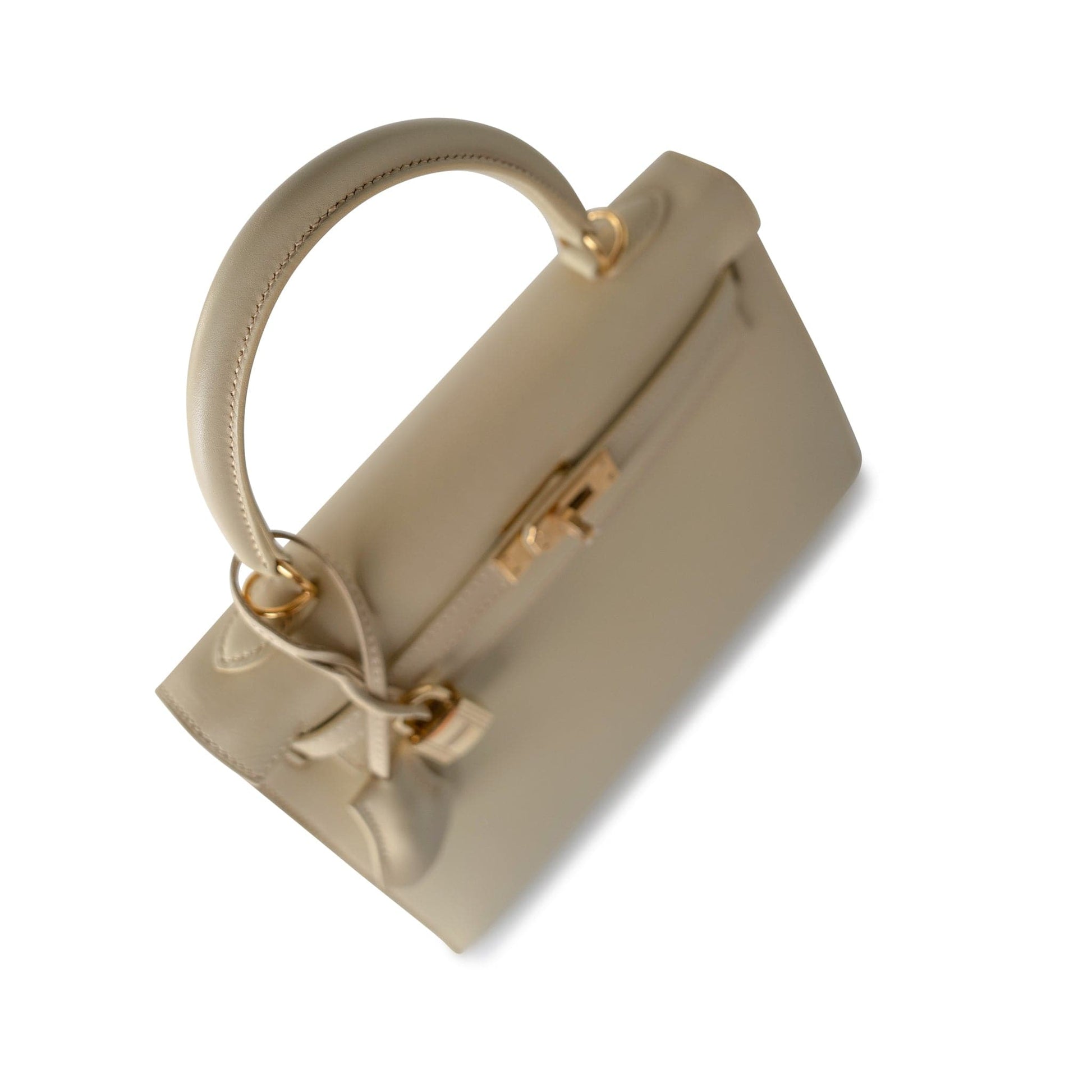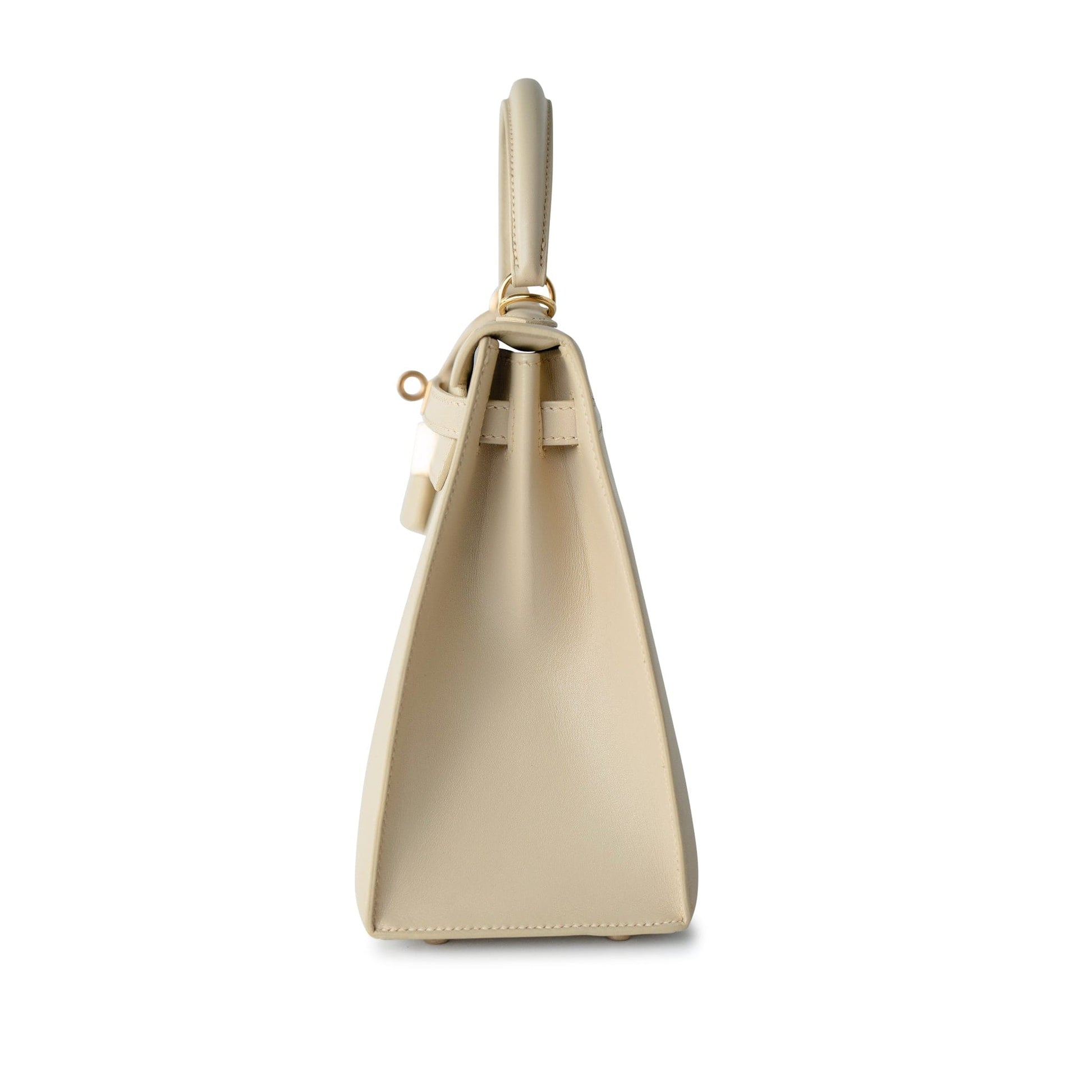 Vintage Kelly 25 Sellier Parchemin / Light Beige Box Calfksin E Square Stamp