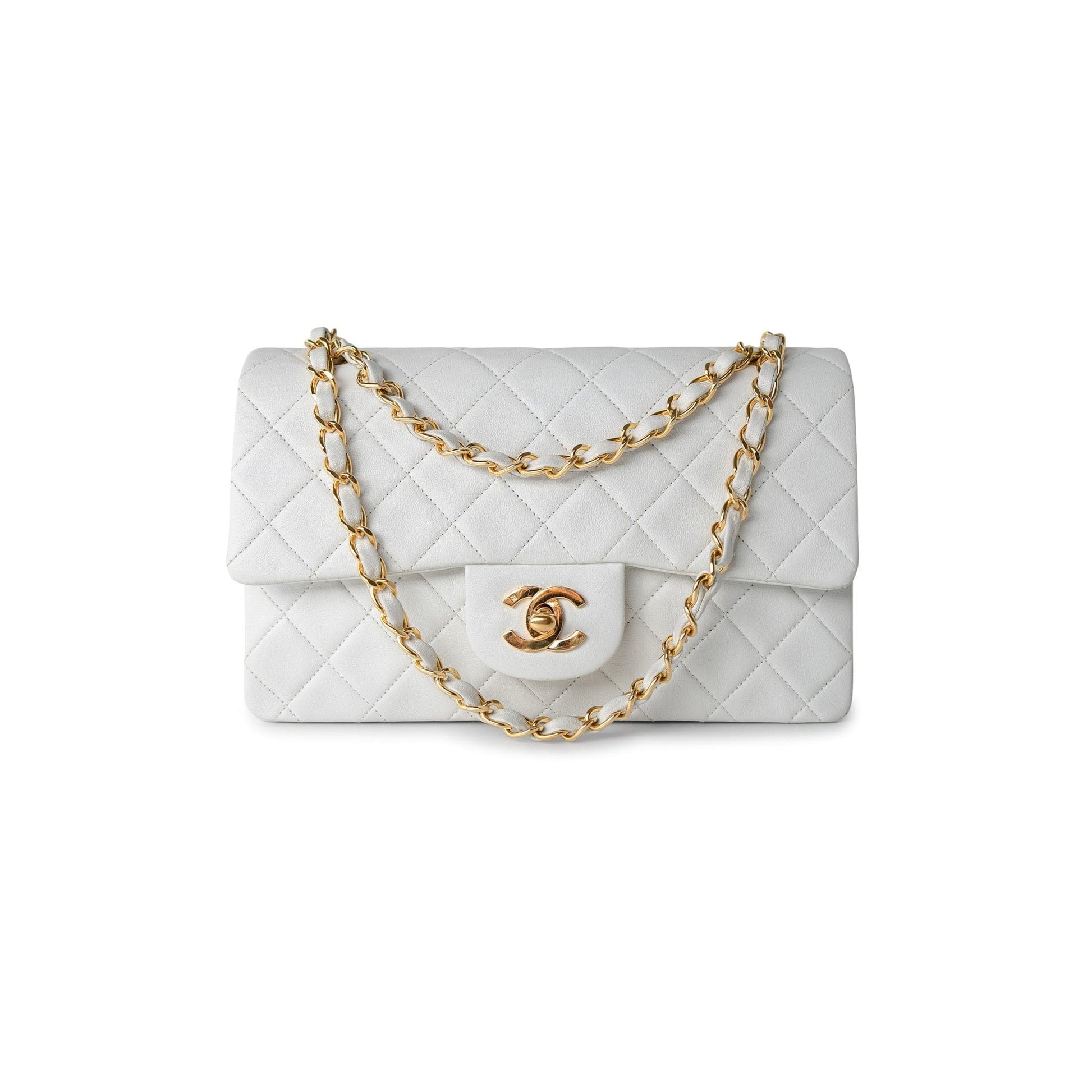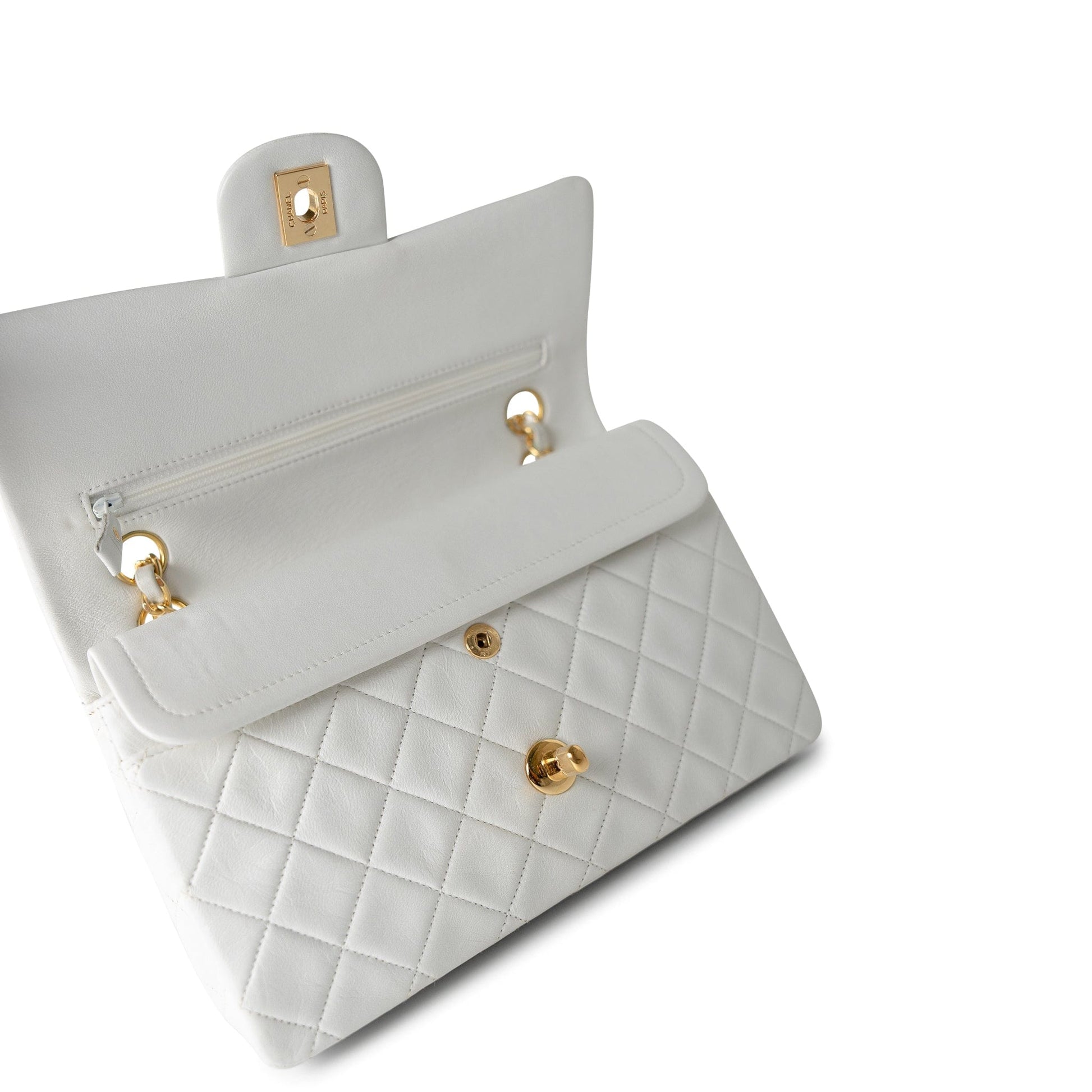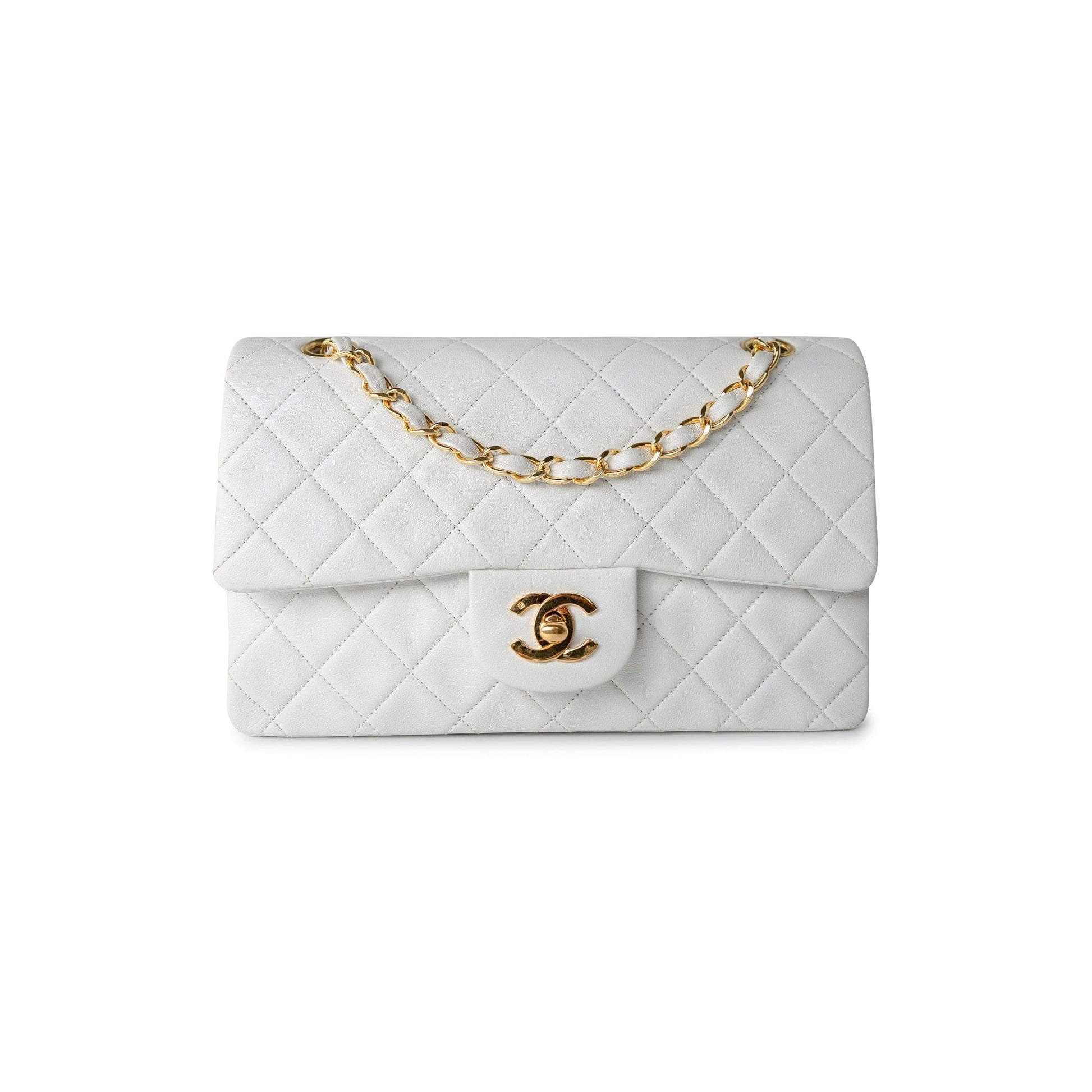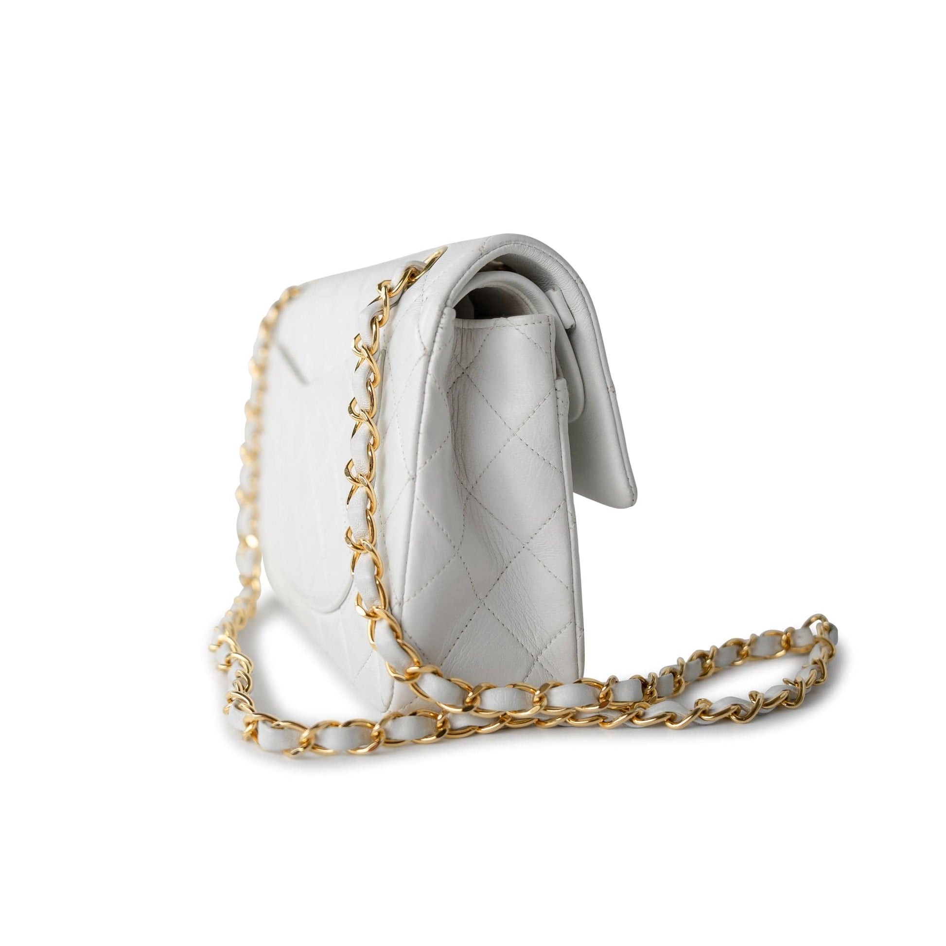 Vintage White Lambskin Quilted Classic Flap Small Gold Hardware