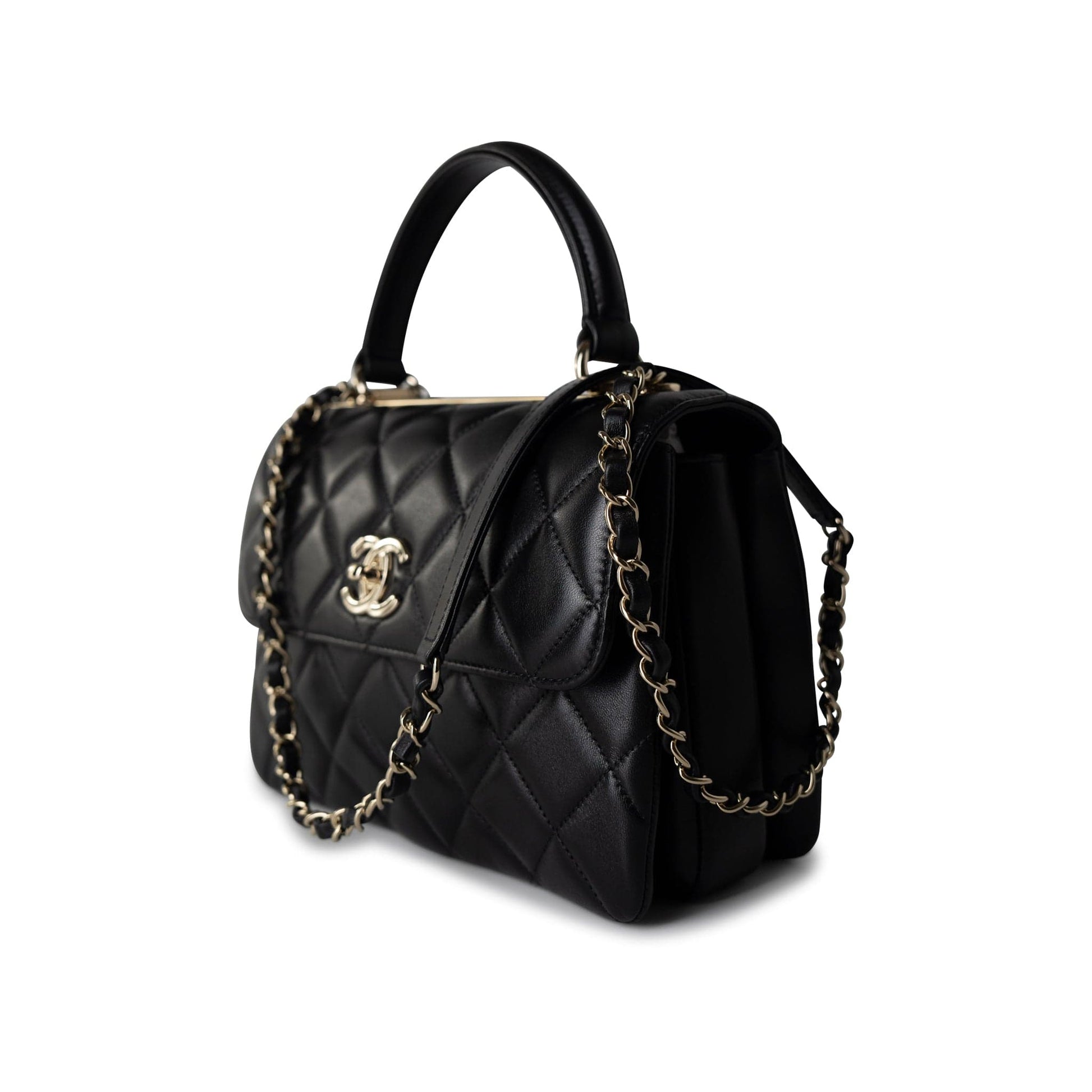 21S Black Lambskin Quilted Small Trendy CC Light Gold Hardware