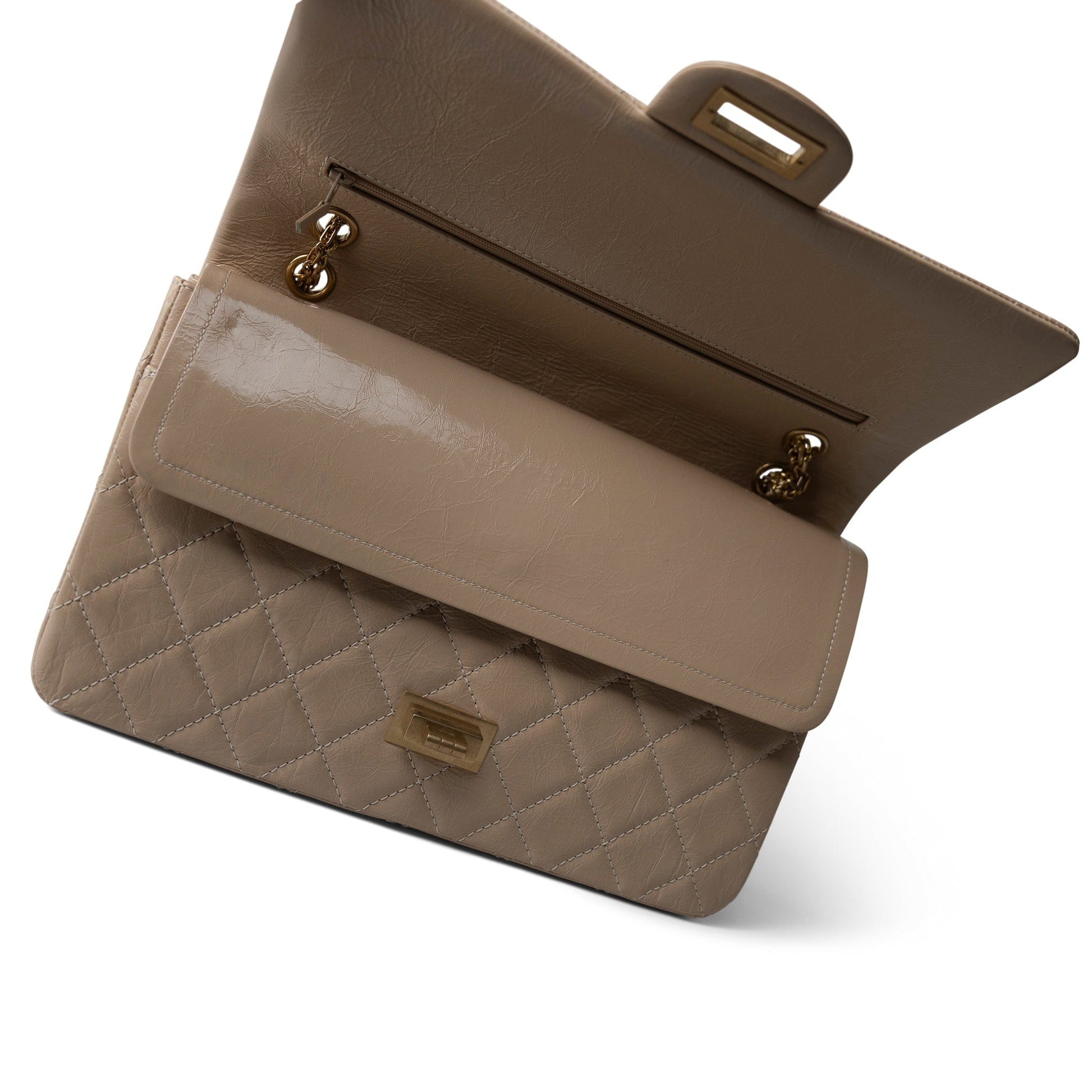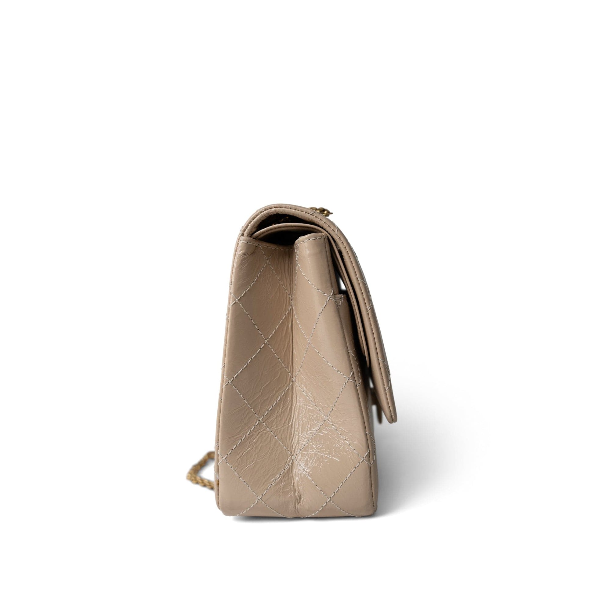 15P Beige Crumpled Calfskin Quilted Reissue 2.55 Flap 227 Aged Gold Hardware