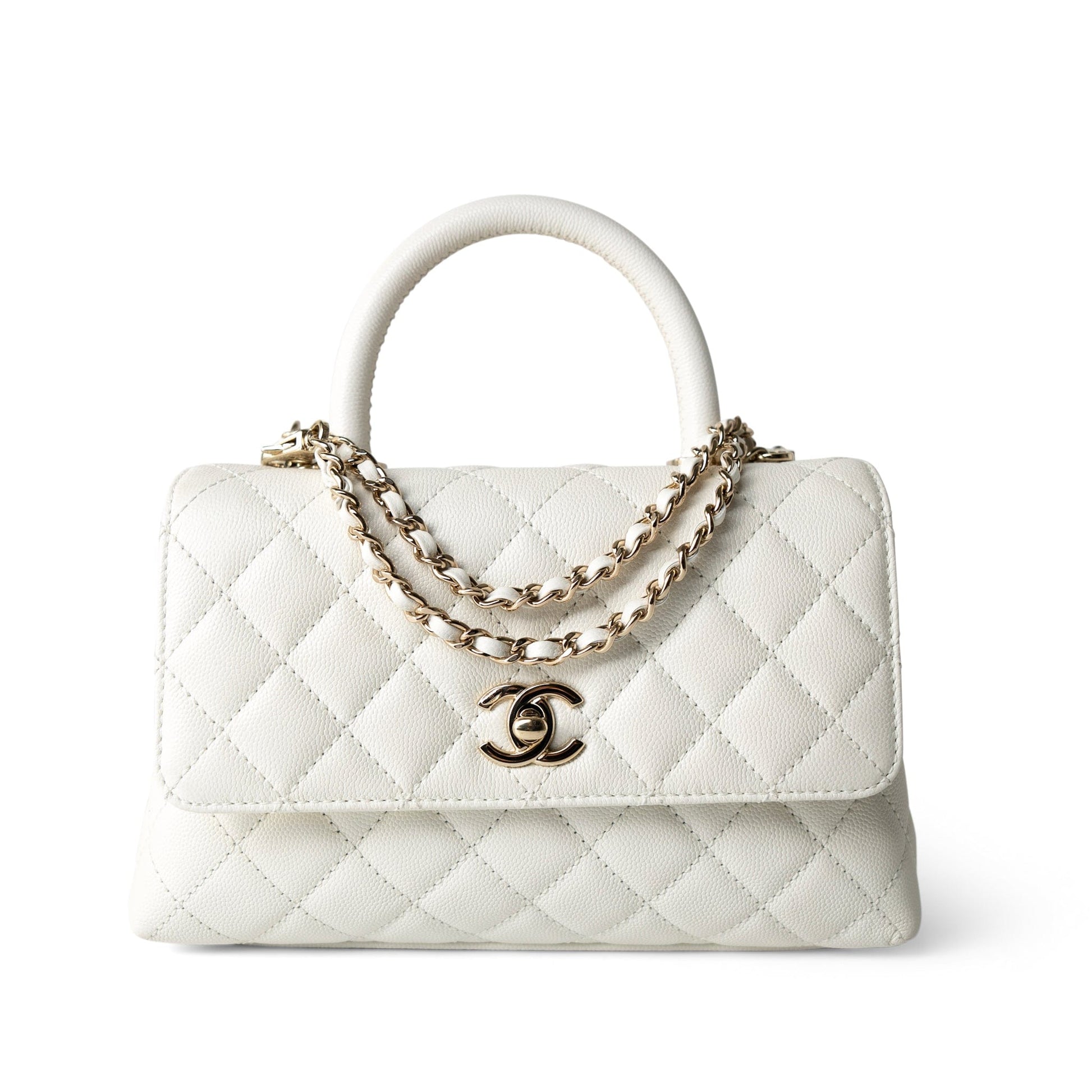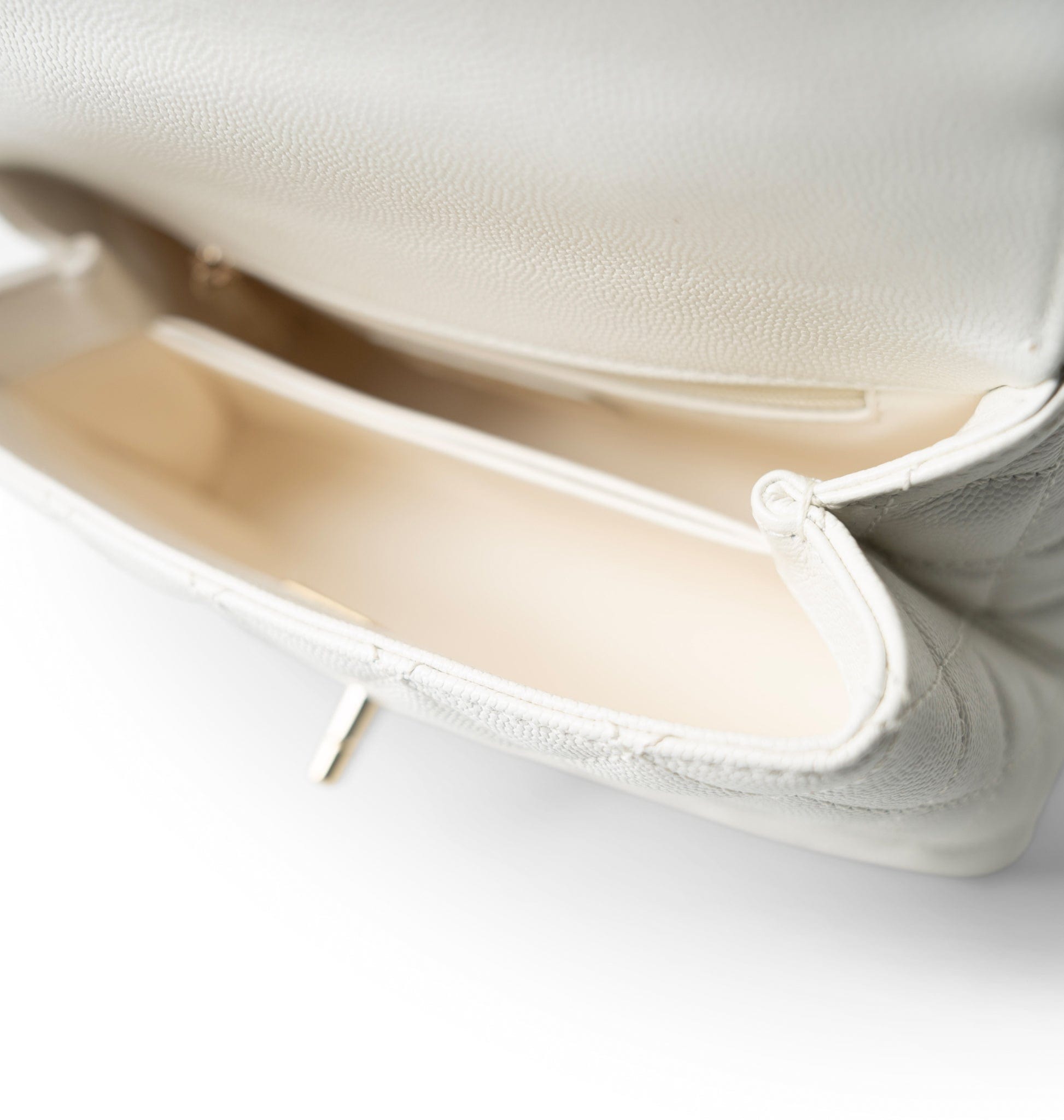 21A White Caviar Quilted Coco Handle Small Light Gold Hardware