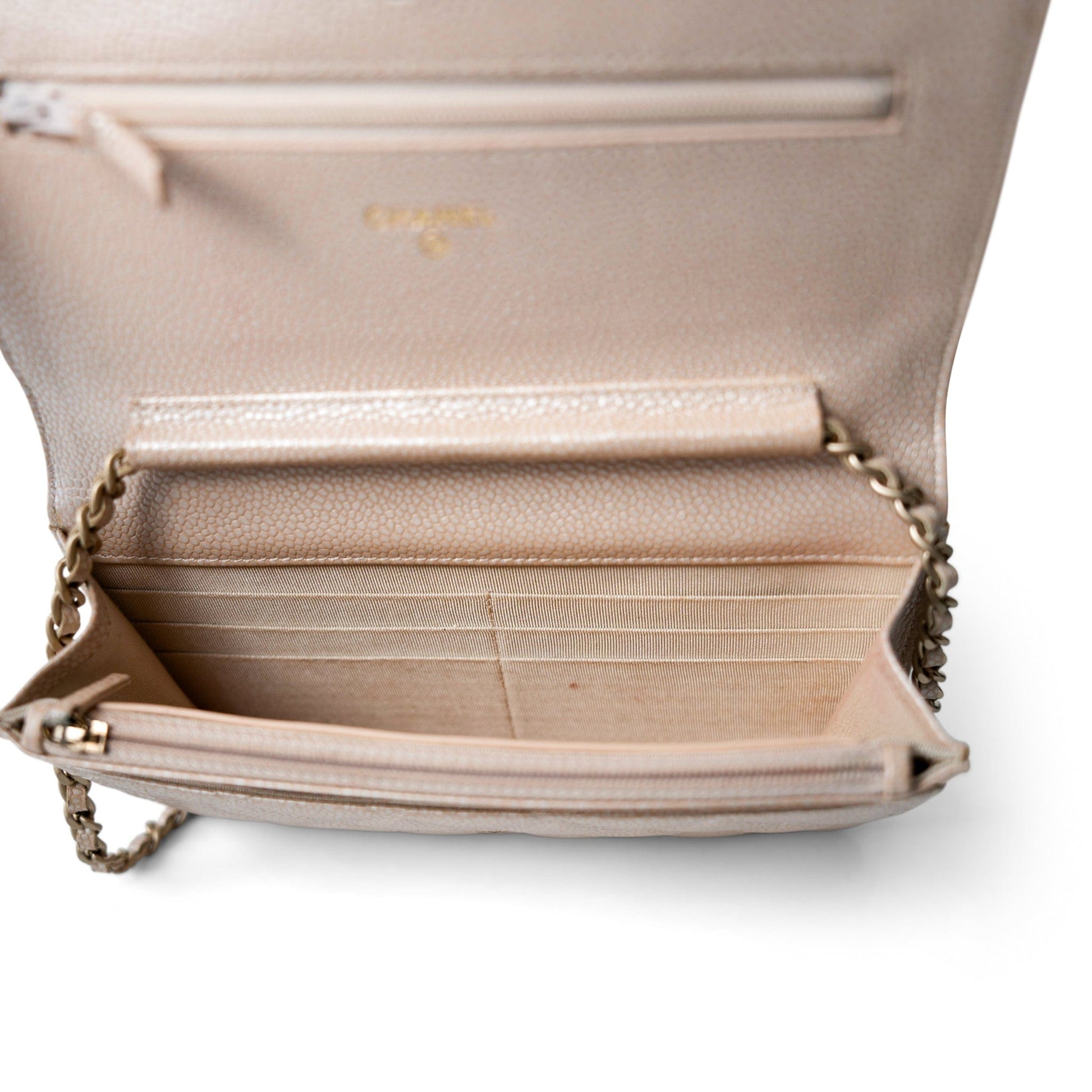 12P Pearly Beige Caviar Quilted Wallet on Chain WOC