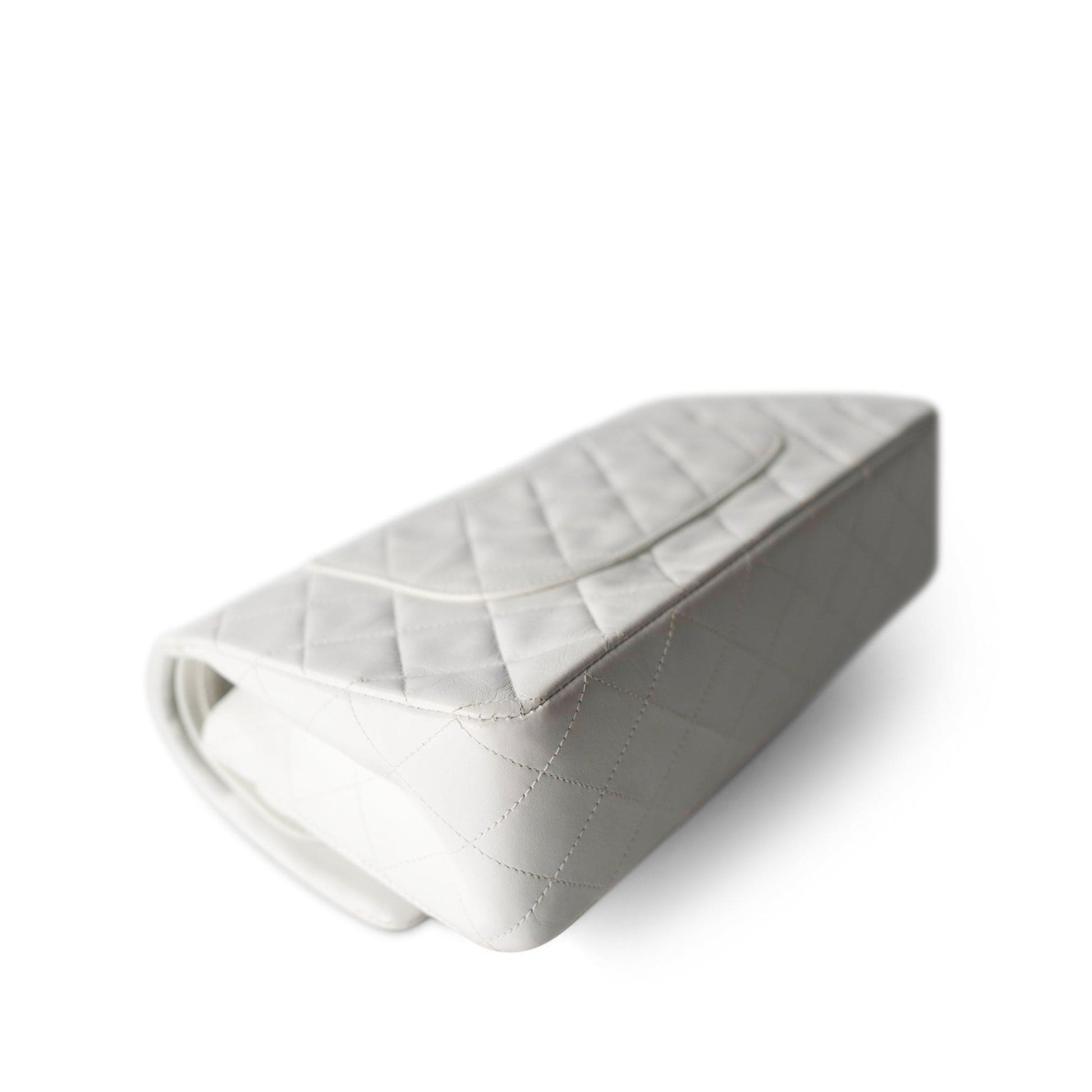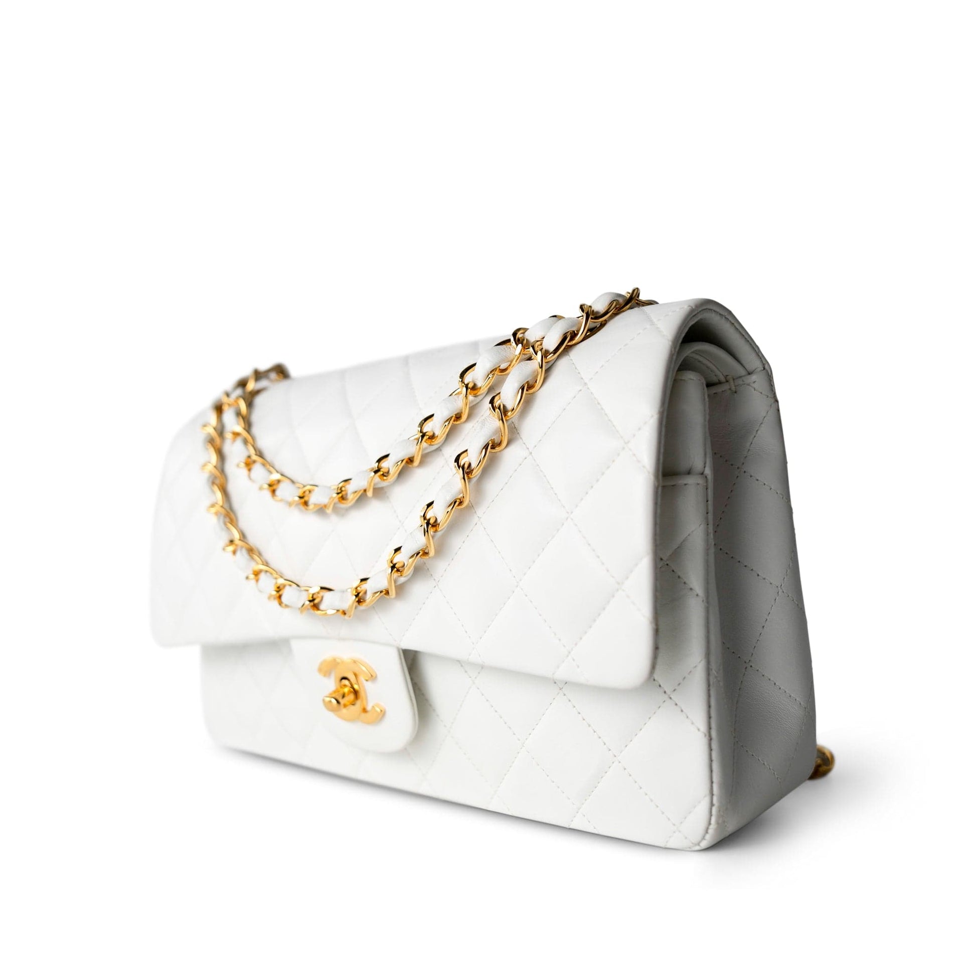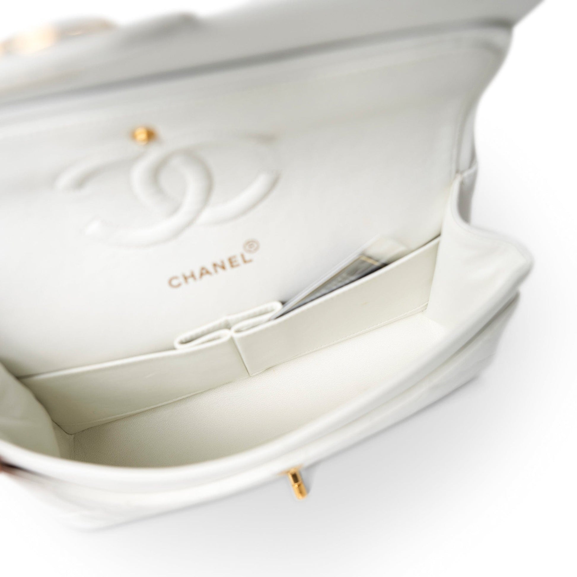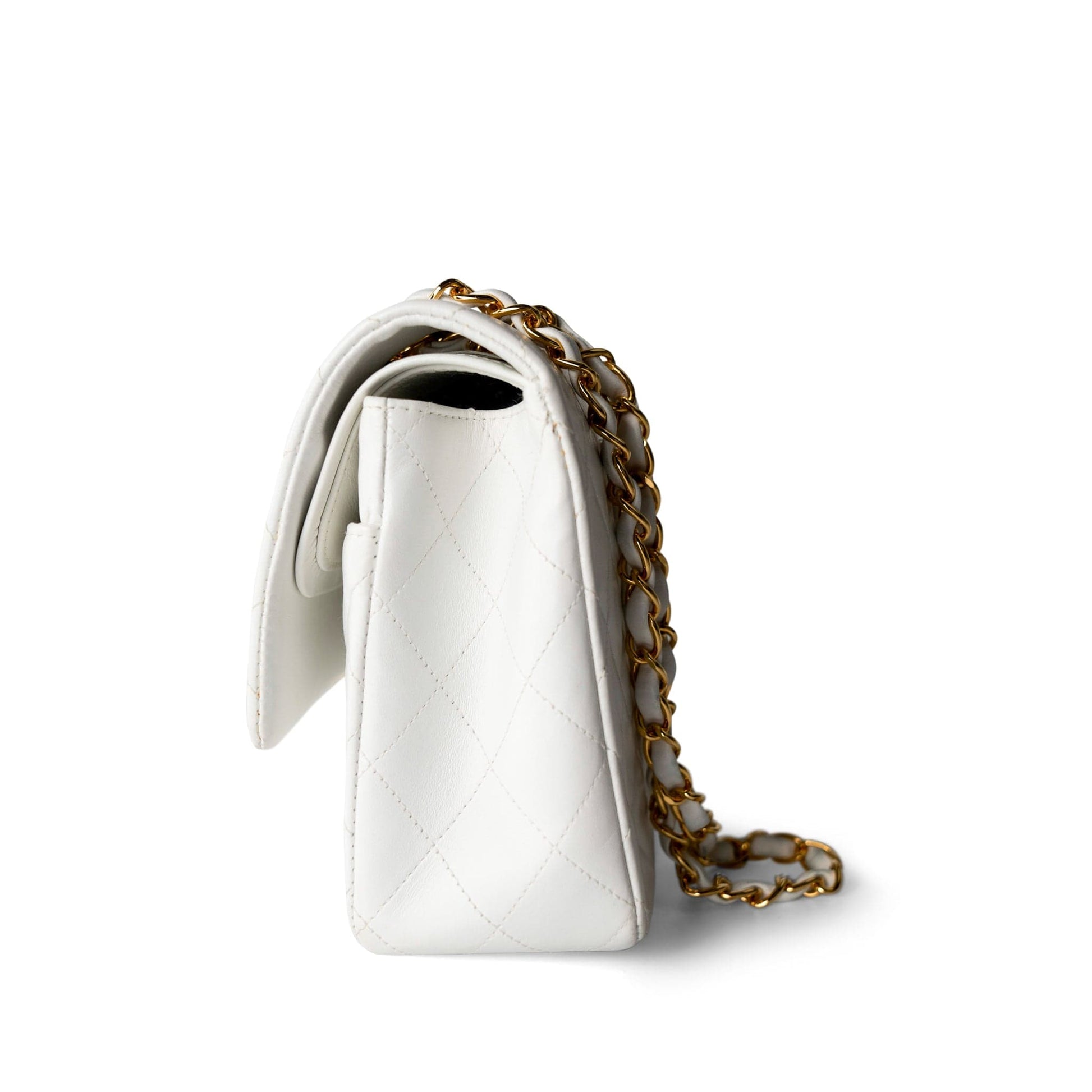 Vintage White Lambskin Quilted Classic Flap Medium Gold Hardware