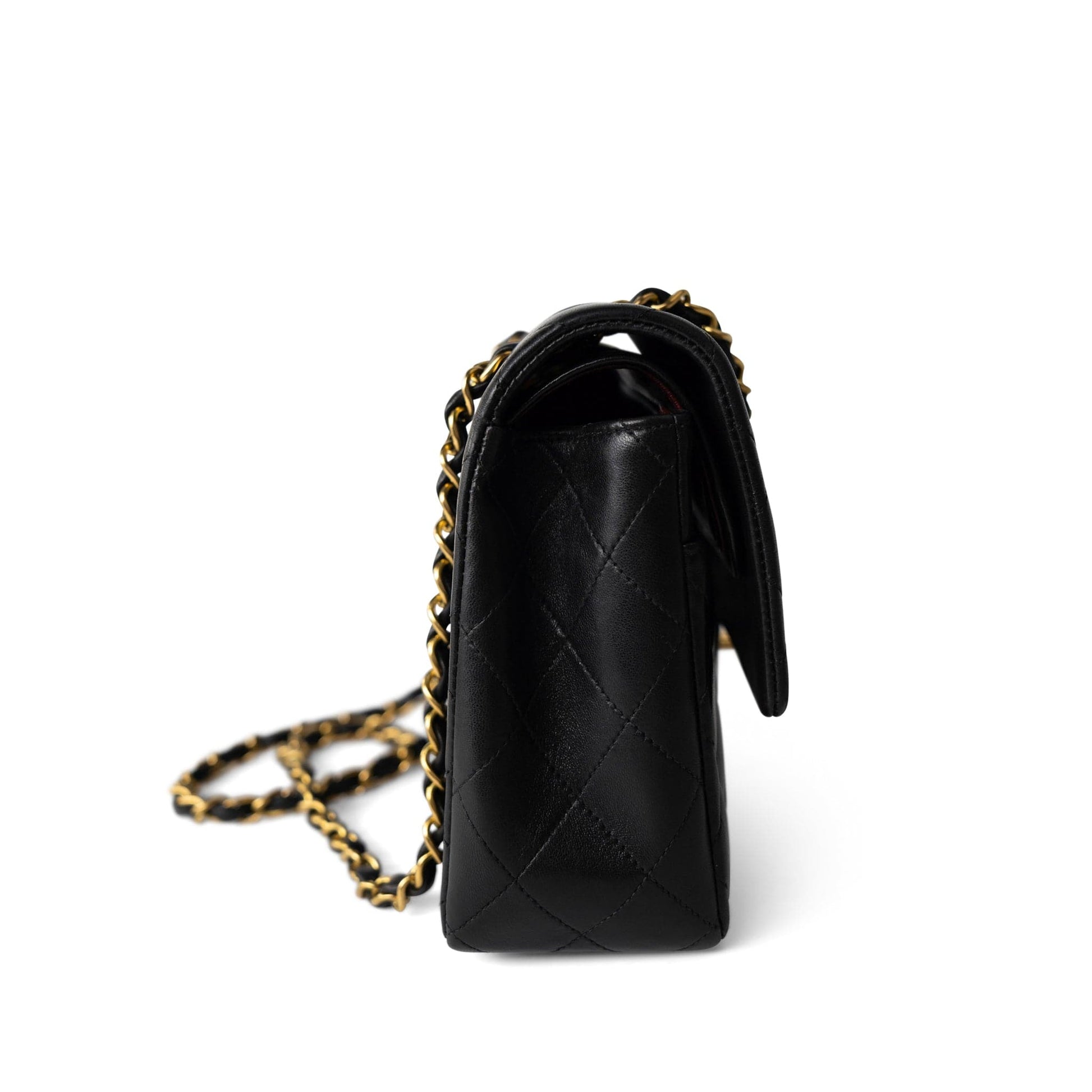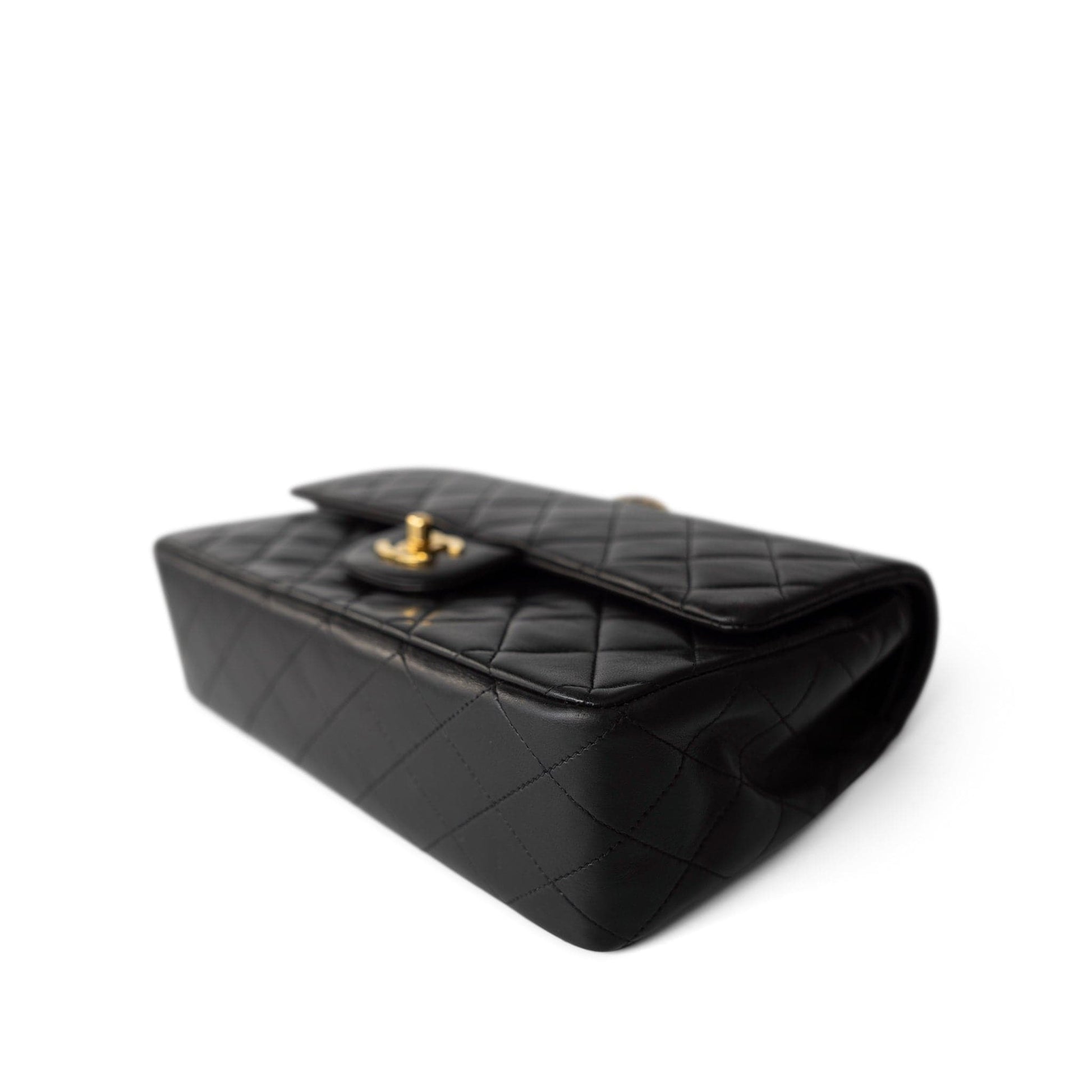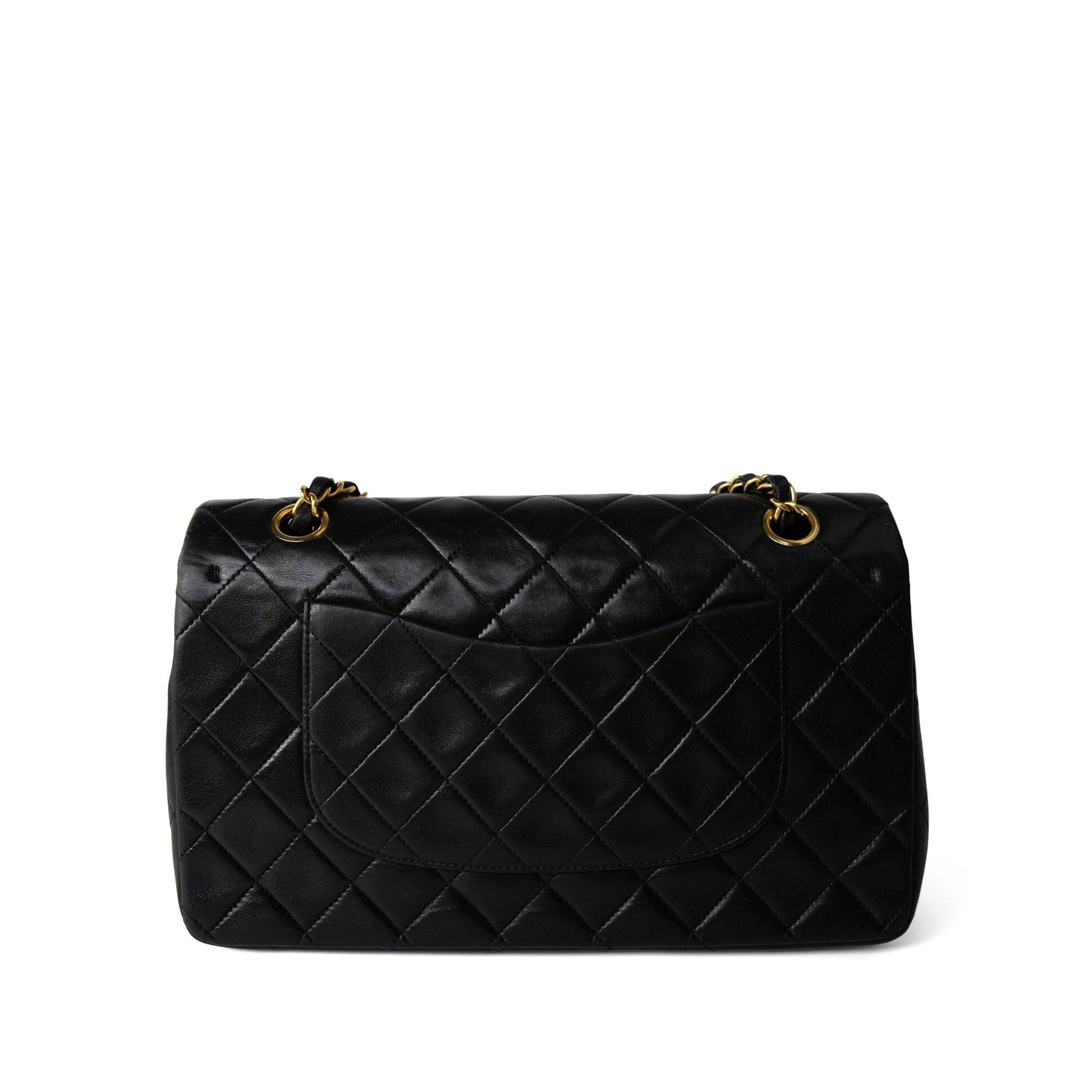 Vintage Black Lambskin Quilted Classic Flap Medium Gold Hardware