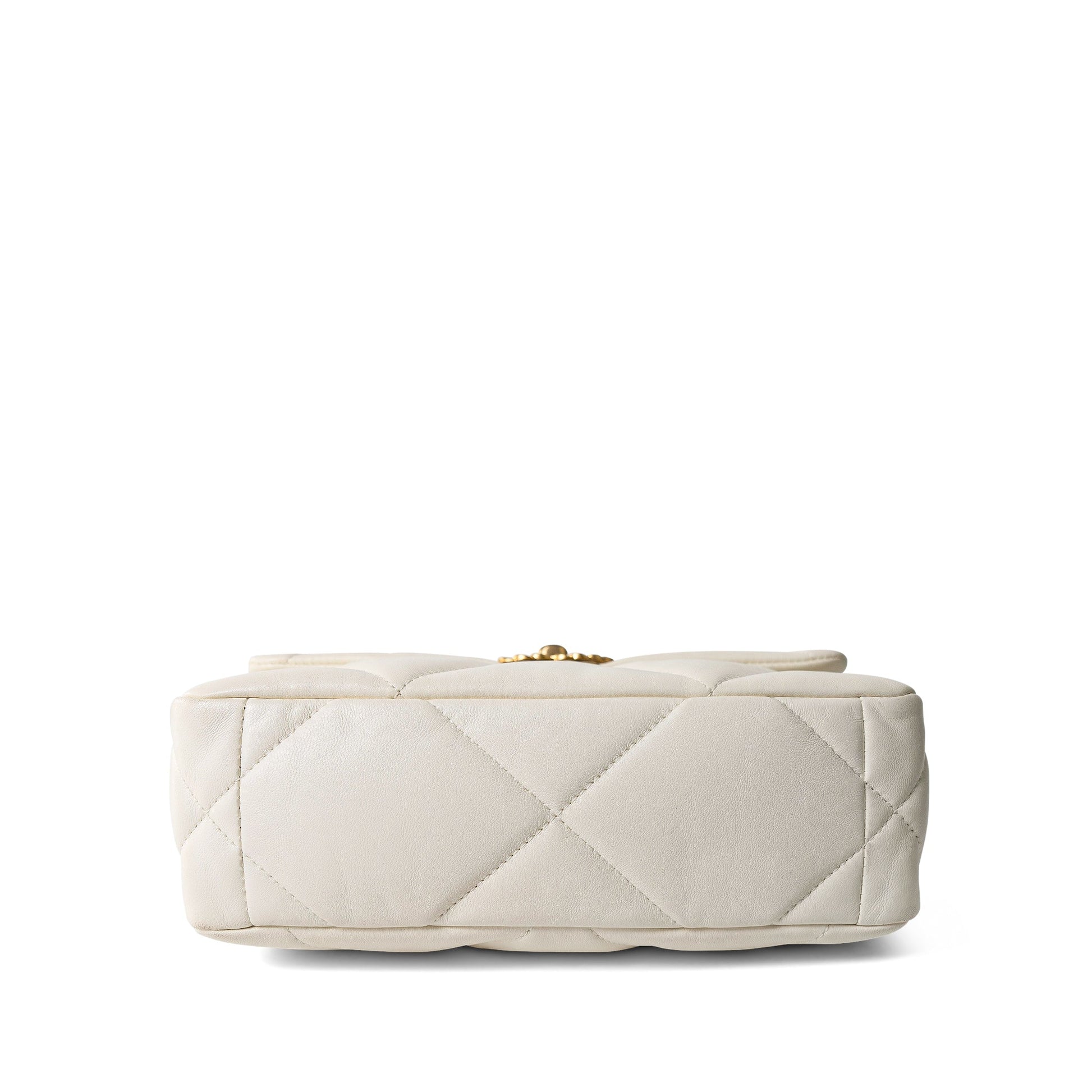 White Lambskin Quilted 19 Flap Small Mixed Hardware