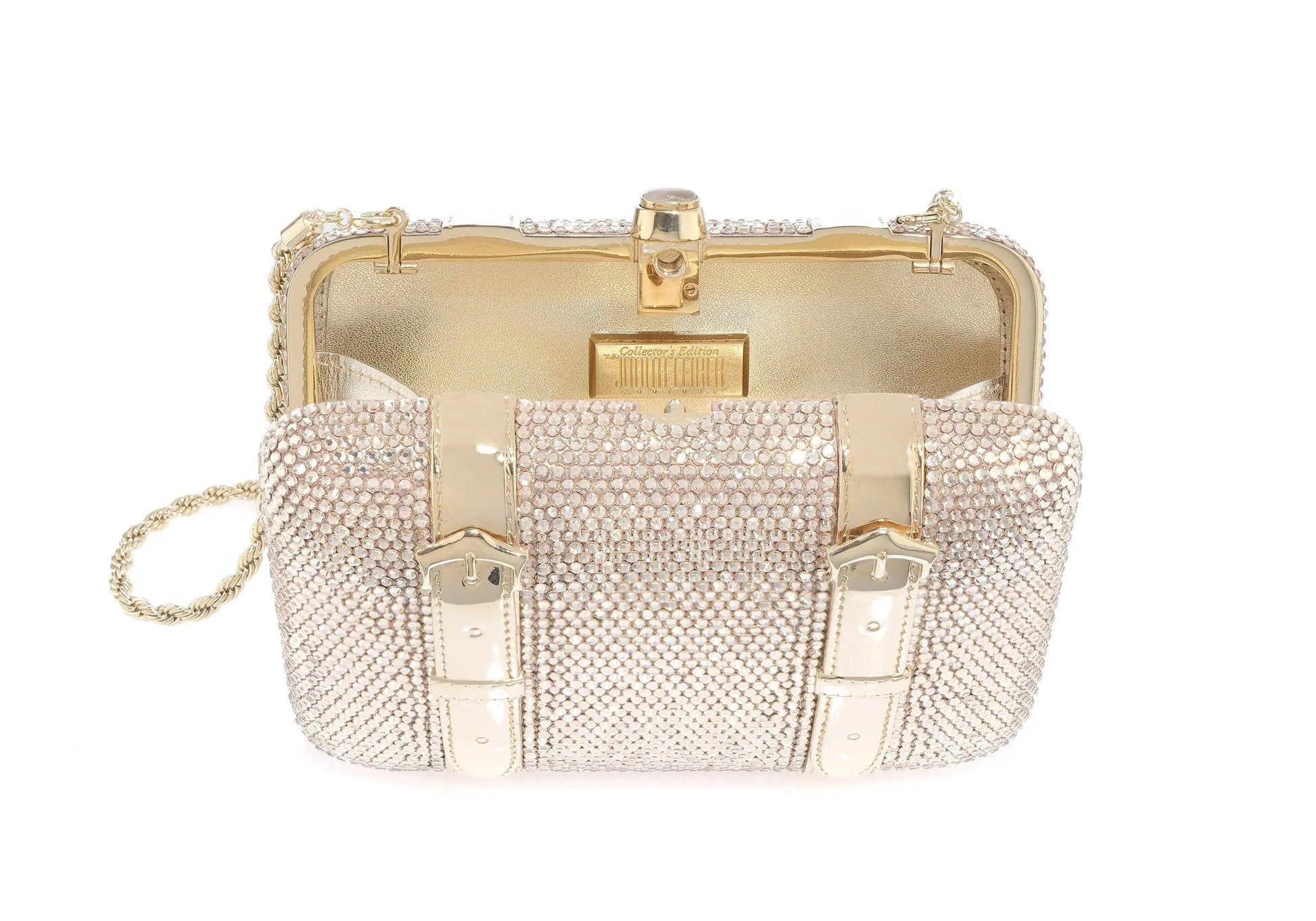 Raise a toast to couture wanderlust with the Valise Fullbead Prosecco bag. Crafted in the shape of a vintage travel valise and adorned with thousands of handset crystals in champagne hues that echo its Prosecco namesake, this clutch feels both nostalgic and celebratory. A mini suitcase that carries not clothes but pure sparkle—this bag is designed for the woman who travels in style and believes every journey, whether across oceans or across a ballroom, deserves to be noticed. Perfect for evening celebrations, destination weddings, or milestone soirées, the Valise Fullbead Prosecco bag ensures that every glance at your hand feels like a passport to glamor.
