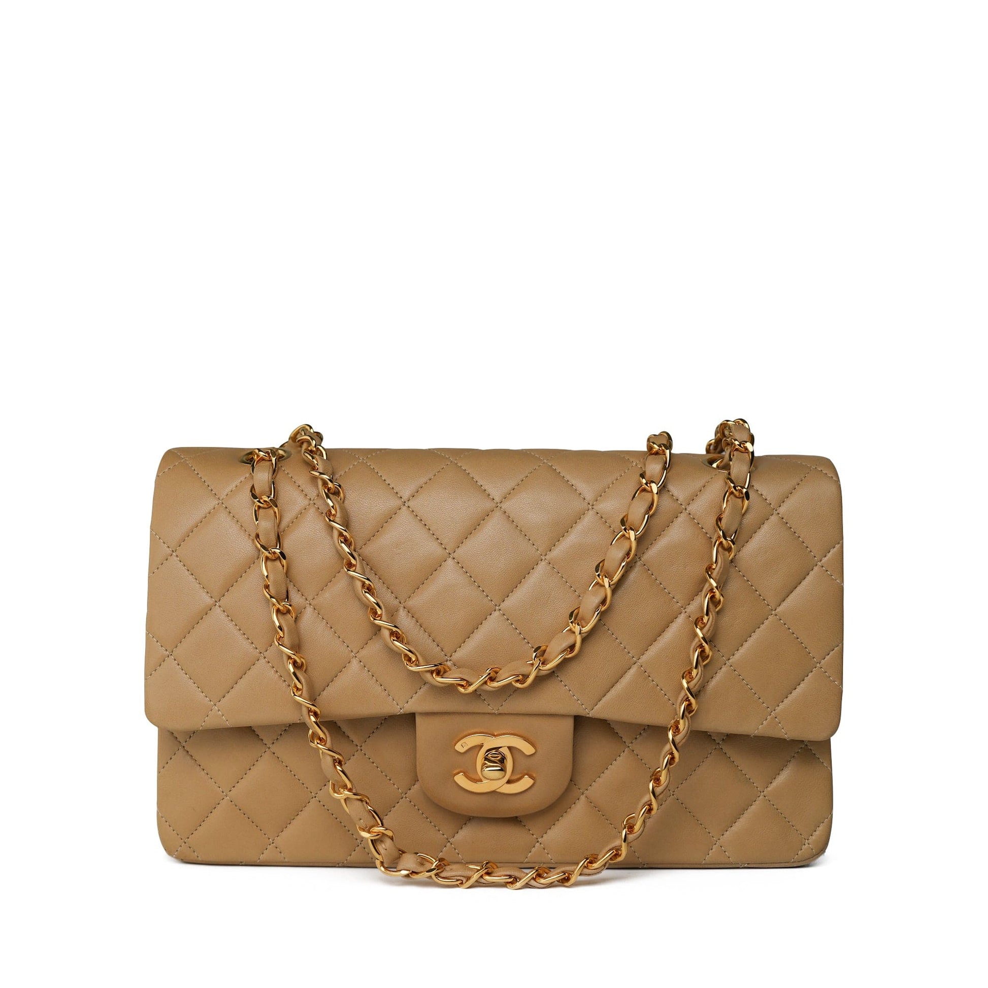 Vintage Beige Lambskin Quilted Classic Flap Medium GHW