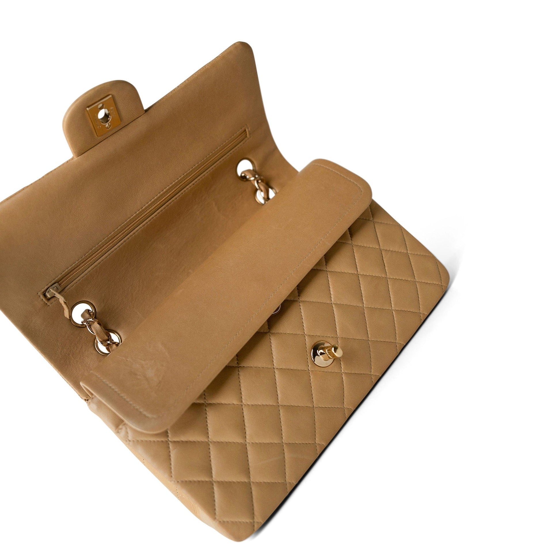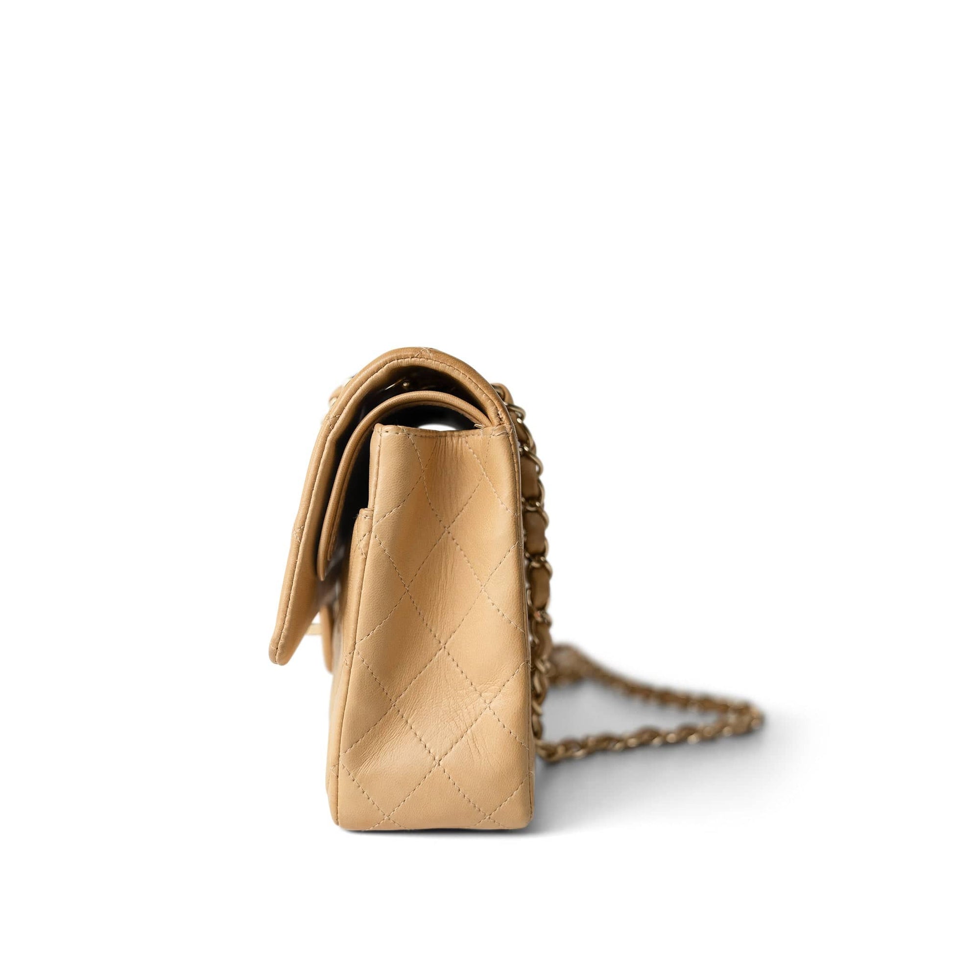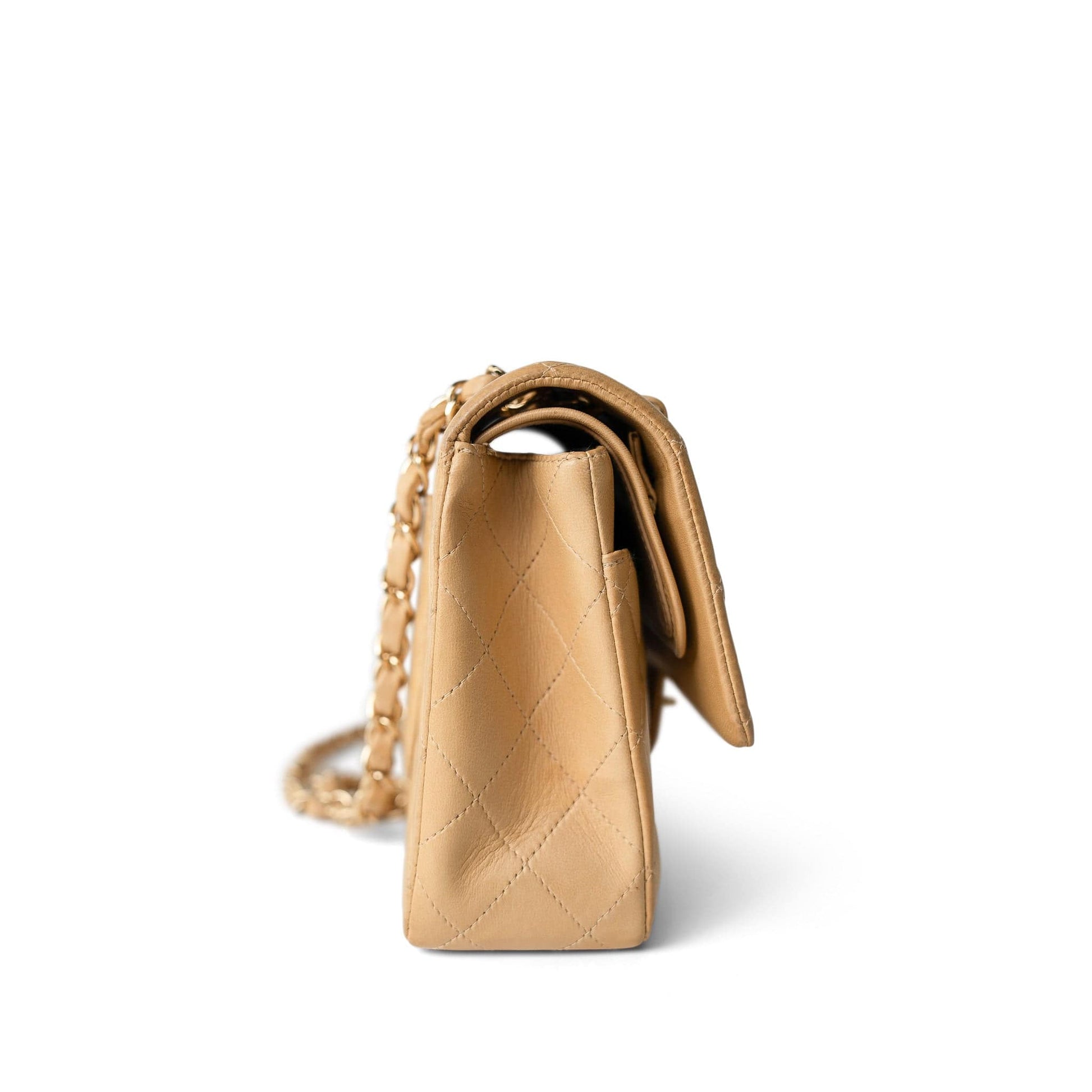 Vintage Beige Lambskin Quilted Classic flap Medium Gold Hardware