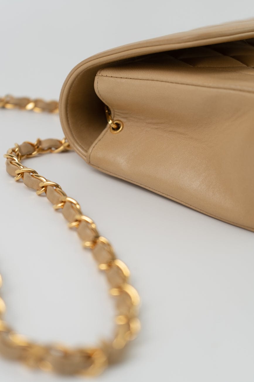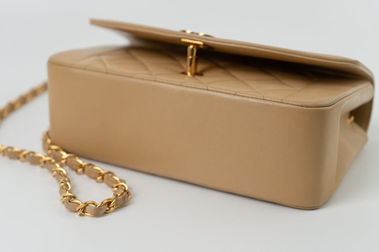 Vintage Beige Lambskin Quilted Diana Single Flap Small with Gold Hardware