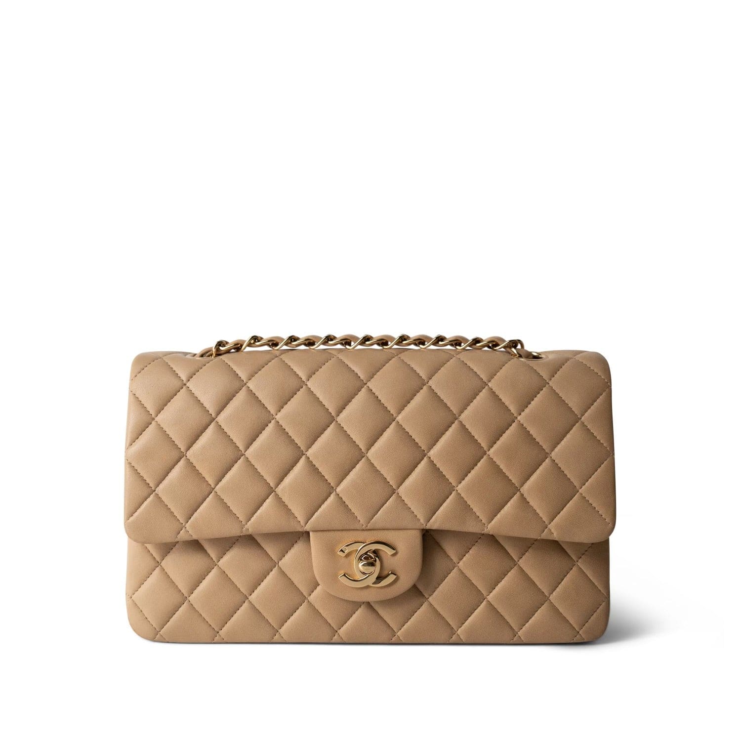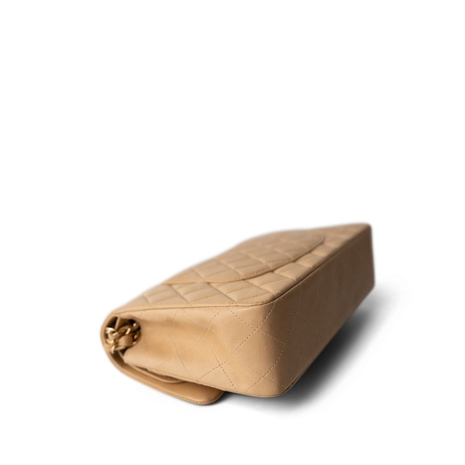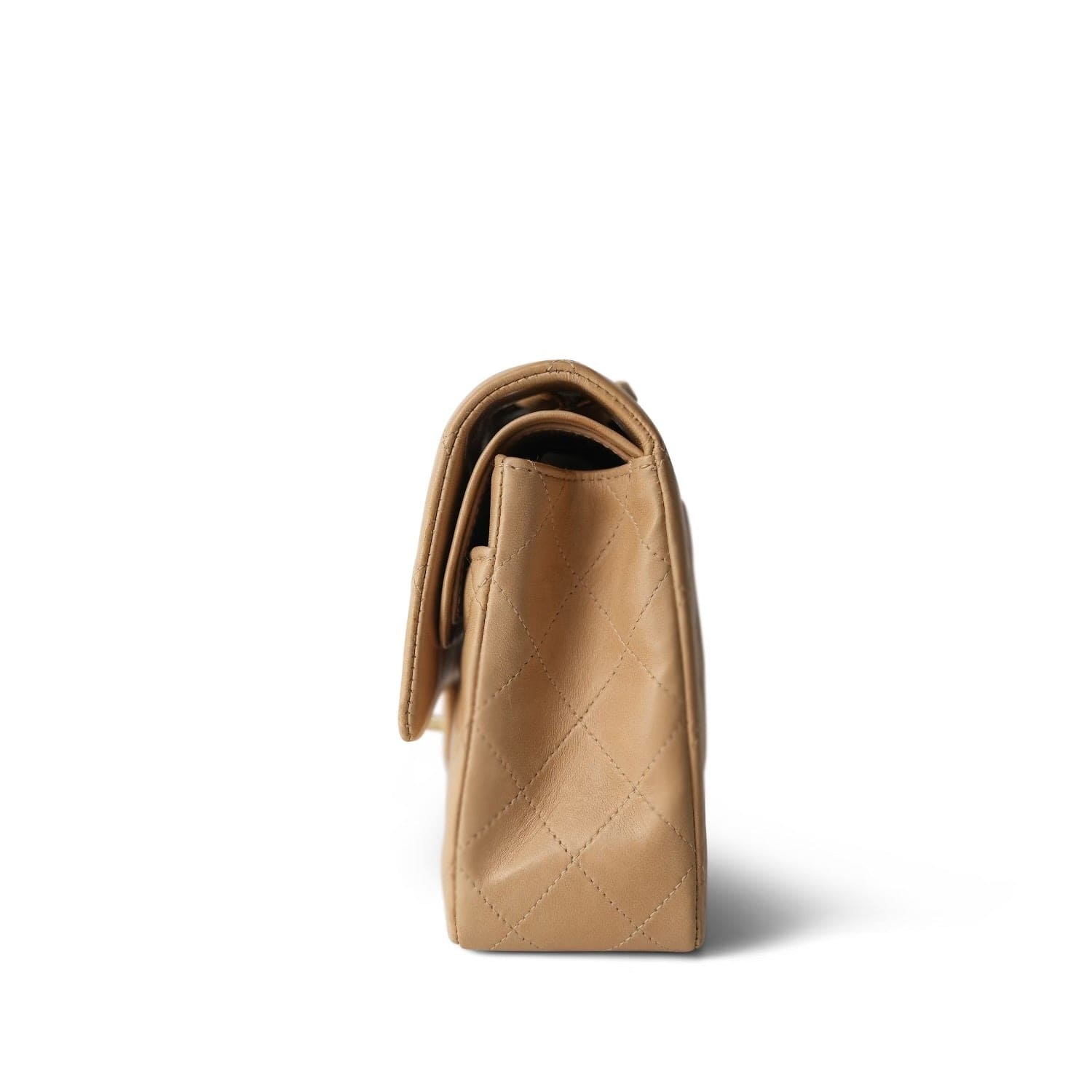 Vintage Beige Lambskin Quilted Medium Classic Flap Gold Hardware