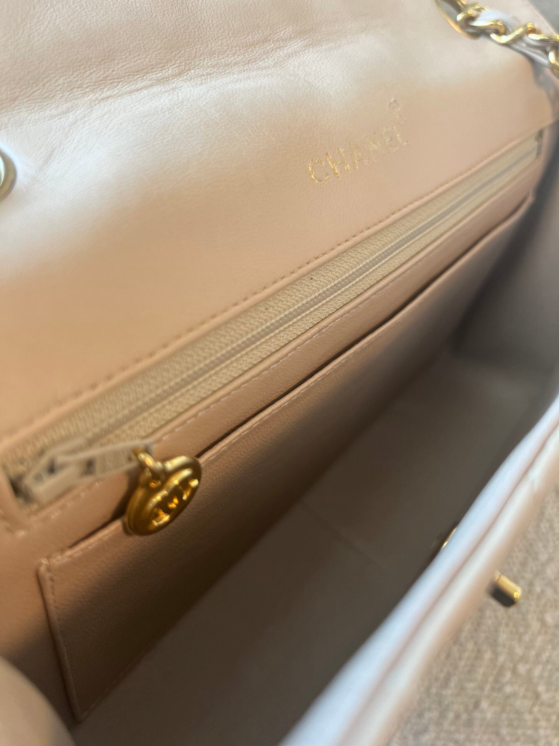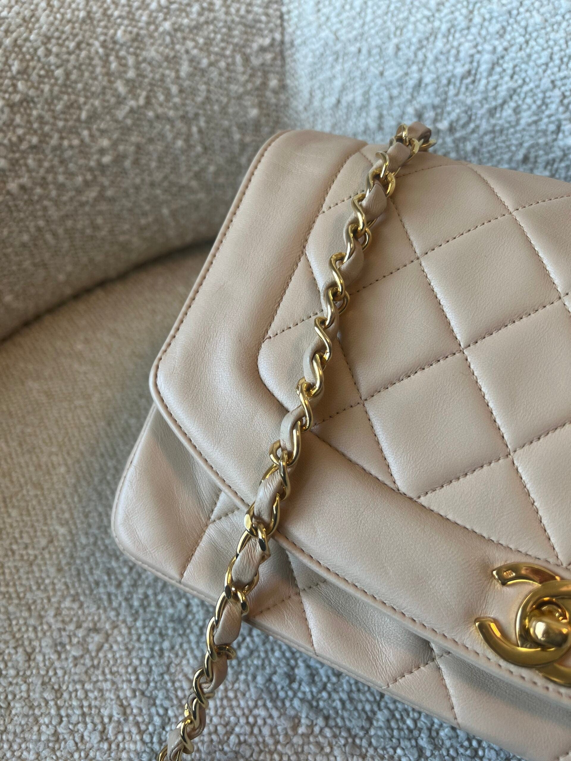 Vintage Beige Lambskin Quilted Medium Diana Flap Gold Hardware